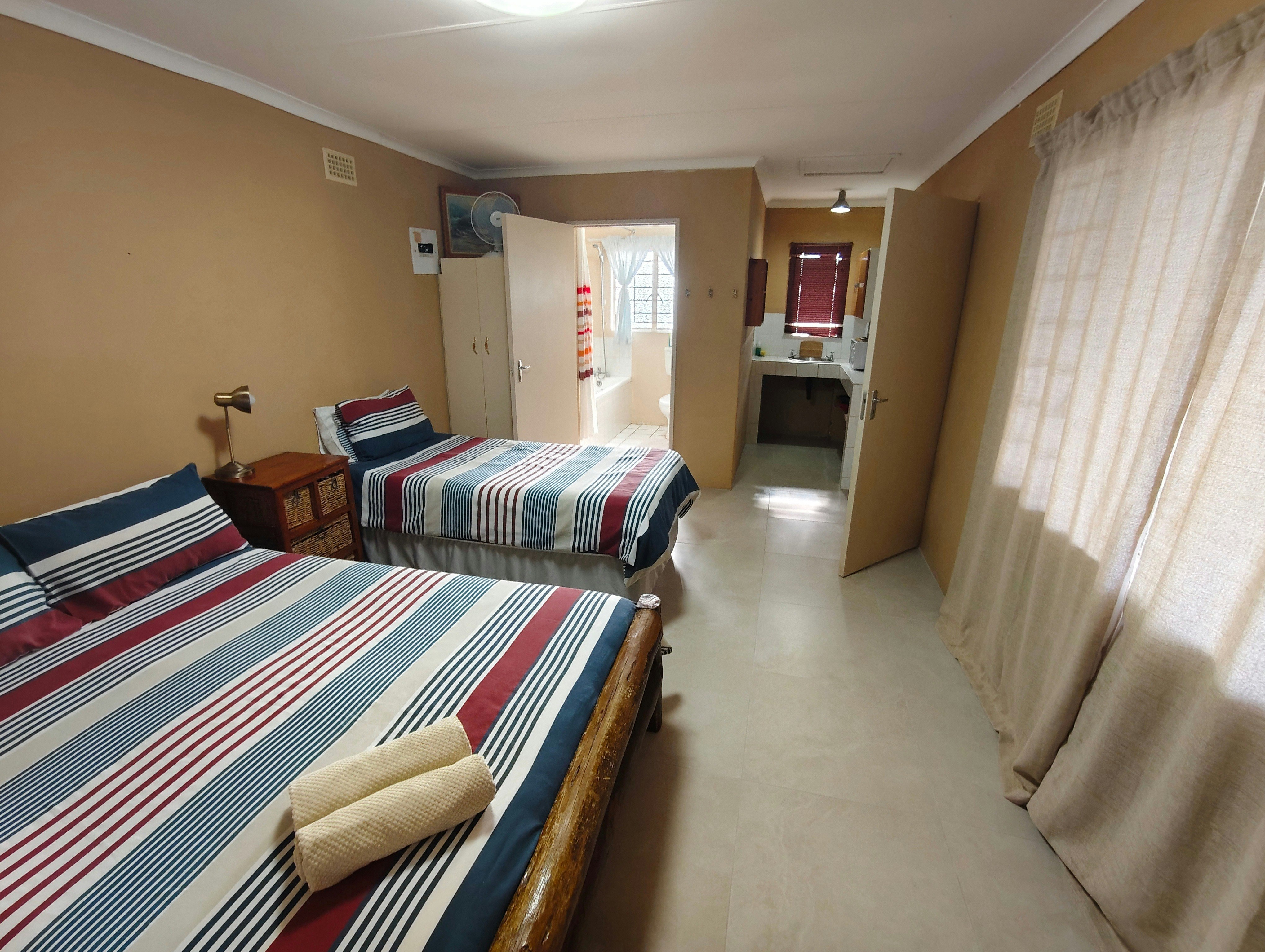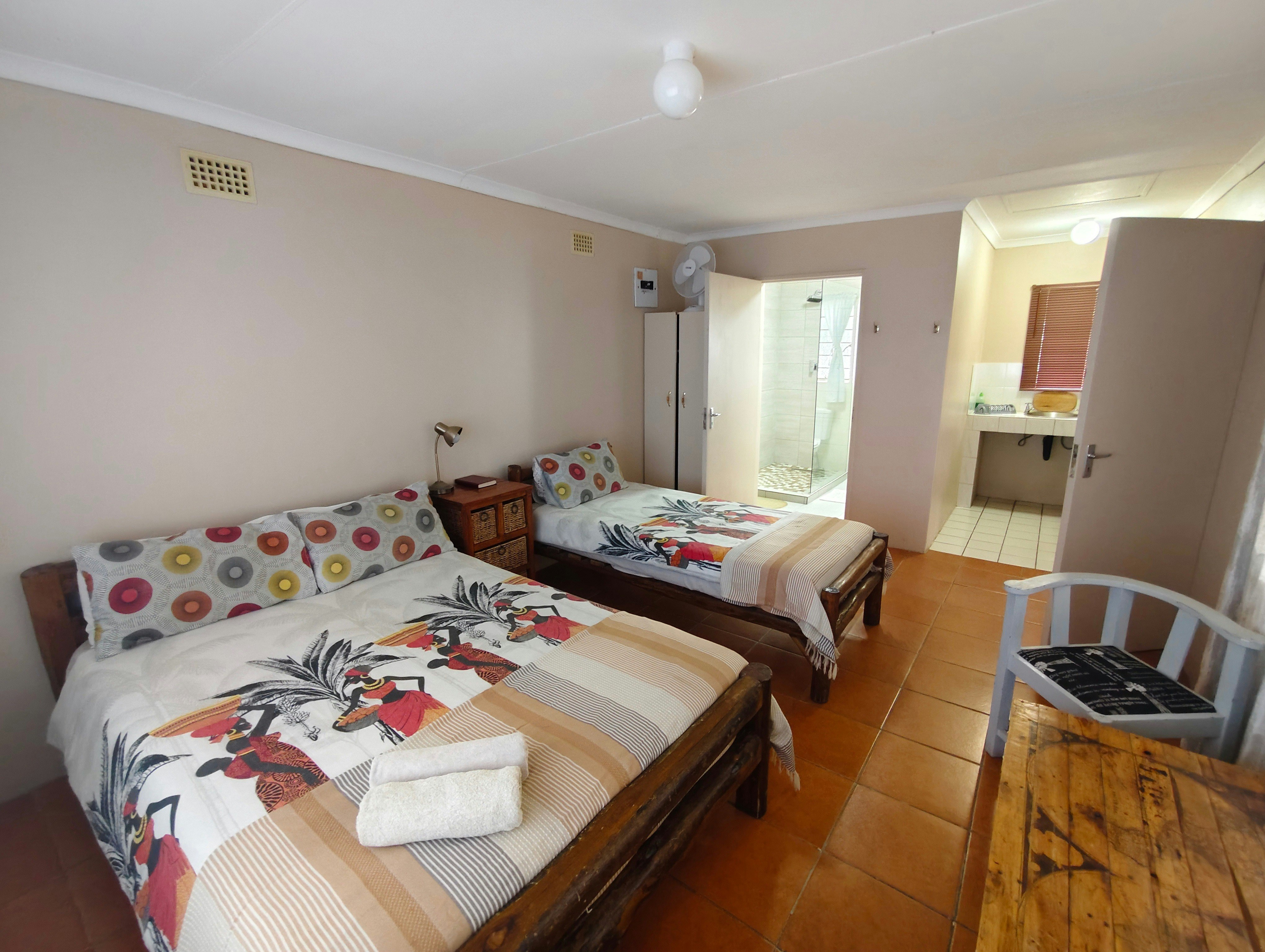 There are 2 self-catering chalets available, each sleeping 5 guests. The chalets are spacious and well equipped for all self-catering needs and offer a private braai area and a porch to enjoy some family time.