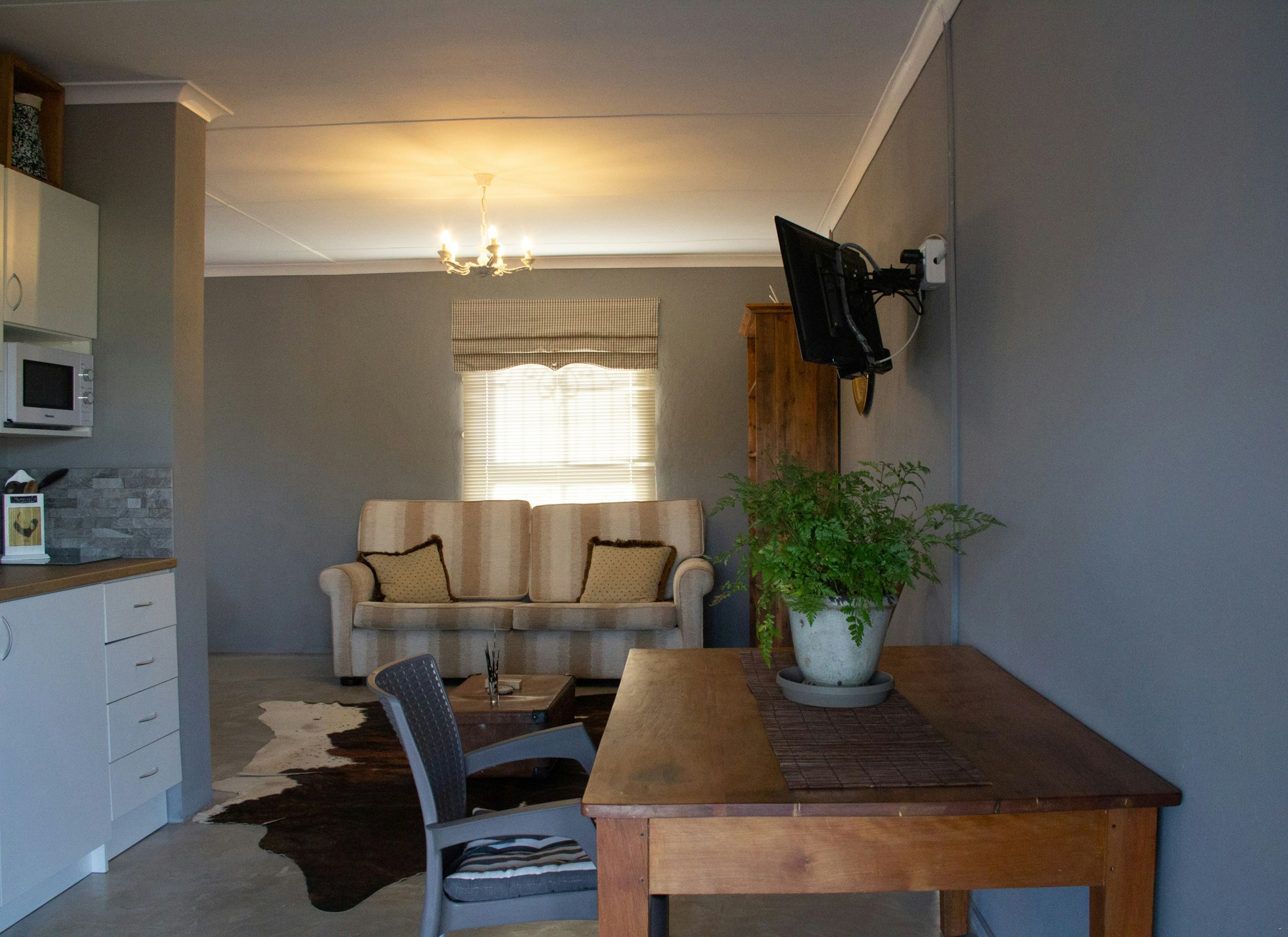 Both units also offer kitchenettes with tea- and coffee-making facilities, a microwave, and a fridge. The Garden Cottage also has an induction plate and the Lucerne Cottage has a built-in braai on the patio as well as a fireplace, perfect for wintertime. Guests are to supply own wood and fire lighters.