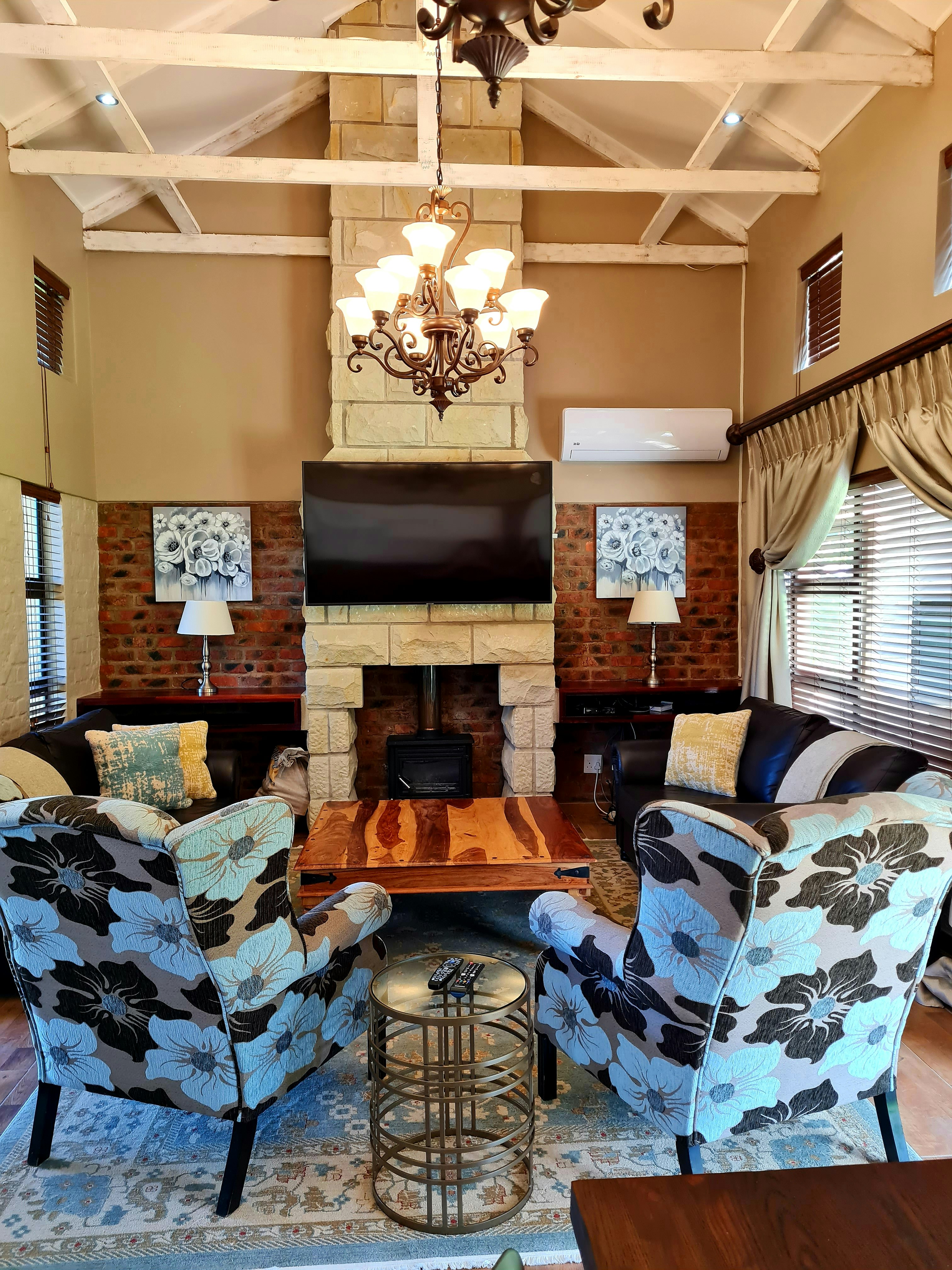 The lounge has comfortable seating, a cosy fireplace as well as a TV with DStv. There is a dining area where guests can enjoy their meals together. Guests also have access to complimentary Wi-Fi during their stay.