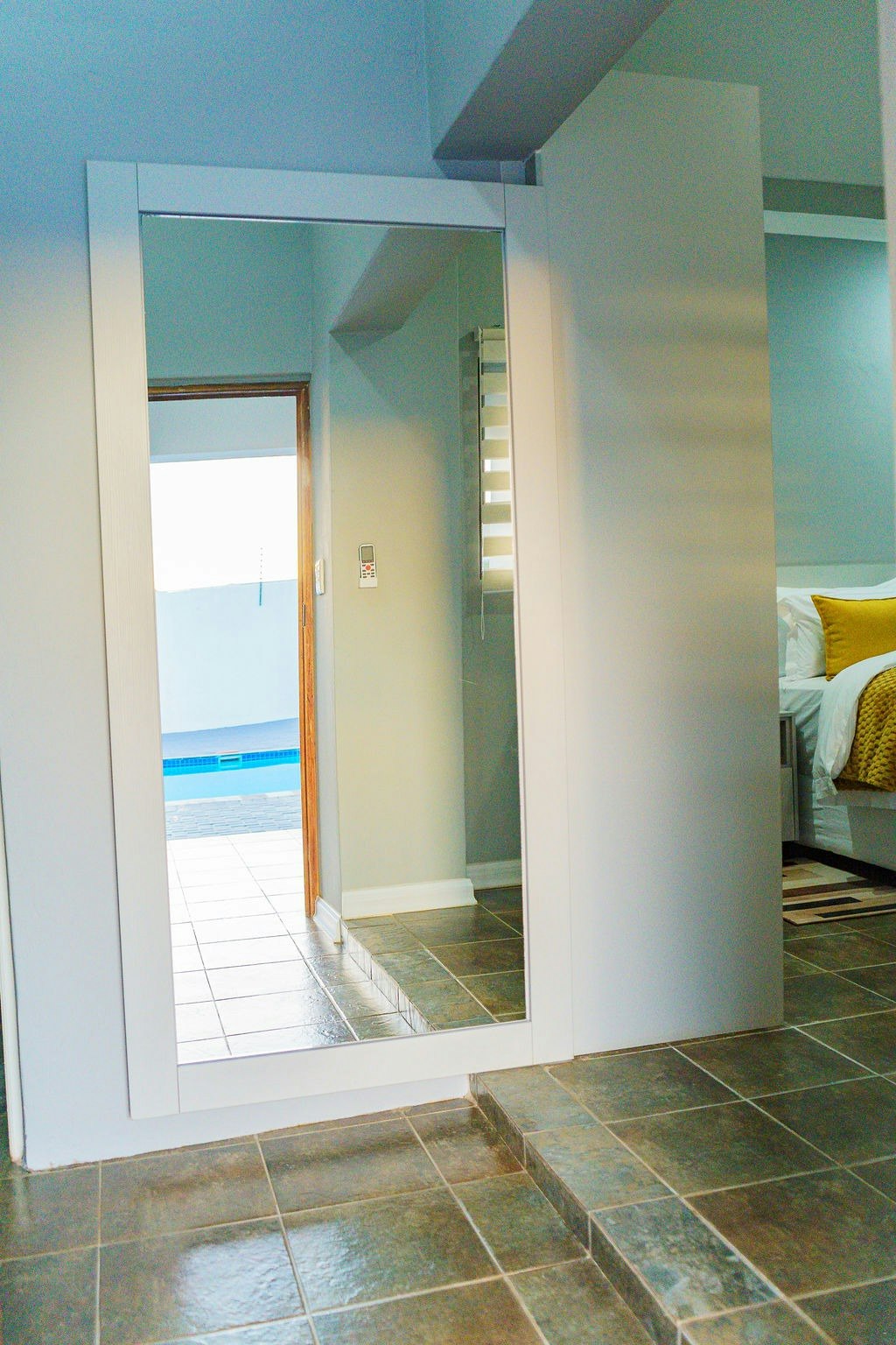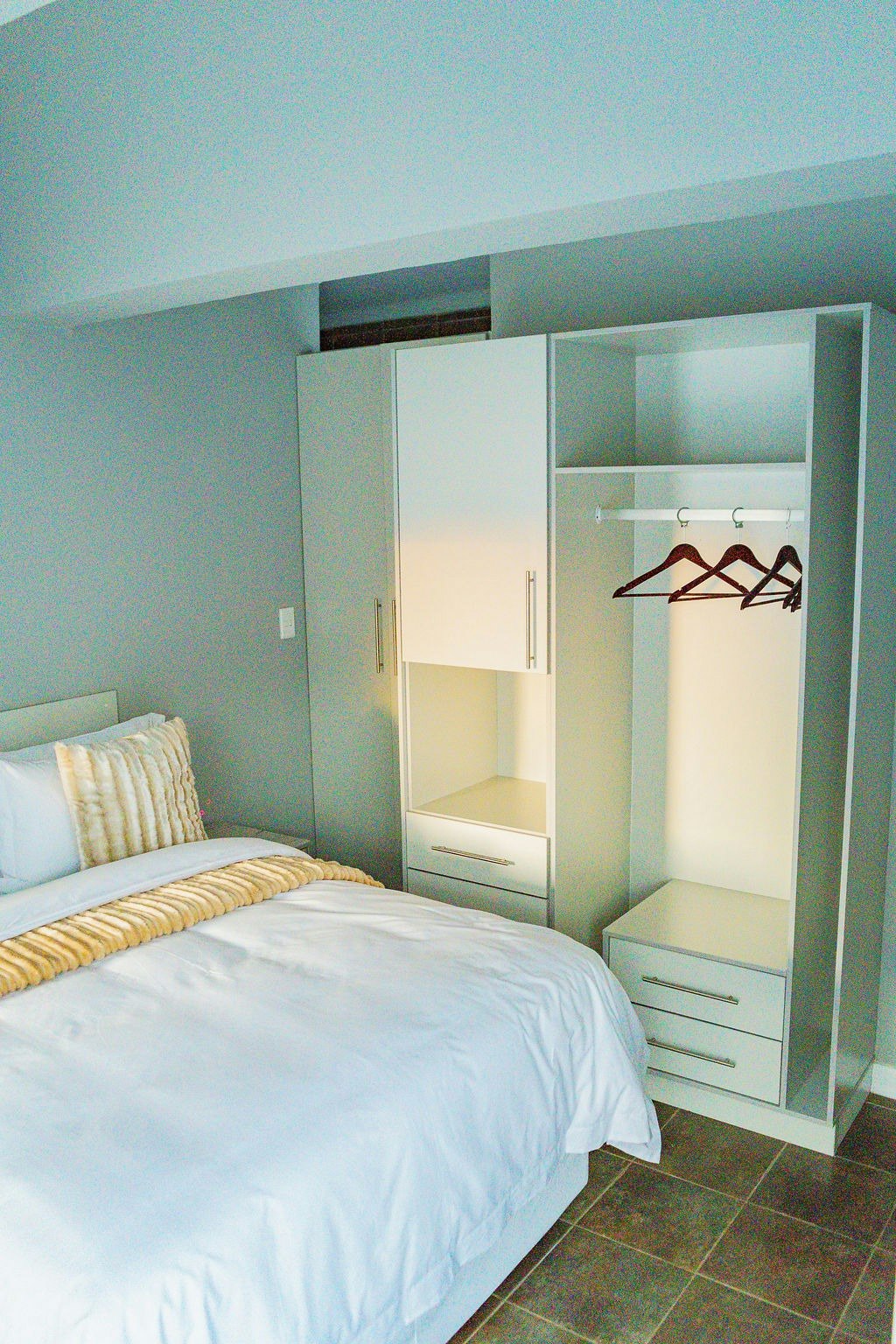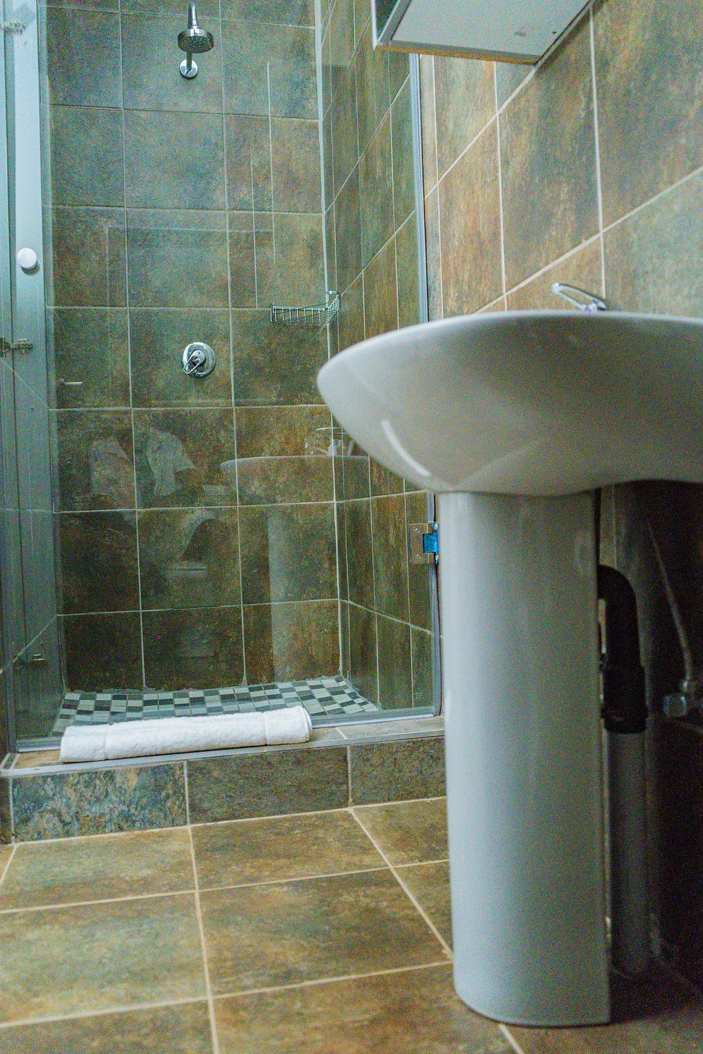 Gee Heights is a double-storey guest house equipped with a comprehensive security system, including an electric fence and 24-hour CCTV monitoring. A full solar power system ensures uninterrupted power, even during load-shedding.