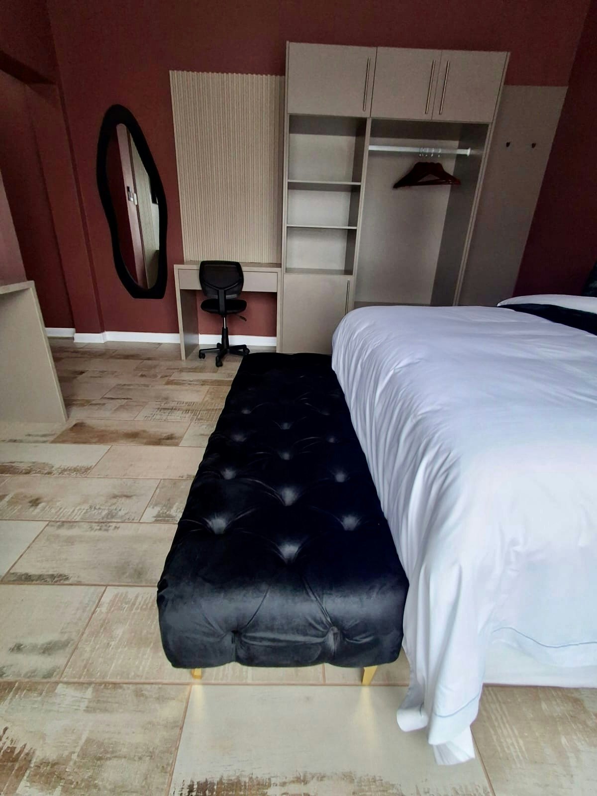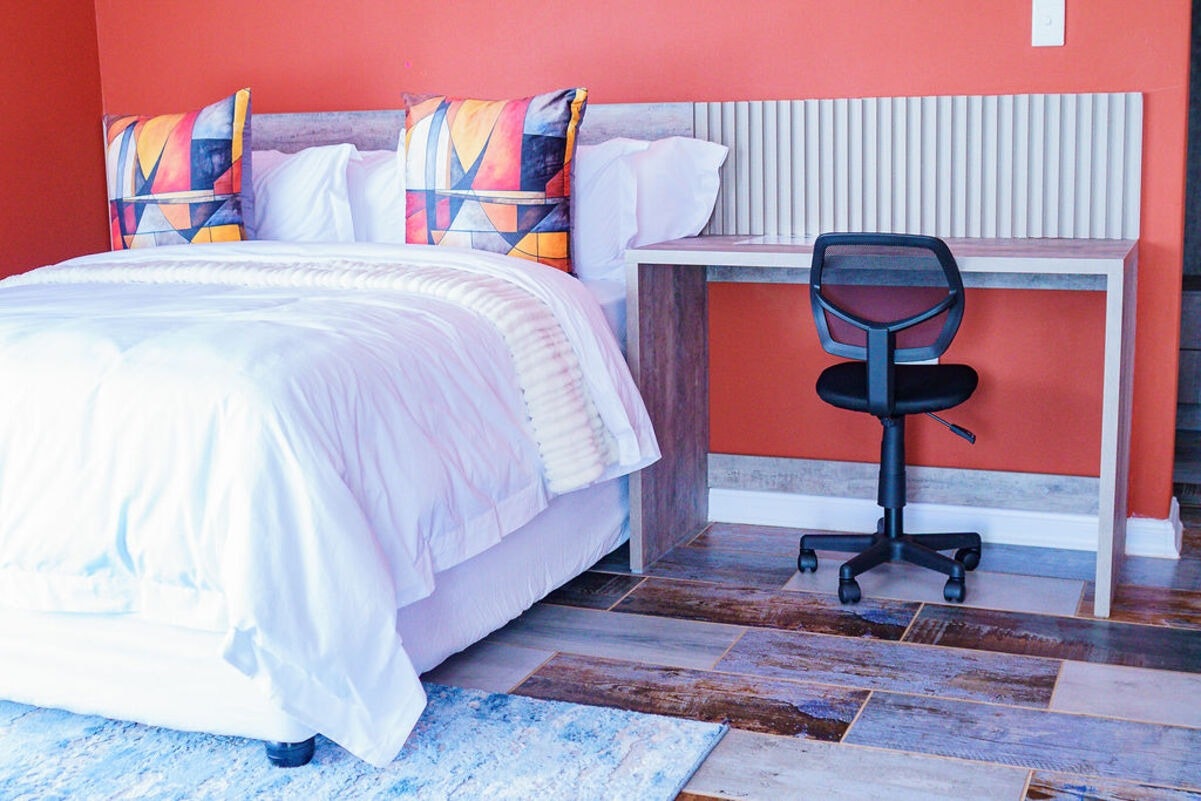The property features beautifully appointed guest bedrooms, each furnished with a queen-size bed and premium bedding. All rooms include en-suite bathrooms, along with modern in-room amenities such as smart TVs with access to Netflix, Showmax, Prime Video, and YouTube, high-speed Wi-Fi, air-conditioning, and dedicated workstations for added convenience.