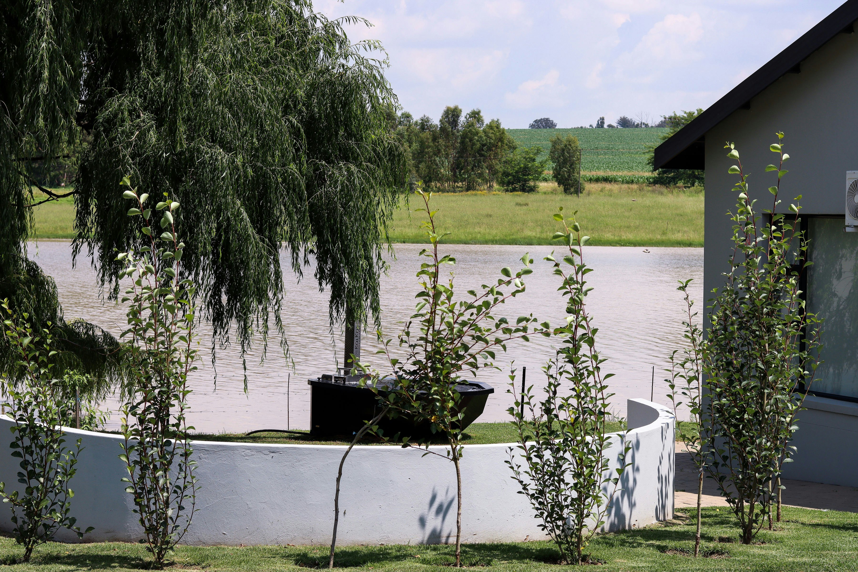 The spacious patio offers breathtaking sunrises over the dam, the sound of singing birds, and fish jumping as you enjoy your morning coffee. Fishing, a jacuzzi, canoeing, a pizza oven, and endless braais by the water are all part of the experience.