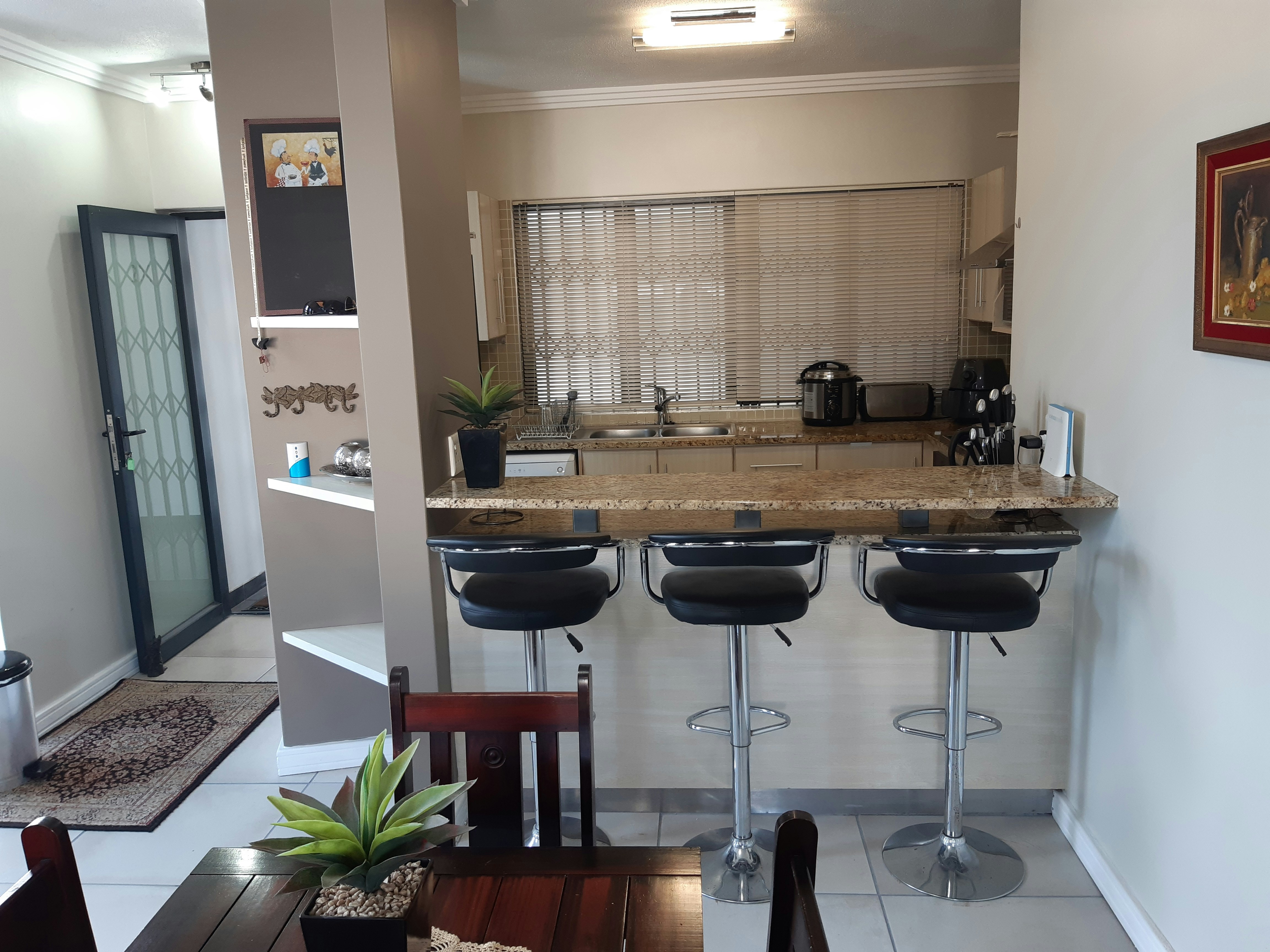 Die oopplan-kombuis is toegerus met 'n stoof, oond, mikrogolfoond, lugbraaier, yskas, ketel, skottelgoedwasser en wasmasjien. Maaltye kan by die toonbank of eetkamertafel geniet word. Die sitkamer het lugversorging, 'n TV met volledige DStv-kanale en WiFi. Die balkon het 'n braai en gedeeltelike see-uitsigte.