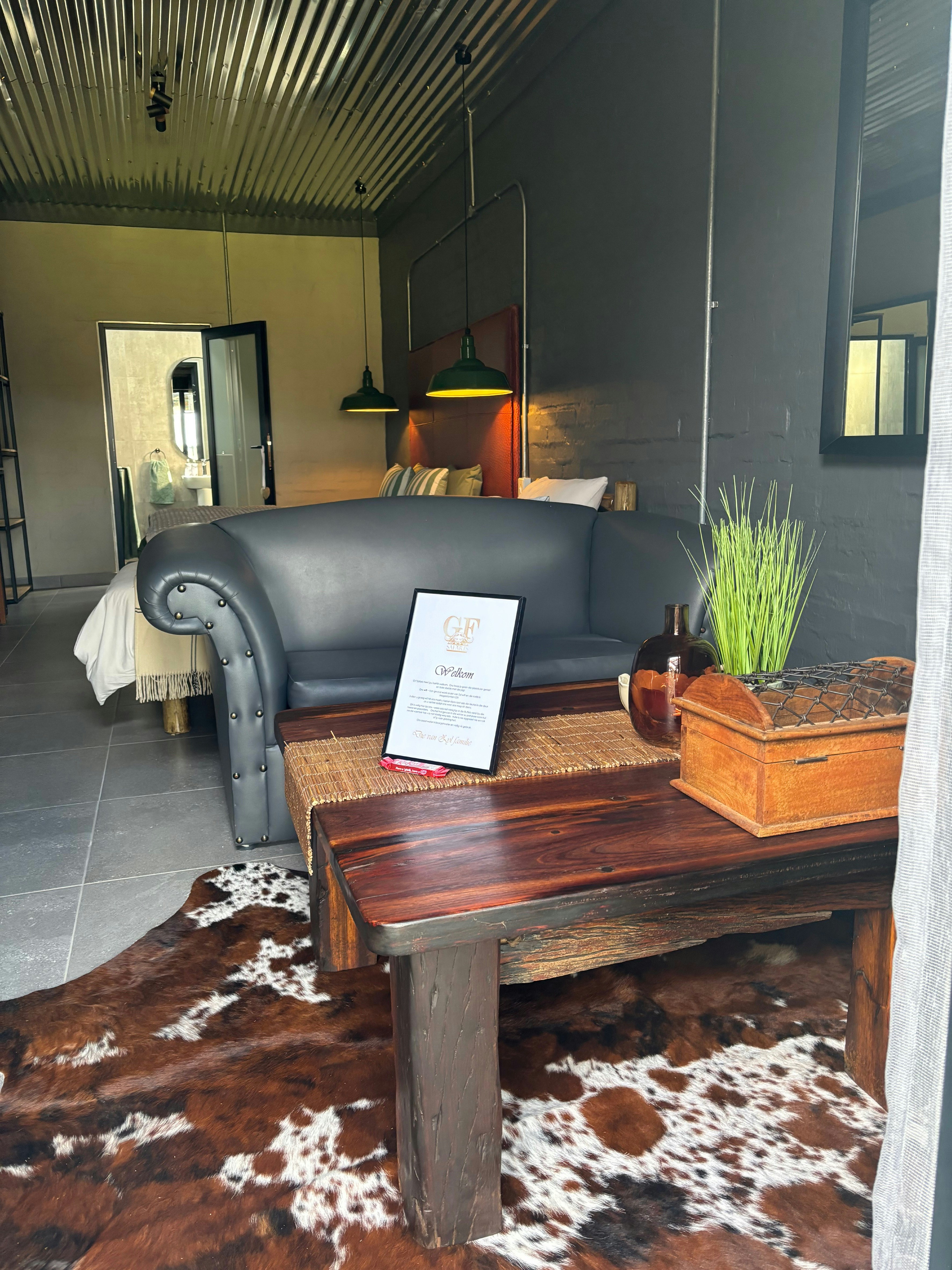 Buffalo Suite beskik oor 'n oopplan-leefarea, 'n slaapkamer met 'n kombuisie en 'n privaat KolKol-houtvuur-warmbad. Dit is perfek vir paartjies of 'n romantiese wegbreek en kyk uit oor die swembad en Buffalo Dam.