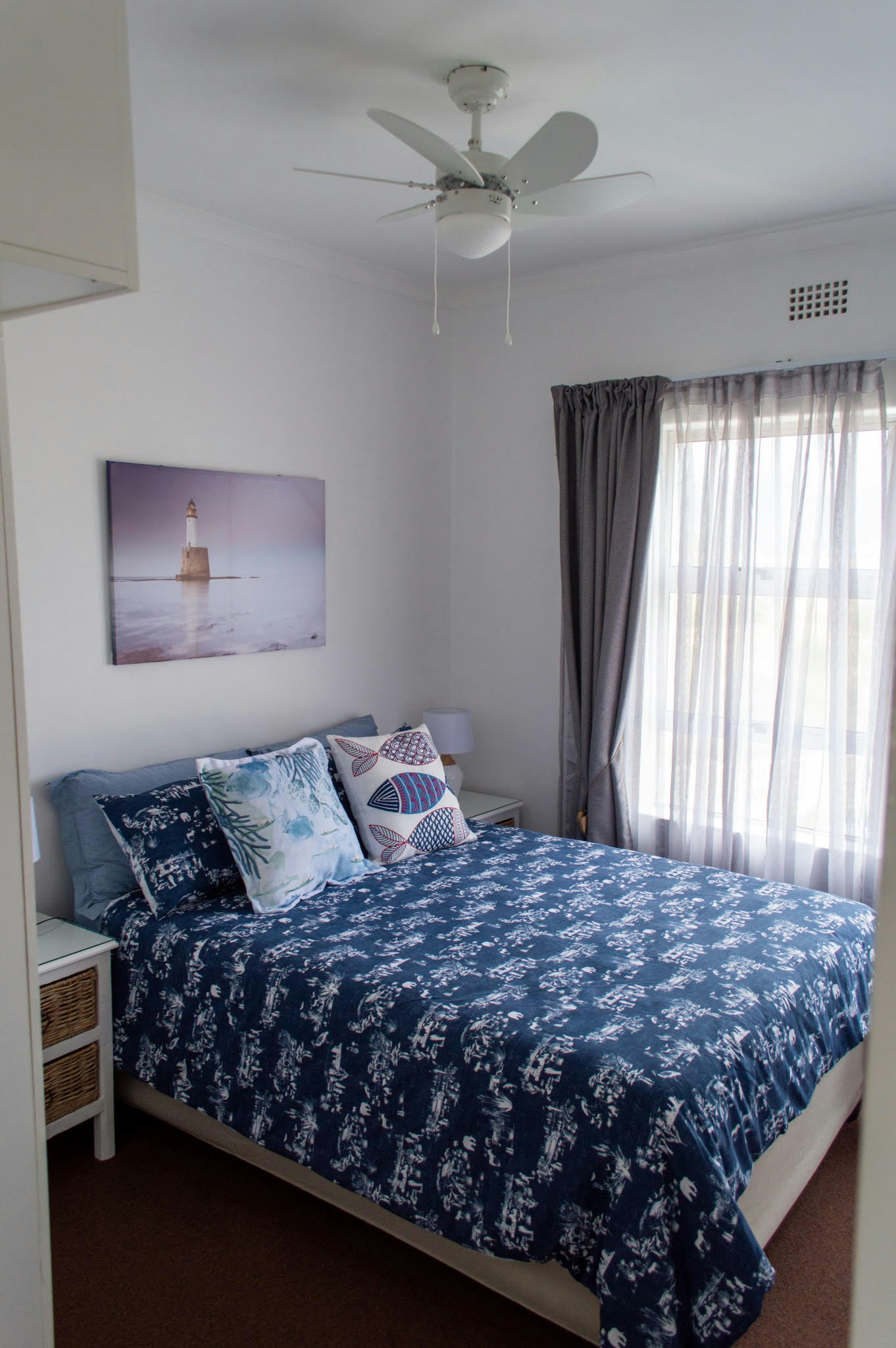 The apartment comprises 3 bedrooms and can accommodate up to 6 guests at a time. The unit is located on the second floor with access by stairs only. The main bedroom has a queen-size bed and an en-suite bathroom fitted with a shower, toilet, and basin. The second bedroom has a double bed, the third bedroom has 2 single beds and the second bathroom has a bath, toilet, and basin.