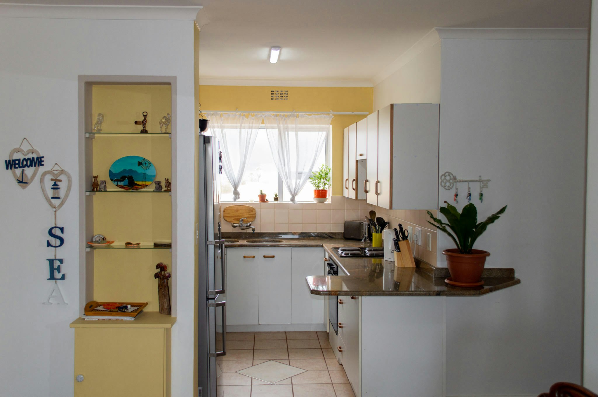 The lounge has comfortable couches as well as a Smart TV with Netflix, DStv and other streaming capabilities, and a dining area with seating for 8 where guests can enjoy their meals together. Guests can also enjoy complimentary Wi-Fi access. The accommodation does not offer DStv.