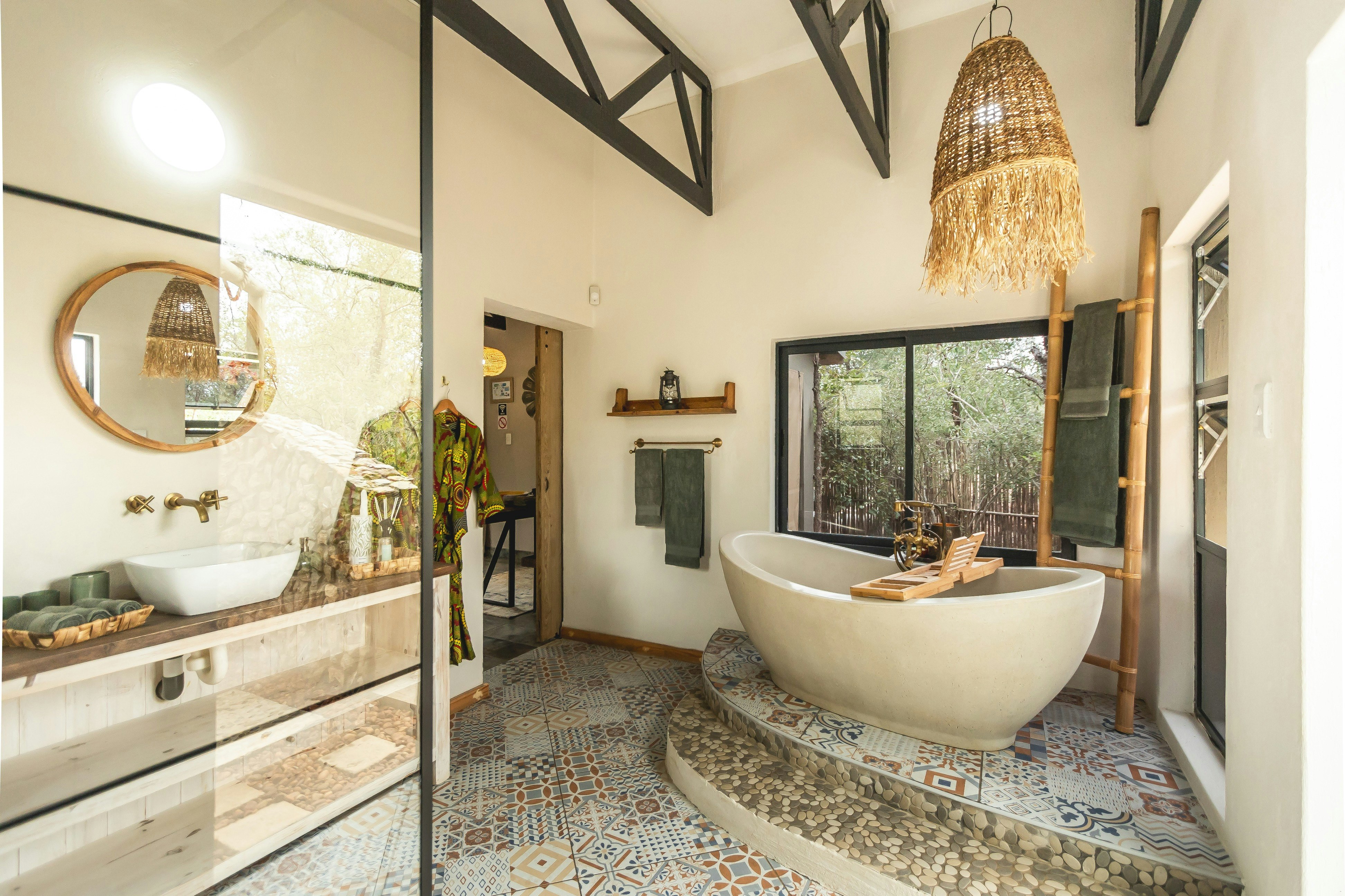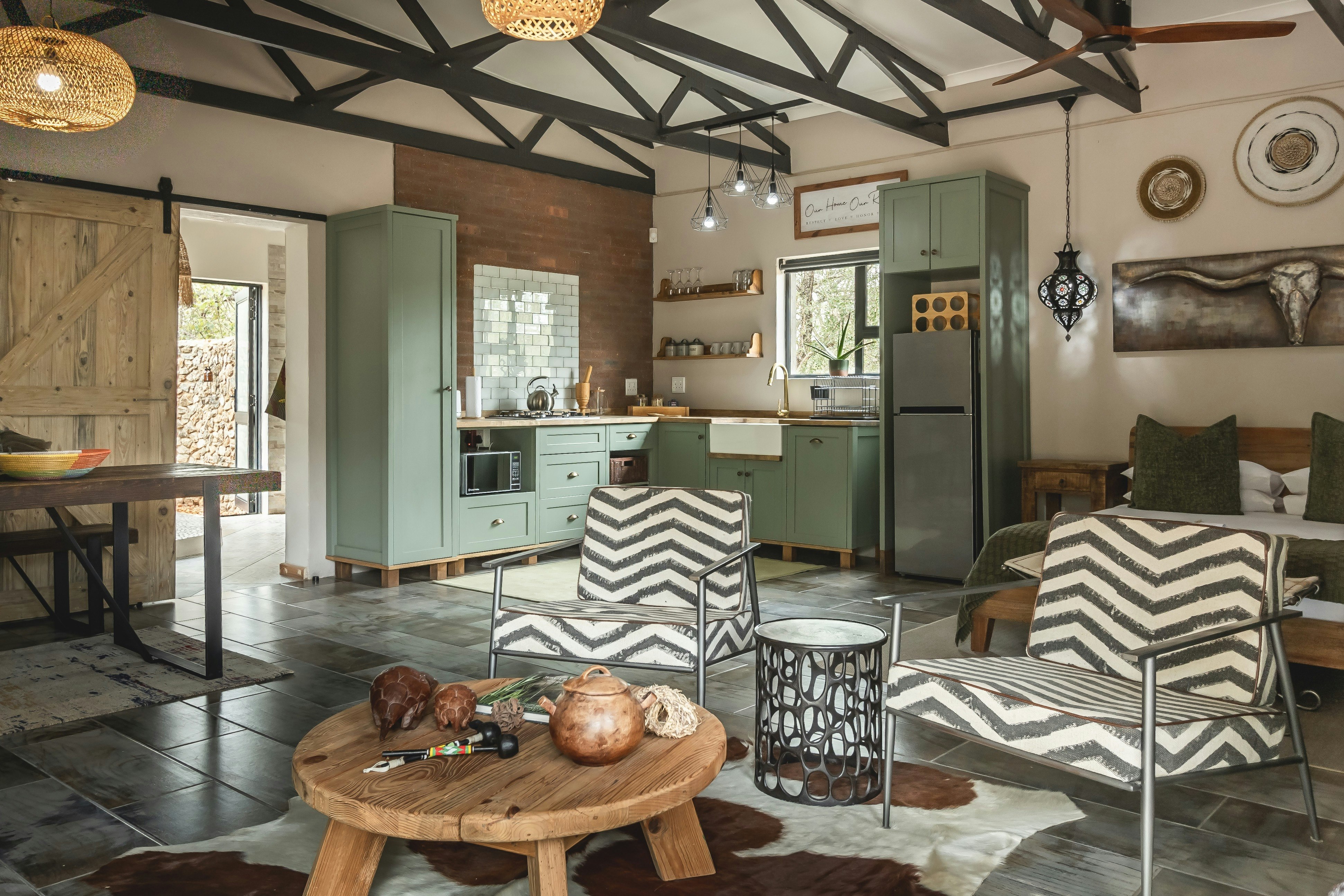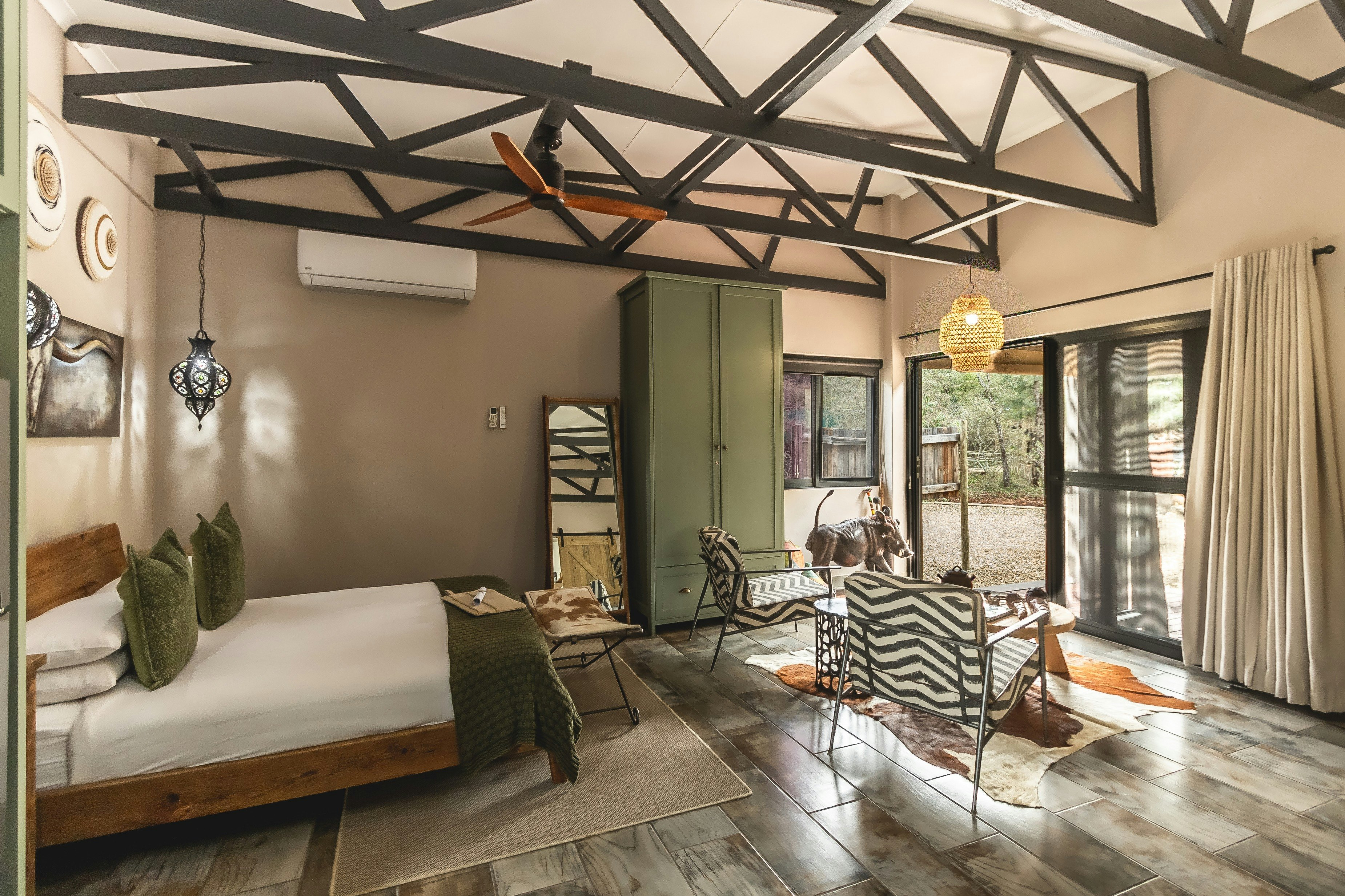 Accommodation is offered in a choice of 2 luxury free-standing suites that are ideal for a couple seeking a romantic getaway. The individually African modern and contemporary decorated suites feature an open-plan design, and both are furnished with a queen-size bed. Both suites have an amazing en-suite bathroom fitted with a bath as well as a walk-in shower and leads to a separate stunning outdoor shower.