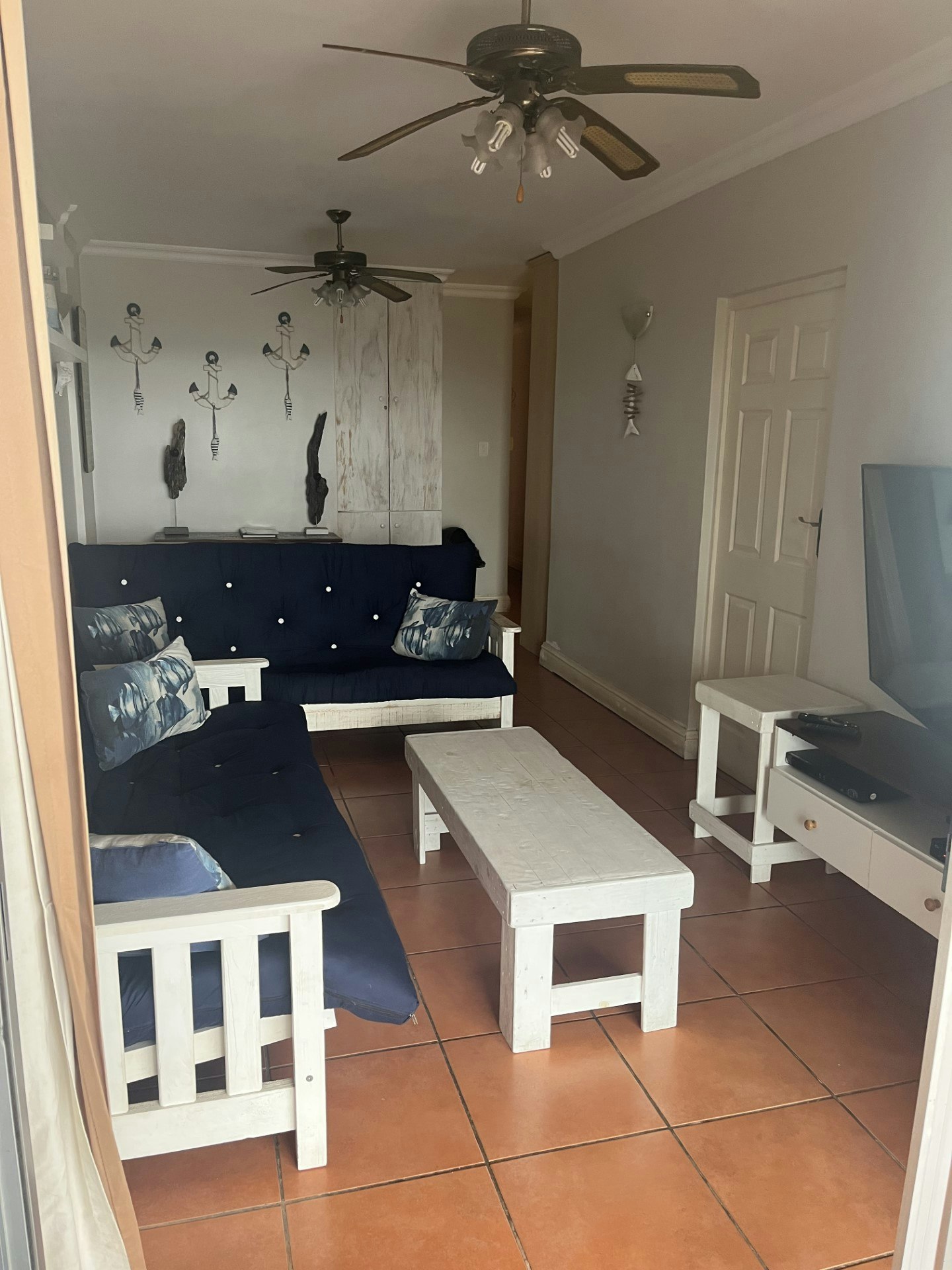 The living area opens onto a large balcony with a 6-seater patio set, braai facilities, a Jacuzzi, and sea, beach, and river views. Guests have access to 2 secure parking bays and will be located close to convenience stores and restaurants.