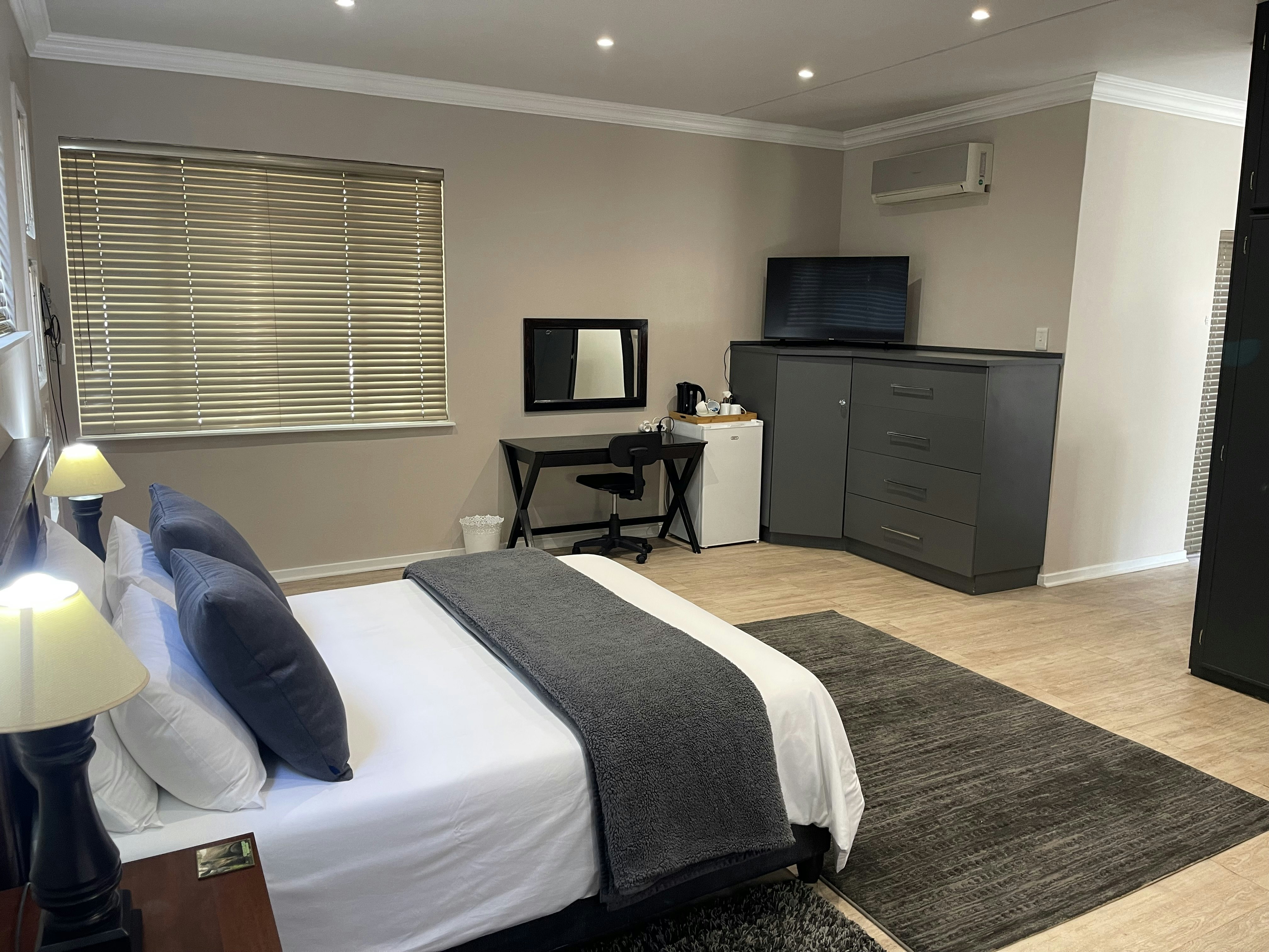 Accommodation is offered in air-conditioned suites, each with queen-size beds and an en-suite bathroom with bath or shower facilities. Additionally, the rooms offer complimentary Wi-Fi, a desk, a TV with Netflix and Showmax, a bar fridge, and coffee- and tea-making facilities. A patio with garden views is available as well.