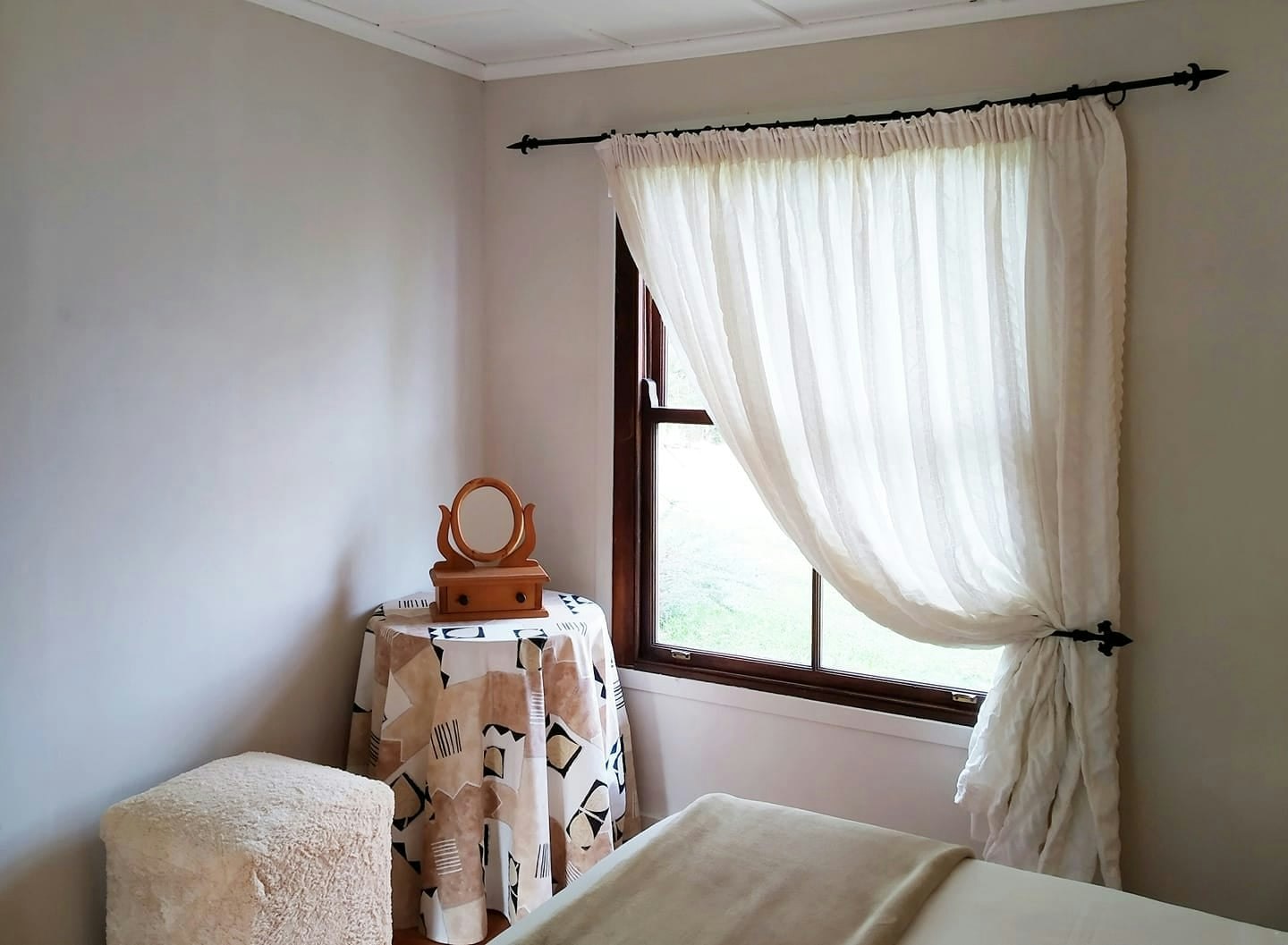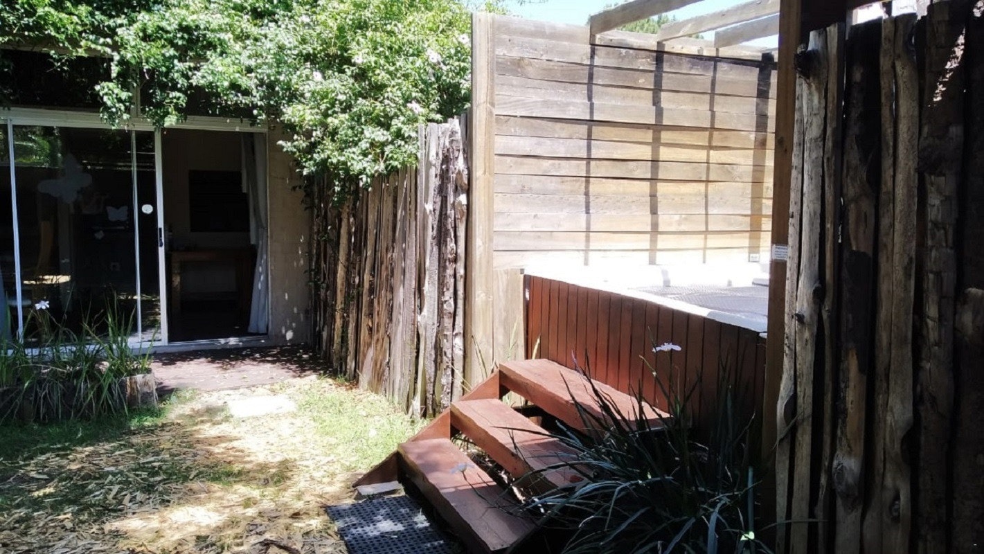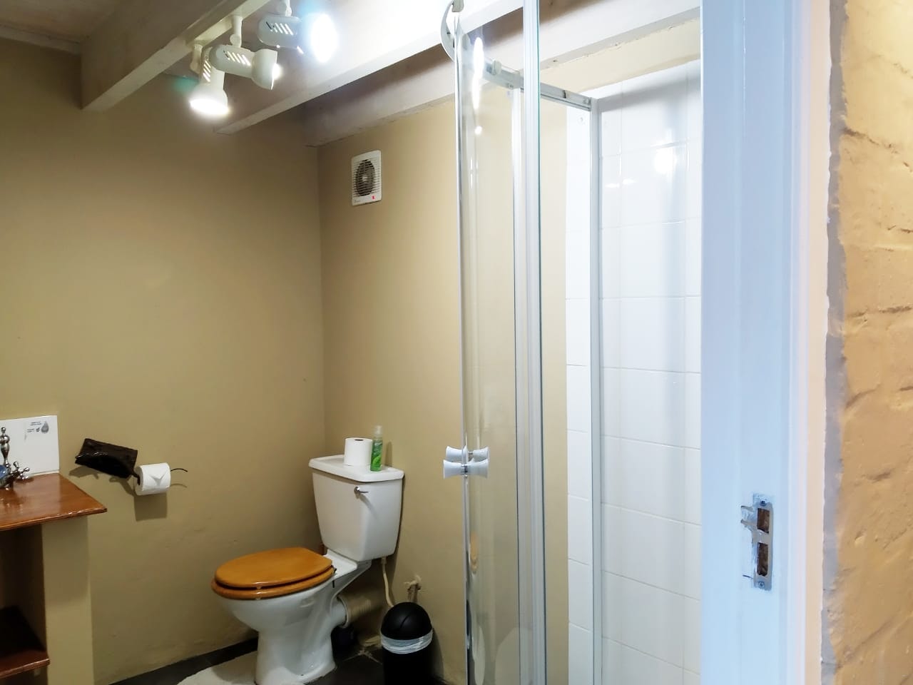 Self-Catering Five - The Cottage is a pet-friendly unit featuring its own fenced garden, making it suitable for larger dogs. The cottage accommodates 4 guests and comprises 2 bedrooms. The main bedroom is furnished with a queen-sized bed, while the second bedroom offers 2 single beds. The unit includes a bathroom fitted with a shower and a fully equipped kitchenette with a microwave, mini-oven, kettle, and family-sized fridge and freezer. Outside, guests can enjoy a table with four chairs and a kettle braai, providing a comfortable setting for outdoor dining and relaxation.