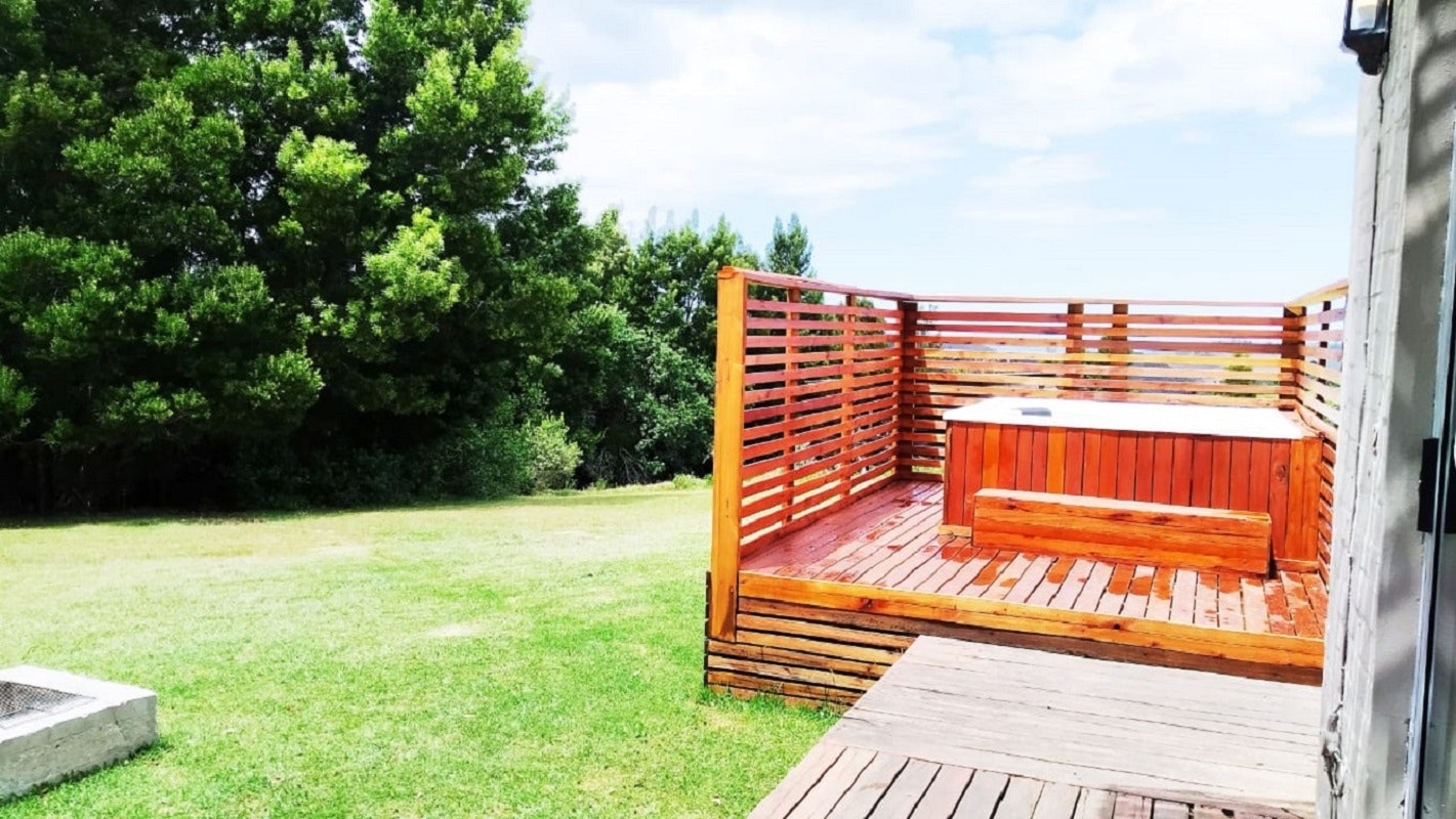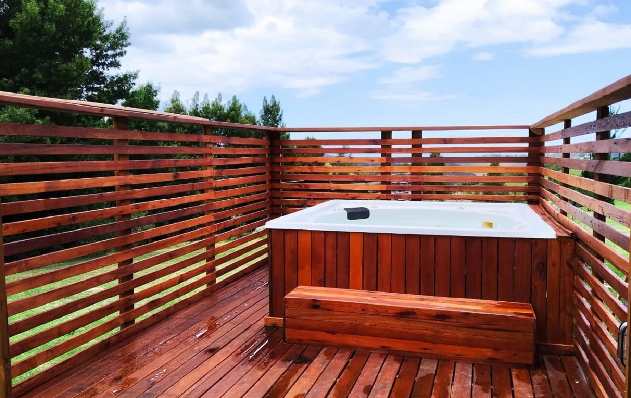 Self-Catering Four has its own private Jacuzzi / Hot-Tub and is furnished with a double bed in a loft-style bedroom and an additional single bed in the living area, as well as a private bathroom with a shower. This unit is equipped with a kitchenette which features a 2-plate stove with mini-oven, fridge, microwave, kettle, toaster and cutlery and crockery. Other features in the unit include a TV with Netflix and free Wi-Fi, as well as a private braai with a wooden table and benches.