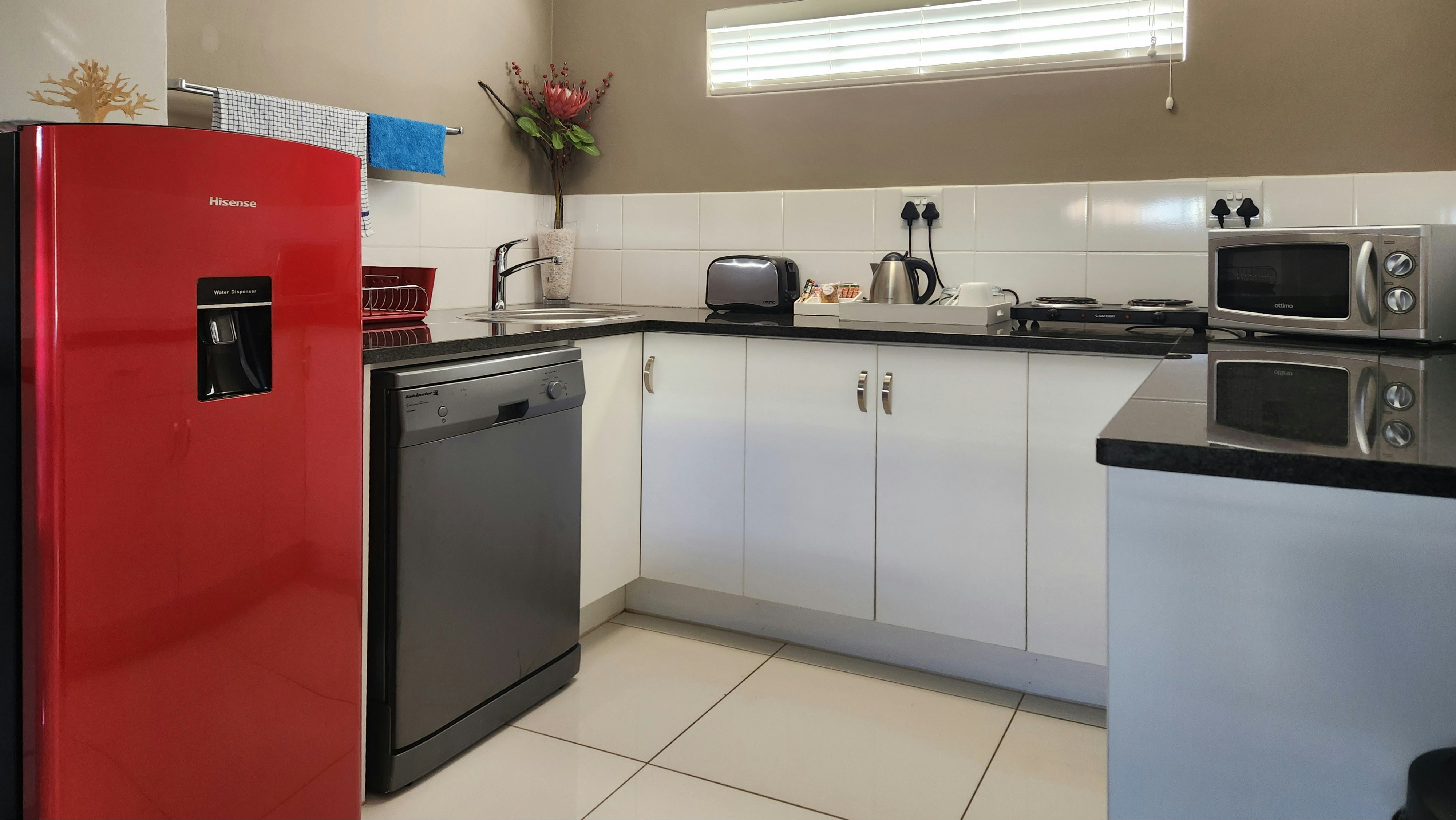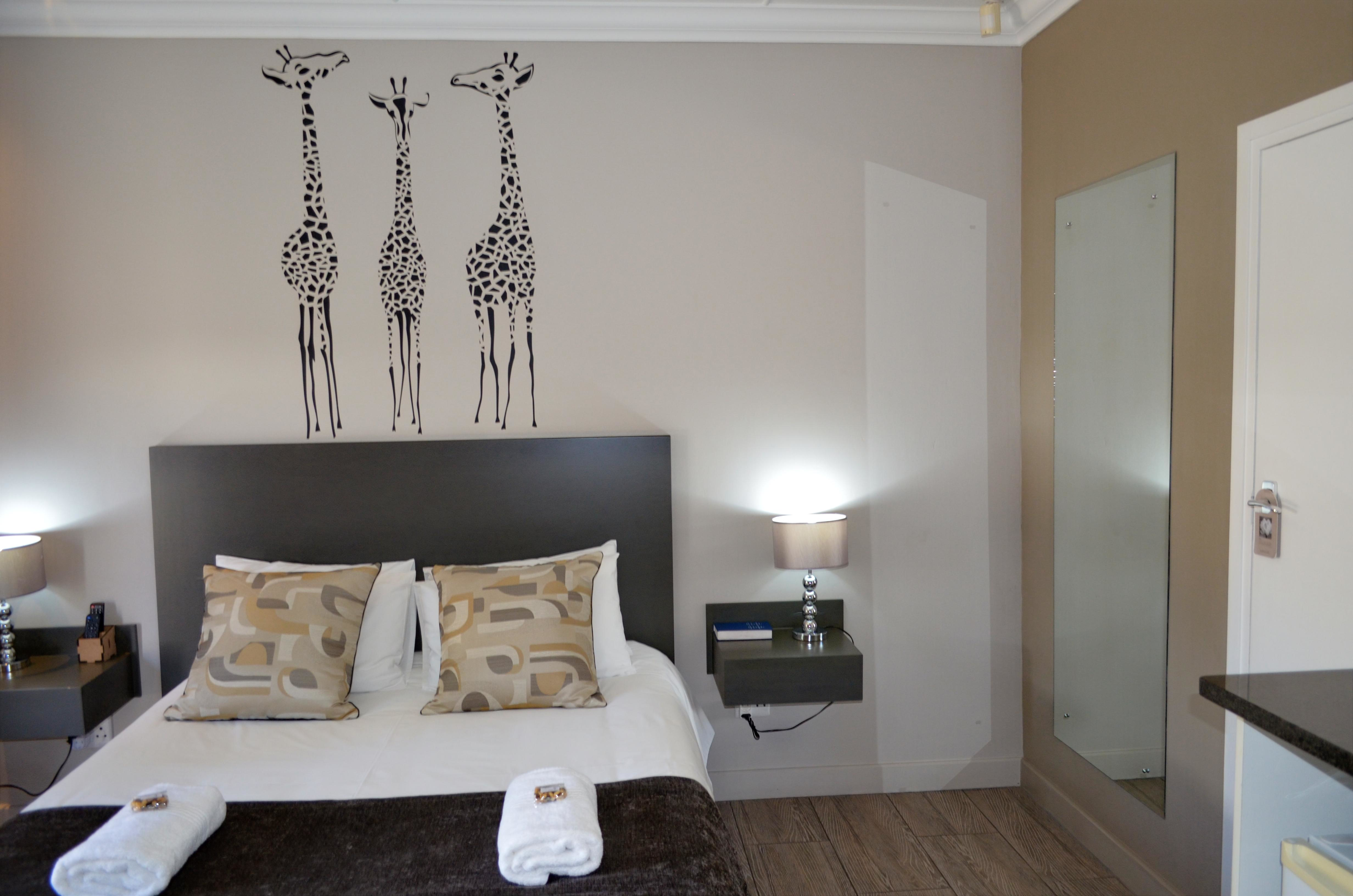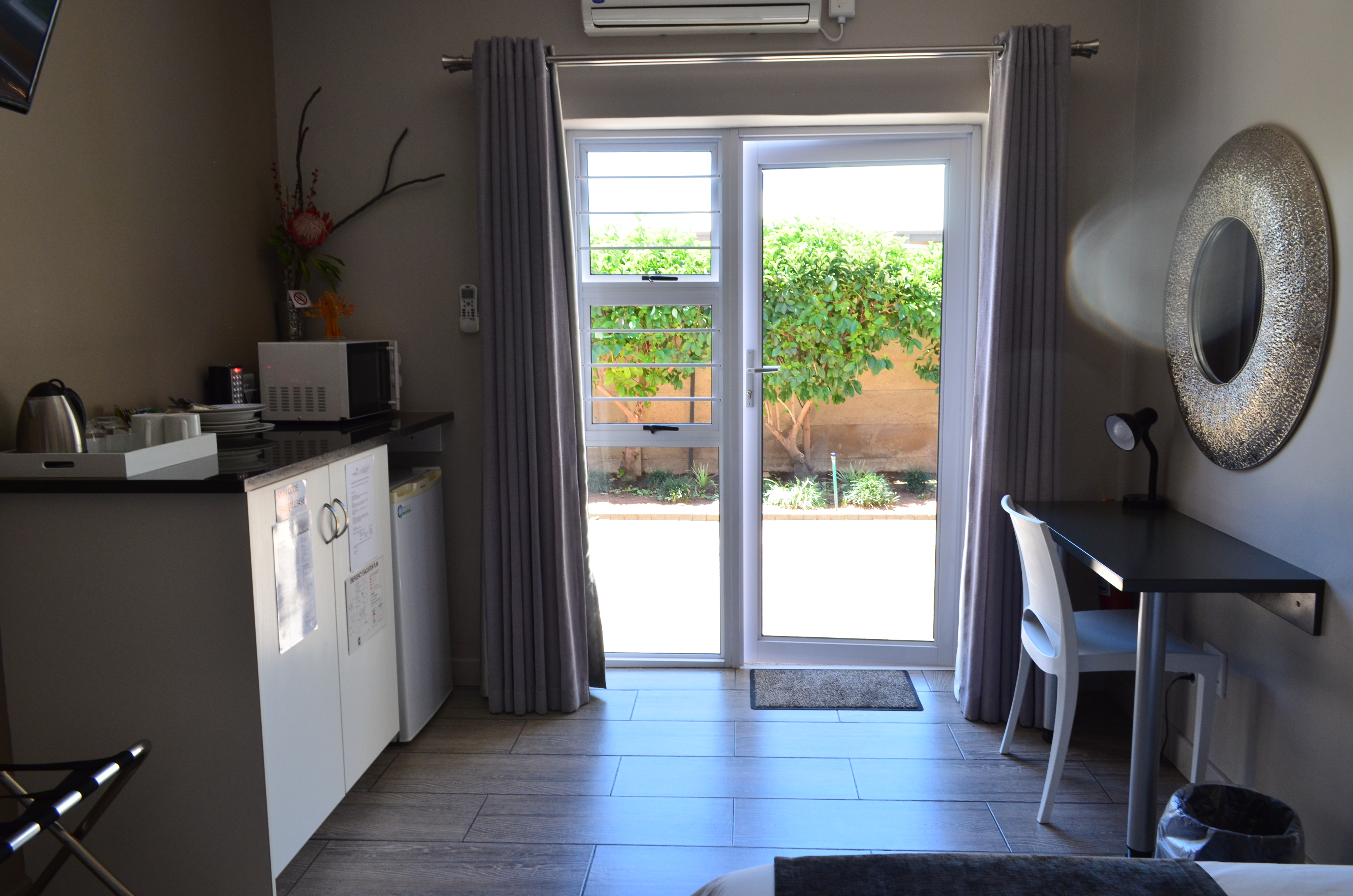 Accommodation comprises 5 bedrooms. These rooms are tastefully decorated and furnished with a queen-size bed and an en-suite bathroom fitted with a shower, basin, and toilet. Facilities included in these rooms are a working desk, air-conditioning, a bar fridge, a microwave, tea- and coffee-making amenities, towels, toiletries, as well as a hairdryer. Each room has DStv with all sports channels, free Wi-Fi, and a private patio and entrance. The guesthouse is fenced, and ample parking is available.