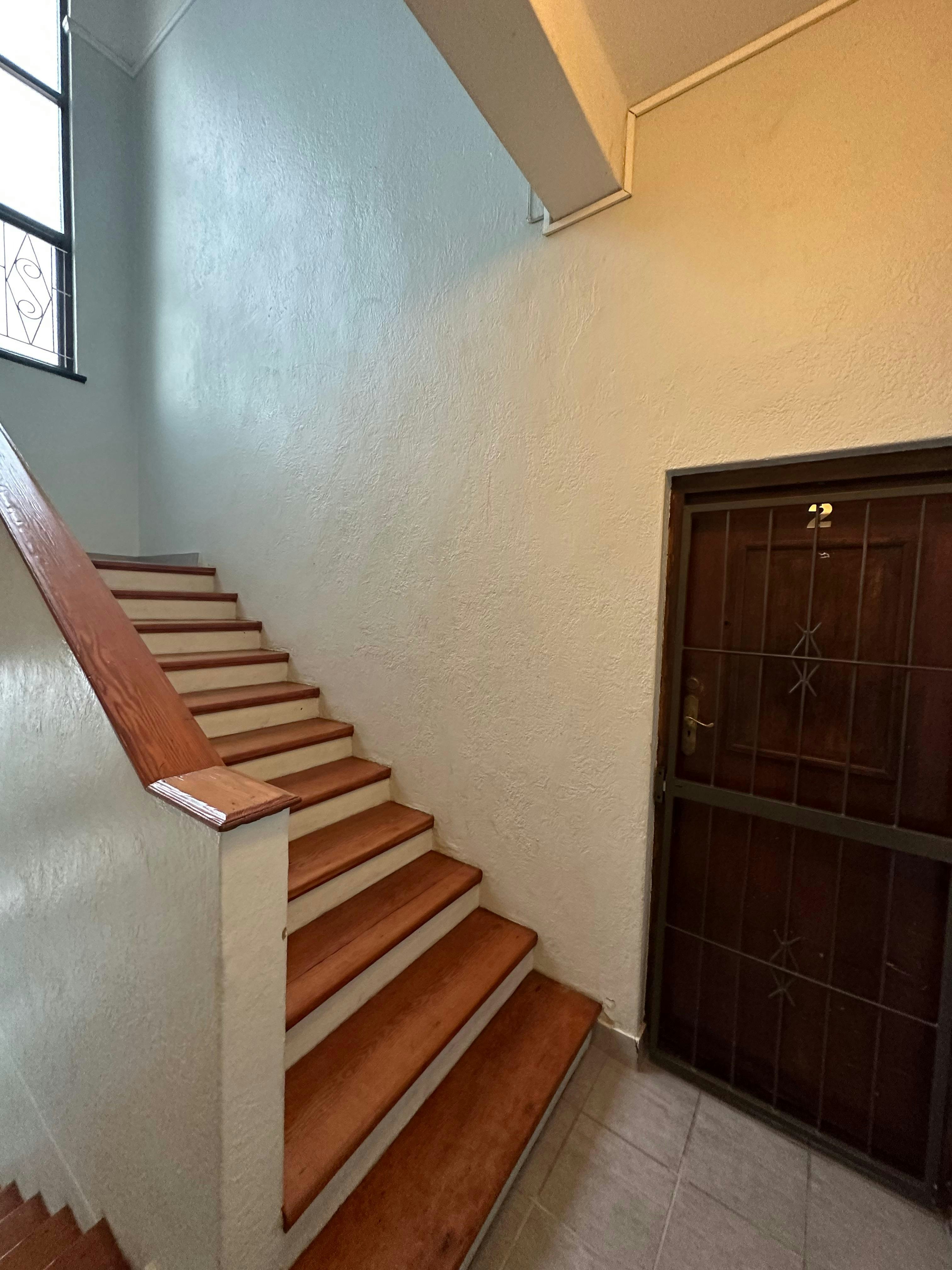 The open-plan living area features comfortable seating, a TV, a dining table, and a well-equipped kitchen. The kitchen includes a fridge-freezer, stove, oven, microwave, washing machine, tumble dryer, and coffee- and tea-making facilities, making it ideal for longer stays. Guests can unwind on two private balconies, offering a peaceful environment and lovely views of the surrounding area. The apartment is also equipped with a UPS power backup system, ensuring essential devices remain functional during power outages. On-street parking is available.