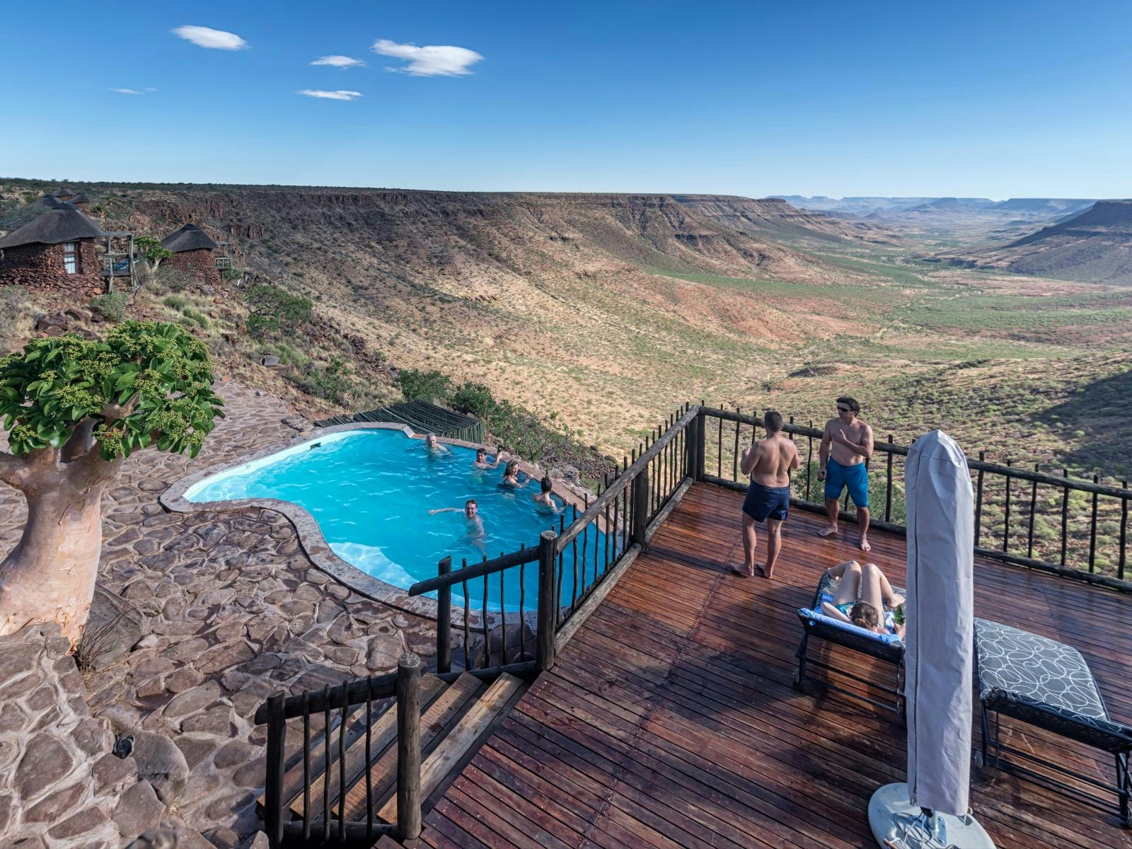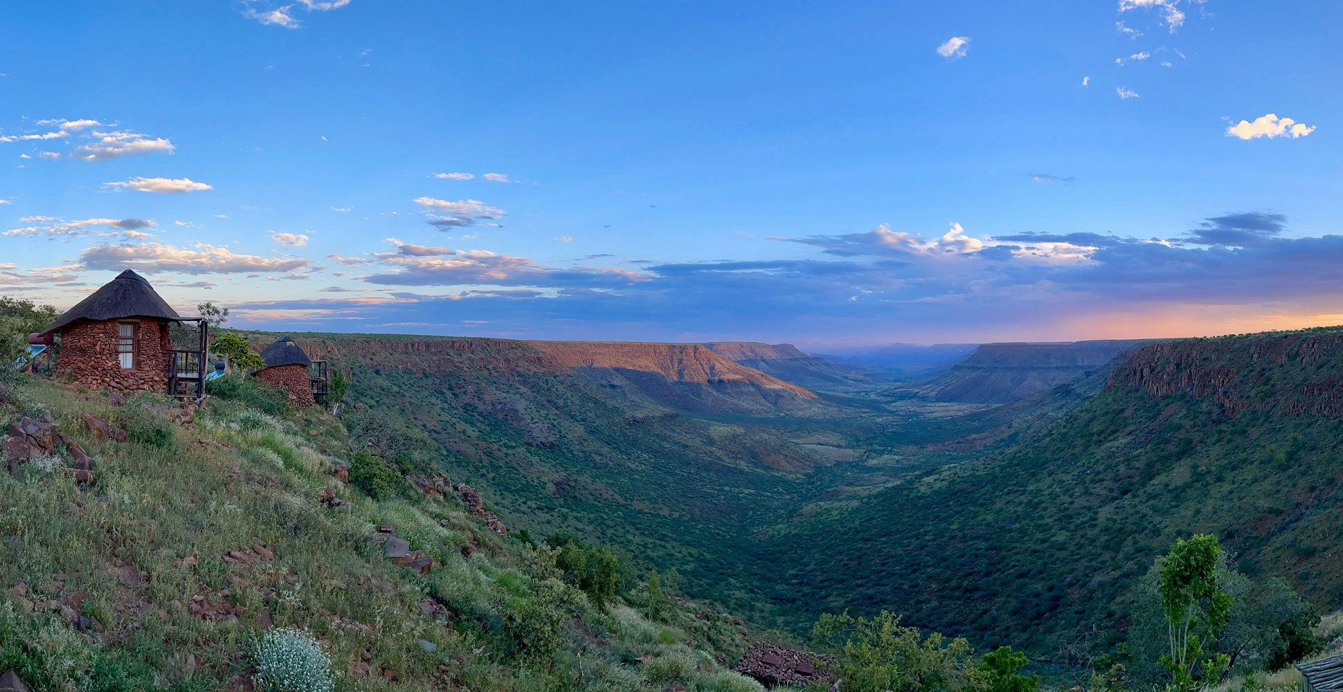 Guided walks and drives are available by prior arrangement. Grootberg Lodge is situated on the Etendeka Plateau and overlooks the Klip River Valley.