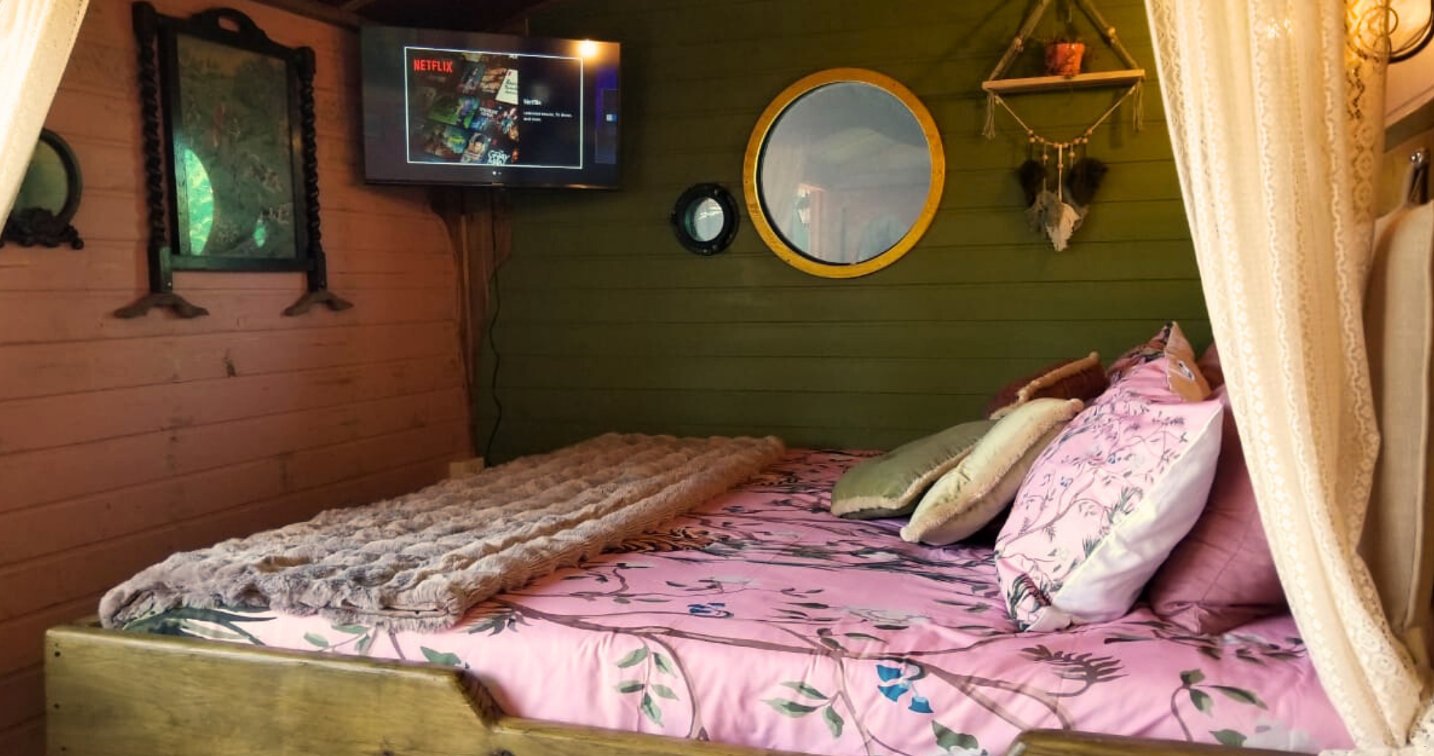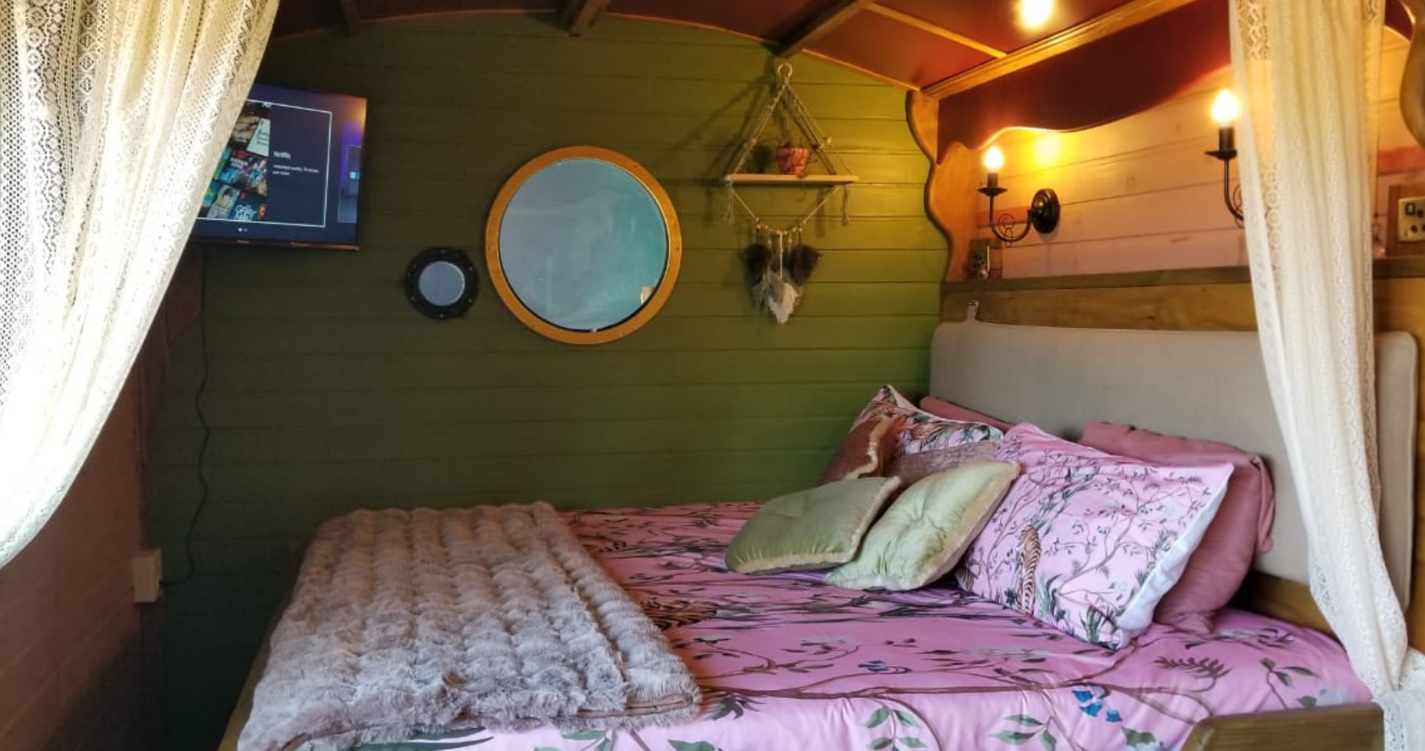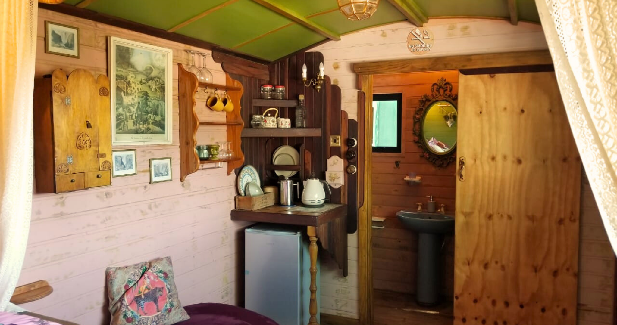 Die kampeerwa is ingerig met 'n koninggrootte-bed en beskik oor 'n en suite-badkamer met 'n stort en toilet. Die eenheid kan gemaklik tot 2 volwassenes akkommodeer. 'n Buitestort is beskikbaar, met 'n sonkrag-aangedrewe geiser wat deur elektrisiteit ondersteun word.