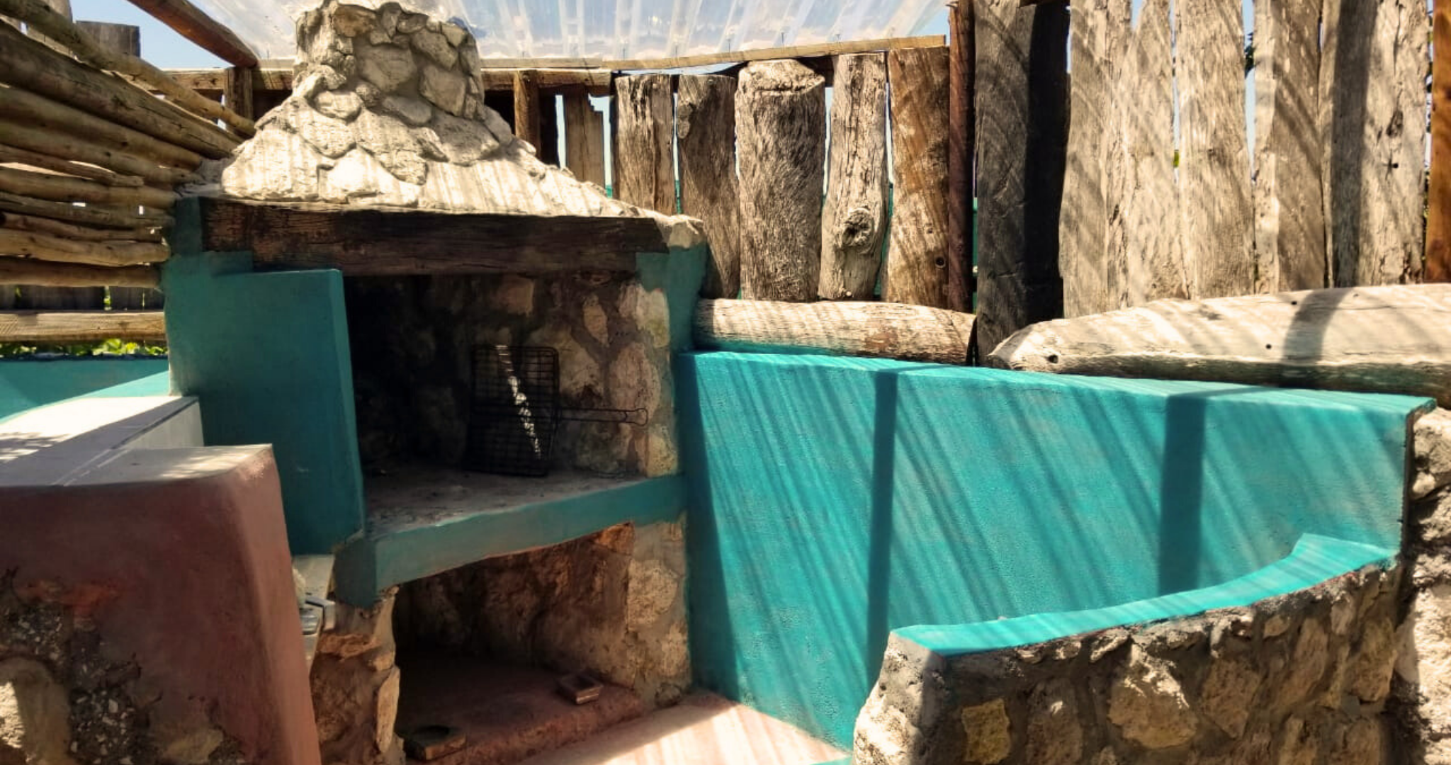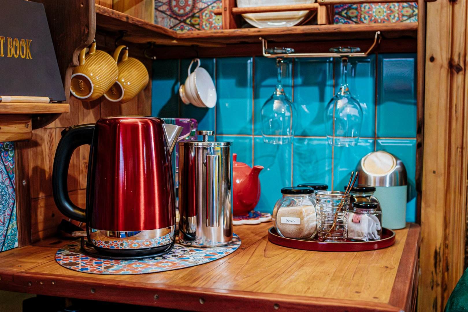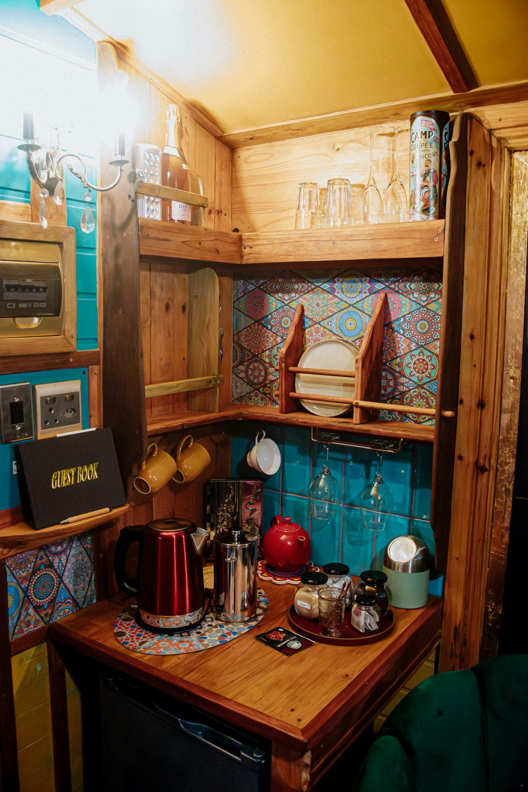 Die kombuis is buite geleë en is toegerus met 'n tweeplaat-gasstoof. Die eenheid het ook 'n yskas en tee- en koffiemaakgeriewe.
