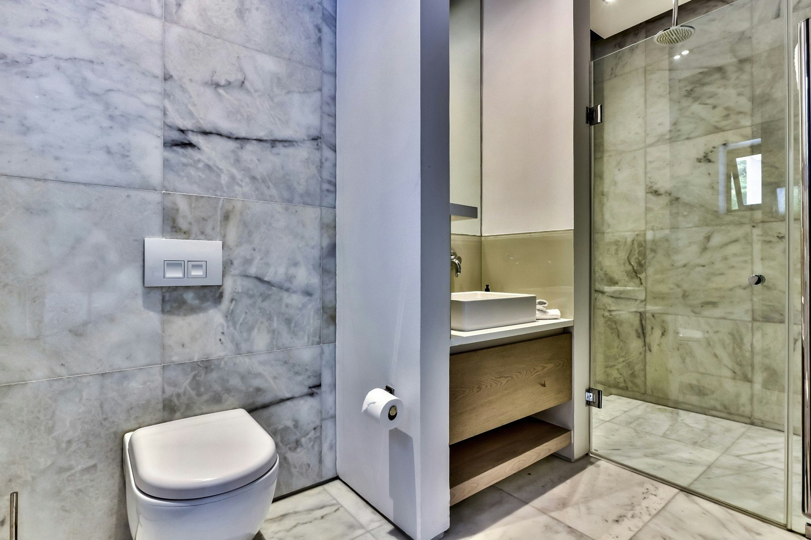 The villa features 7 bedrooms and 7 bathrooms. The main bedroom is furnished with a king-size bed and has an en-suite bathroom fitted with a bath, shower, toilet, and basin. The second bedroom includes a queen-size bed and an en-suite bathroom fitted with a bath, shower, toilet, and basin. The remaining bedrooms each have a queen-size bed and an en-suite bathroom fitted with a shower, toilet, and basin. A separate guest toilet is also available.