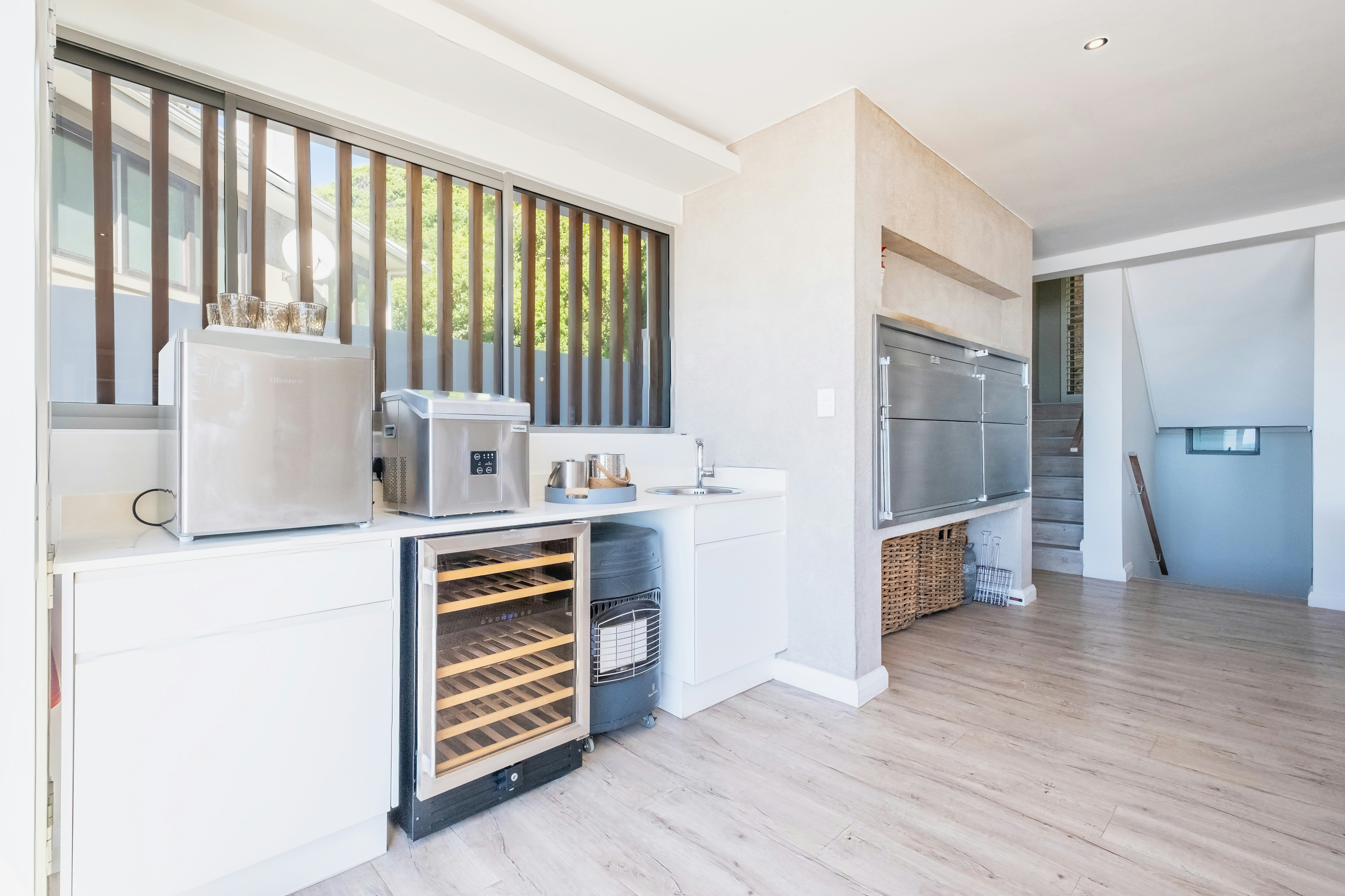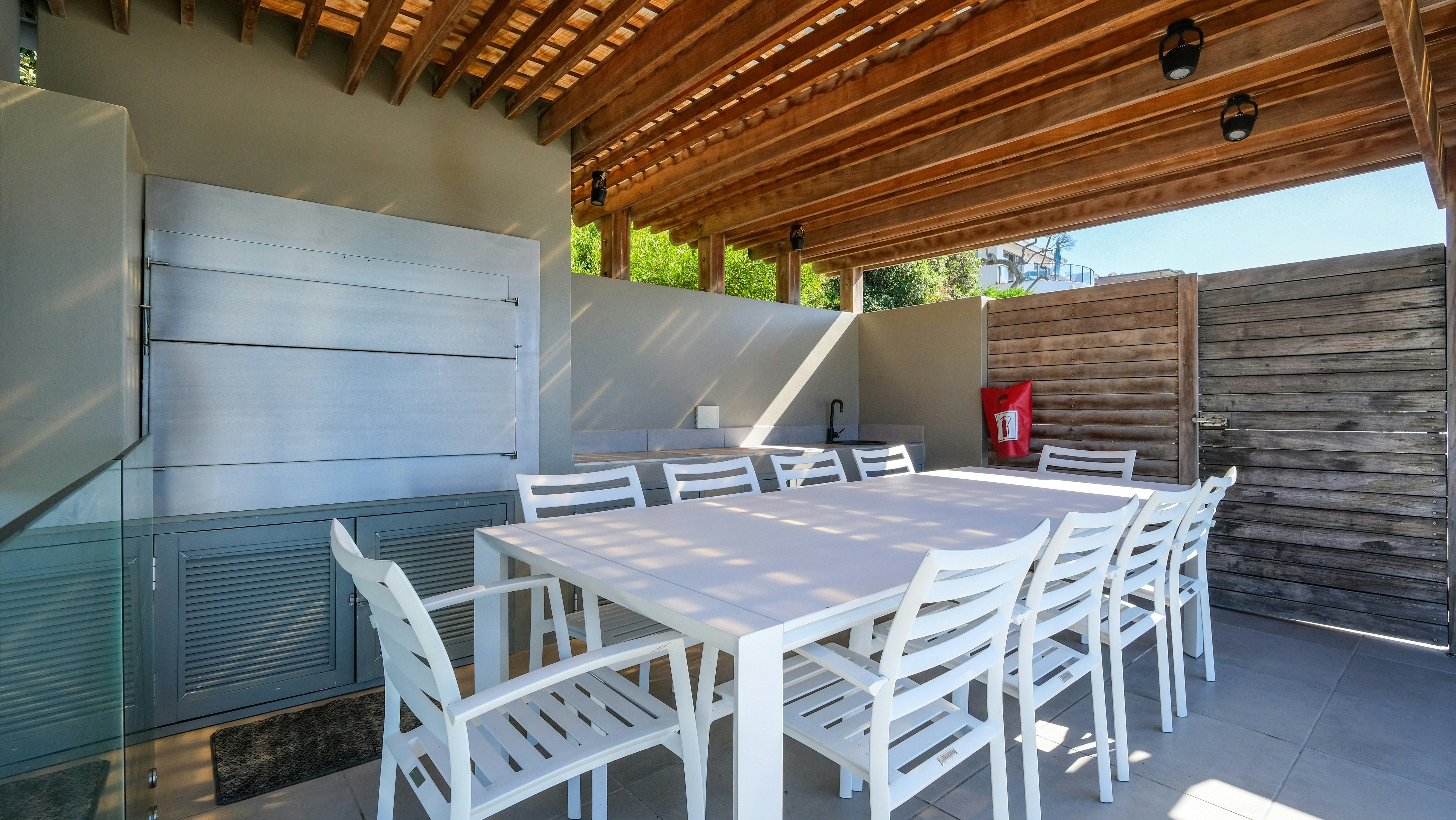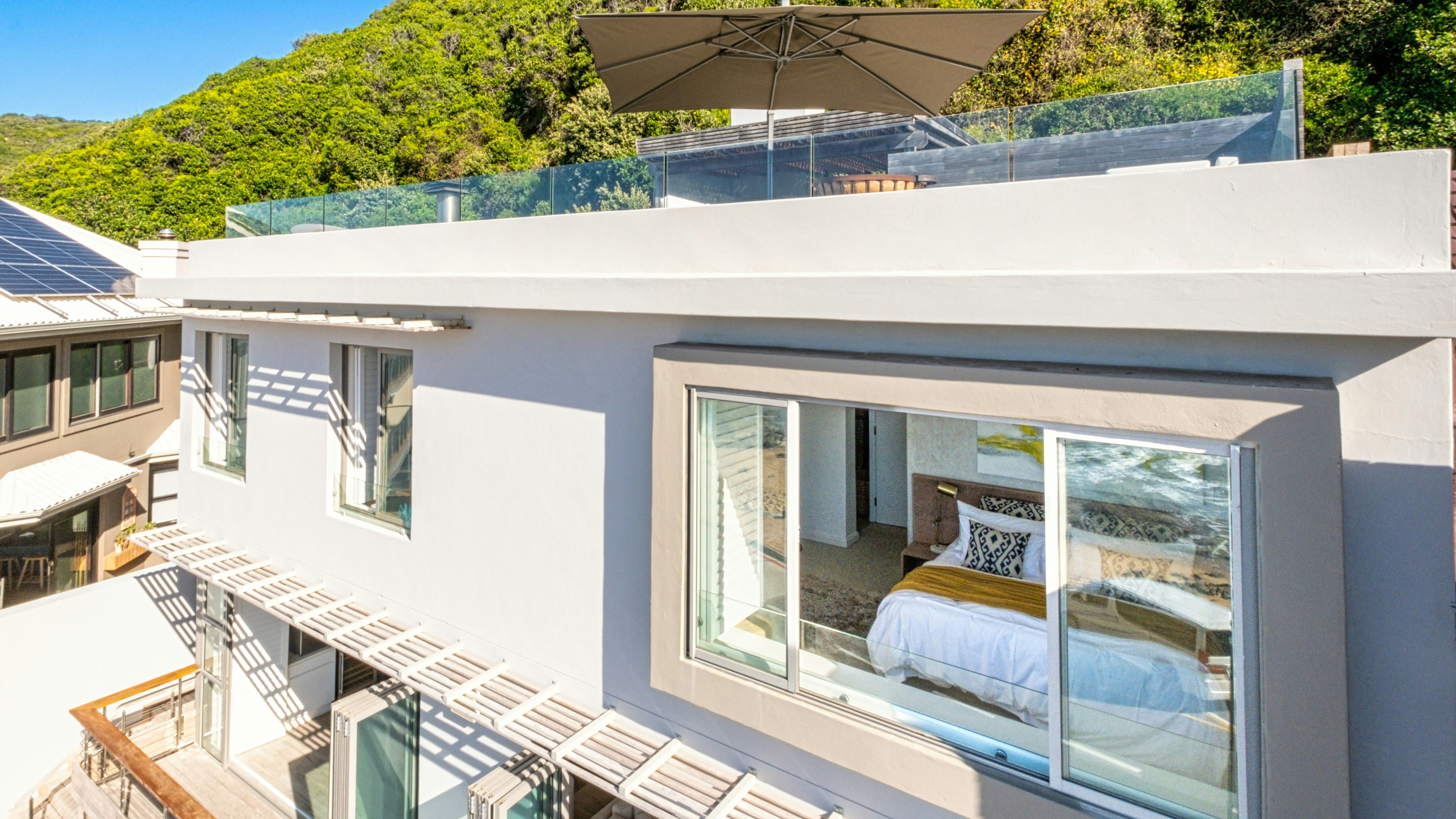 Die hoof-leefarea het stapeldeure wat na 'n dek lei. Daar is 'n kuier-area op die dak met sitplek, sonstoele en 'n vuurput. Veilige parkeerplek op die perseel is beskikbaar. Die verblyf is naby Heroldsbaai se strand en 5,7 km vanaf Oubaai-gholfbaan.