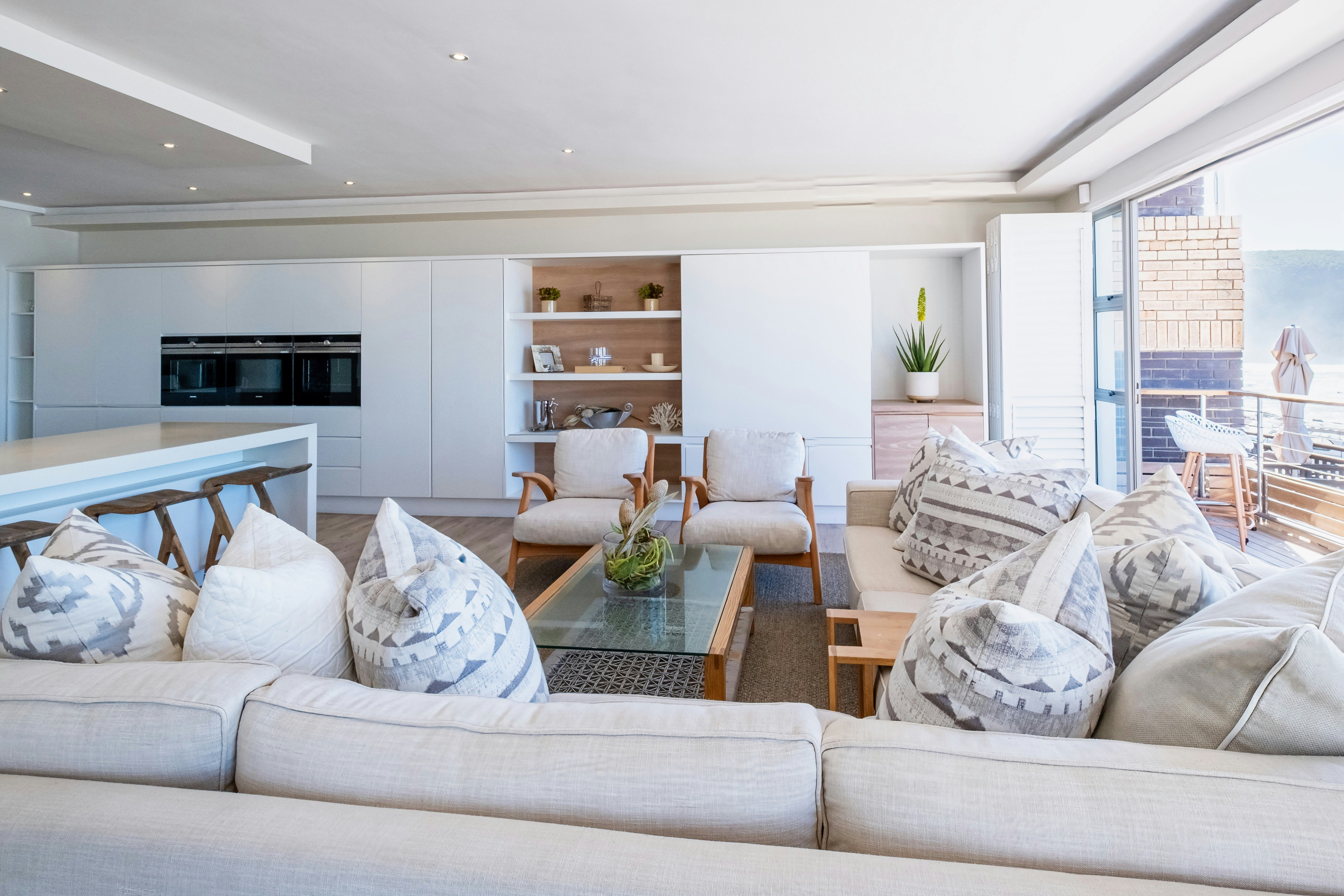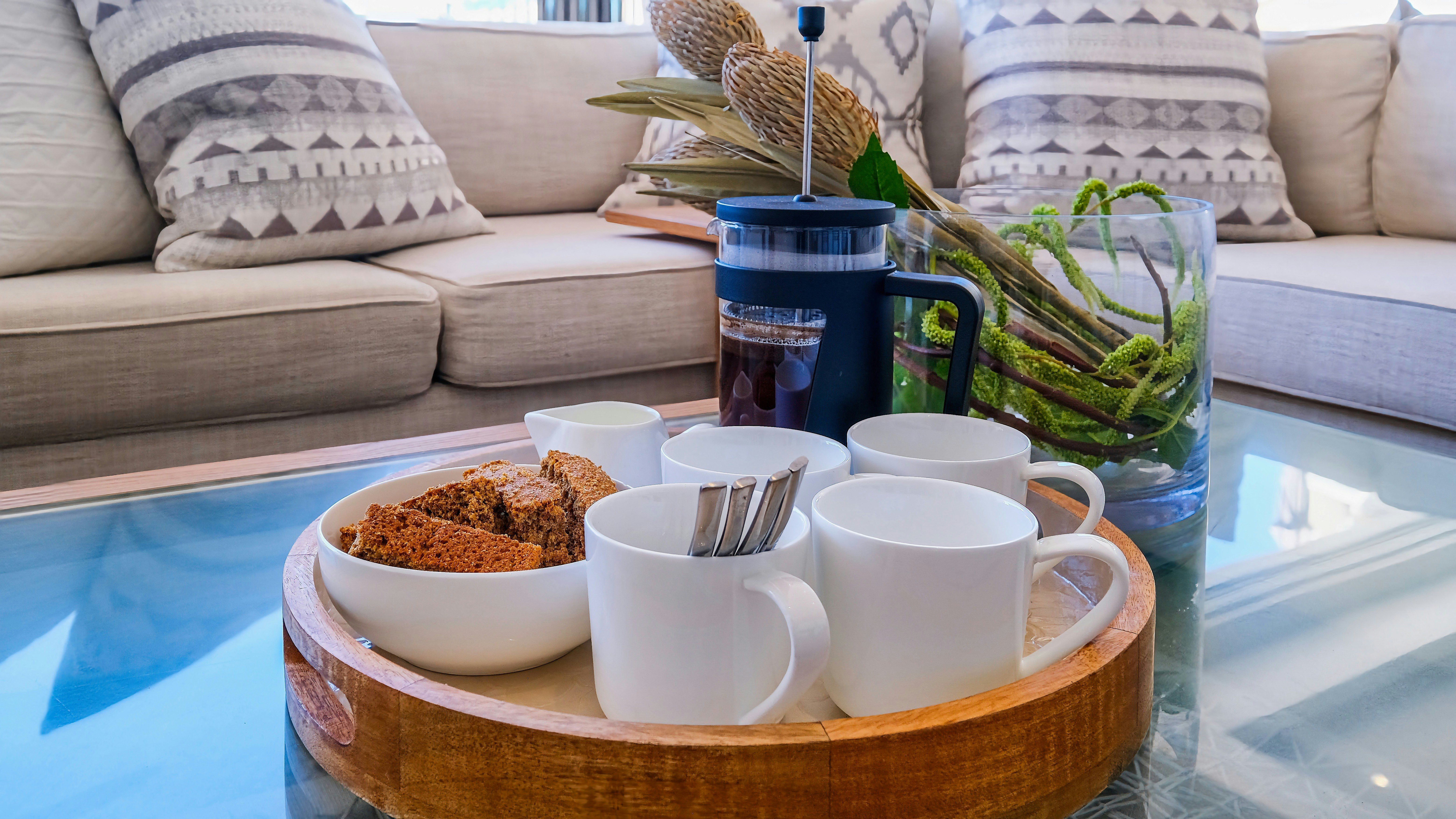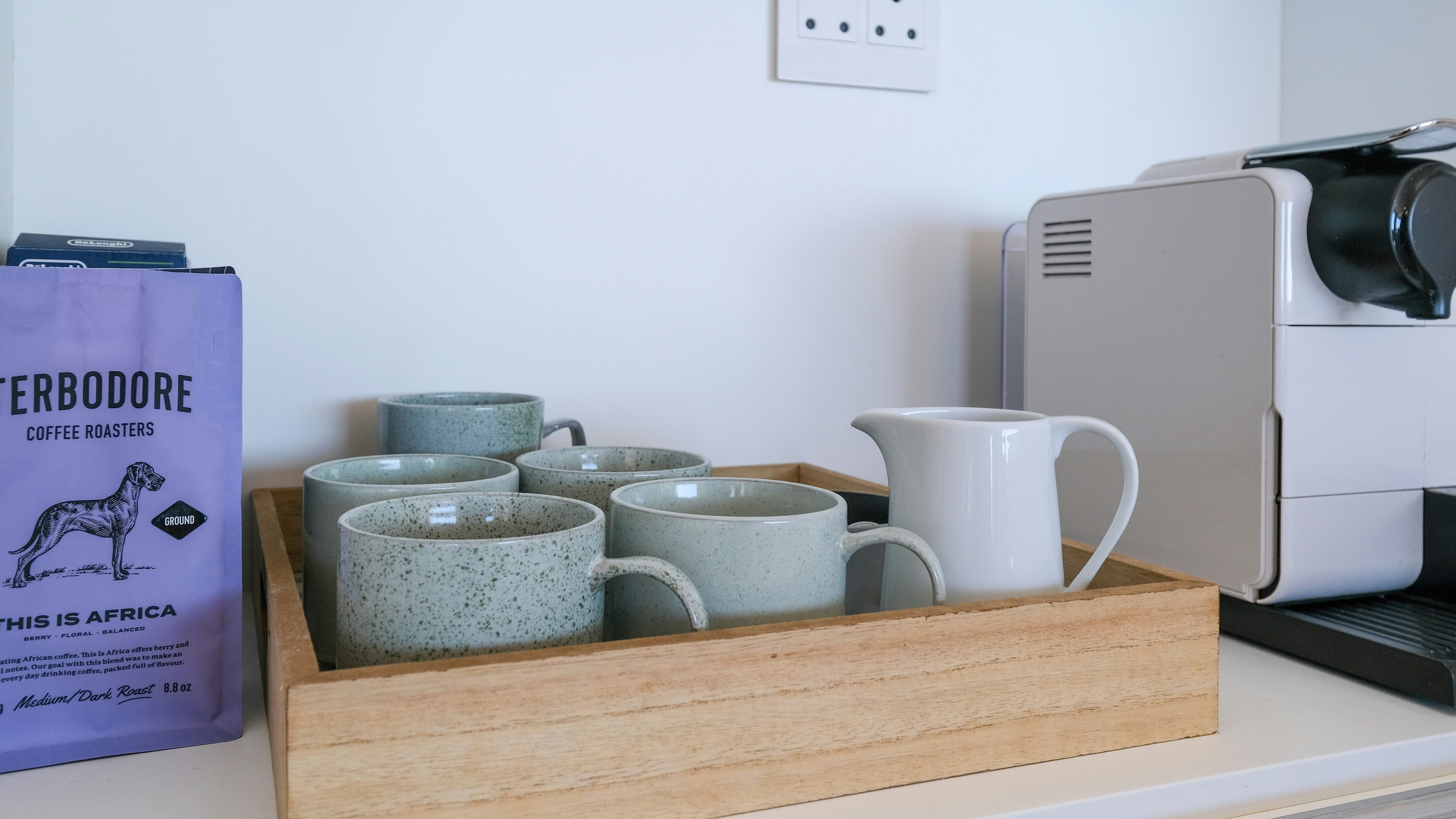 Die kombuis is met 'n gasstoof, oond, konveksie-mikrogolf, ketel, broodrooster, eetgerei, breekware, 'n yskas-vrieskas, skottelgoedwasser en 'n toonbank met stoele toegerus. Die sitarea langsaan het sitplek en 'n binnebraai. Die tweede sitarea het 'n TV met DStv. Gratis WiFi is beskikbaar.
