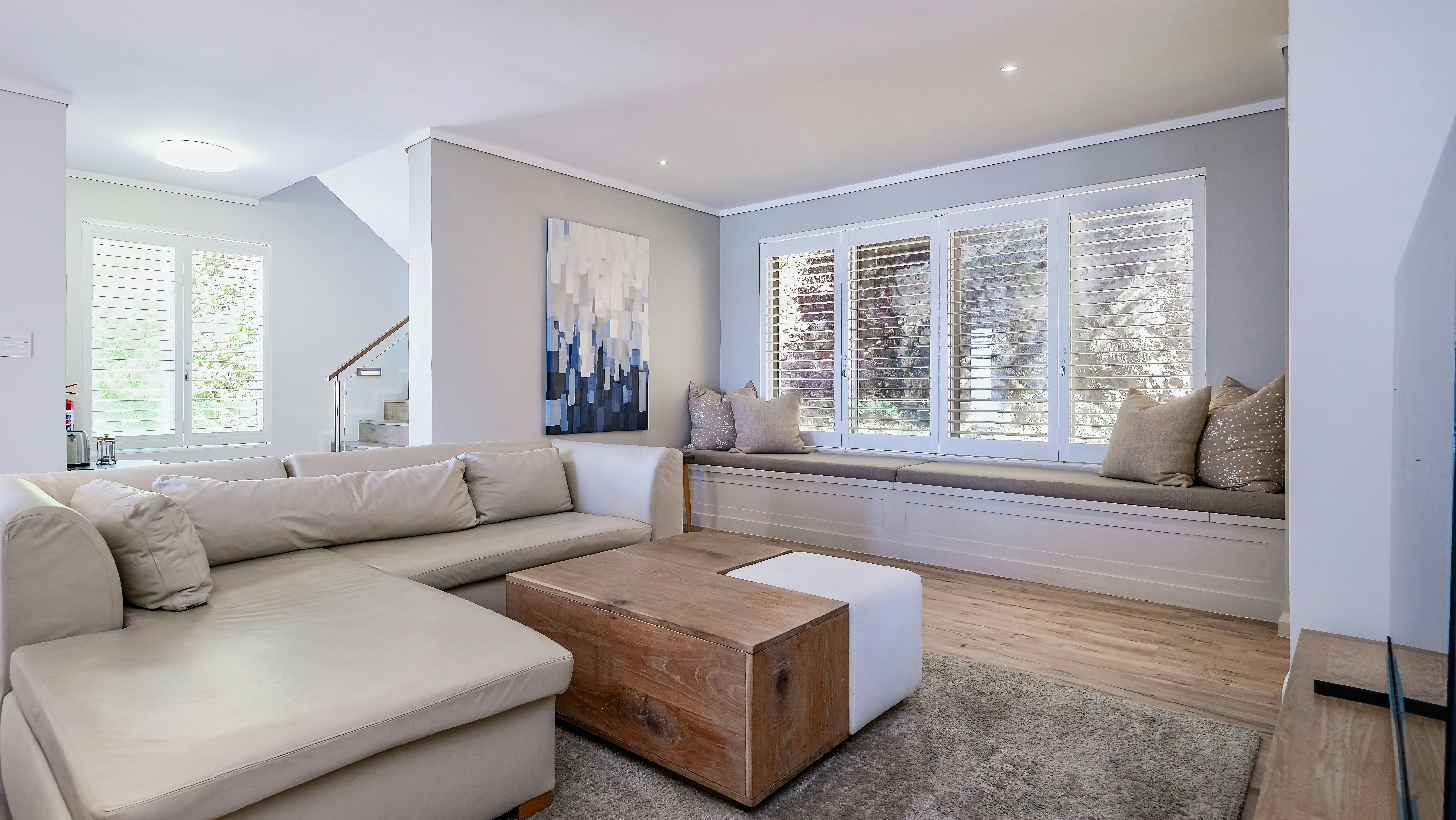 Hierdie huis bied slaapplek aan 9 gaste en beskik oor 4 slaapkamers en 3 badkamers. Die eerste slaapkamer het 'n koninggrootte-bed en 'n en suite-badkamer met 'n stort. Die tweede slaapkamer het 'n dubbelbed en die derde slaapkamer het 2 enkelbeddens. Gaste in hierdie 2 kamers deel 'n badkamer met 'n bad en stort. Die vierde slaapkamer het 'n dubbelbed, enkelbed en 'n en suite-badkamer met 'n stort. Linne en badhanddoeke word voorsien.