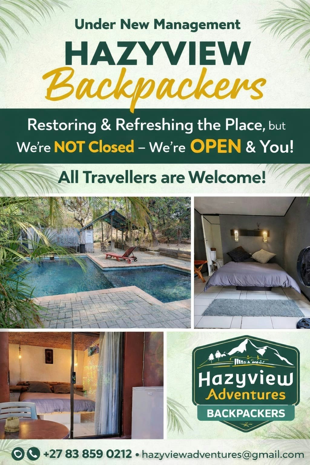 Hazyview Adventure Backpackers is the perfect gateway to the Kruger National Park and the wonders of the Lowveld. Conveniently situated just 17 km from the world-renowned Kruger National Park, it is a short trip to the Big Five territory, and the perfect vacation base or overnight stopover for exploring the scenically breathtaking Panorama route and surrounds.