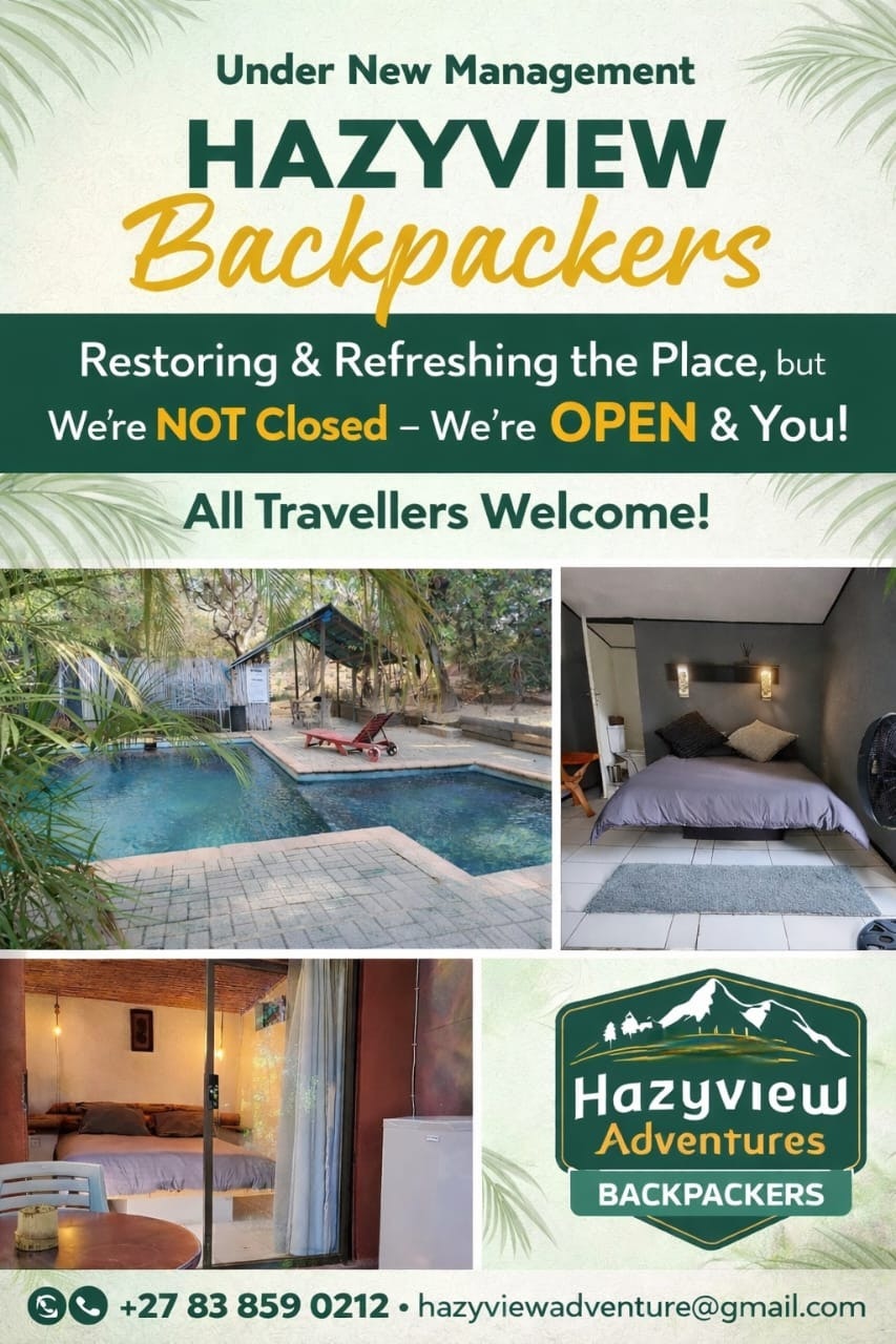 Hazyview Adventure Backpackers is the perfect gateway to the Kruger National Park and the wonders of the Lowveld. Conveniently situated just 17 km from the world-renowned Kruger National Park, it is a short trip to the Big Five territory, and the perfect vacation base or overnight stopover for exploring the scenically breathtaking Panorama route and surrounds.