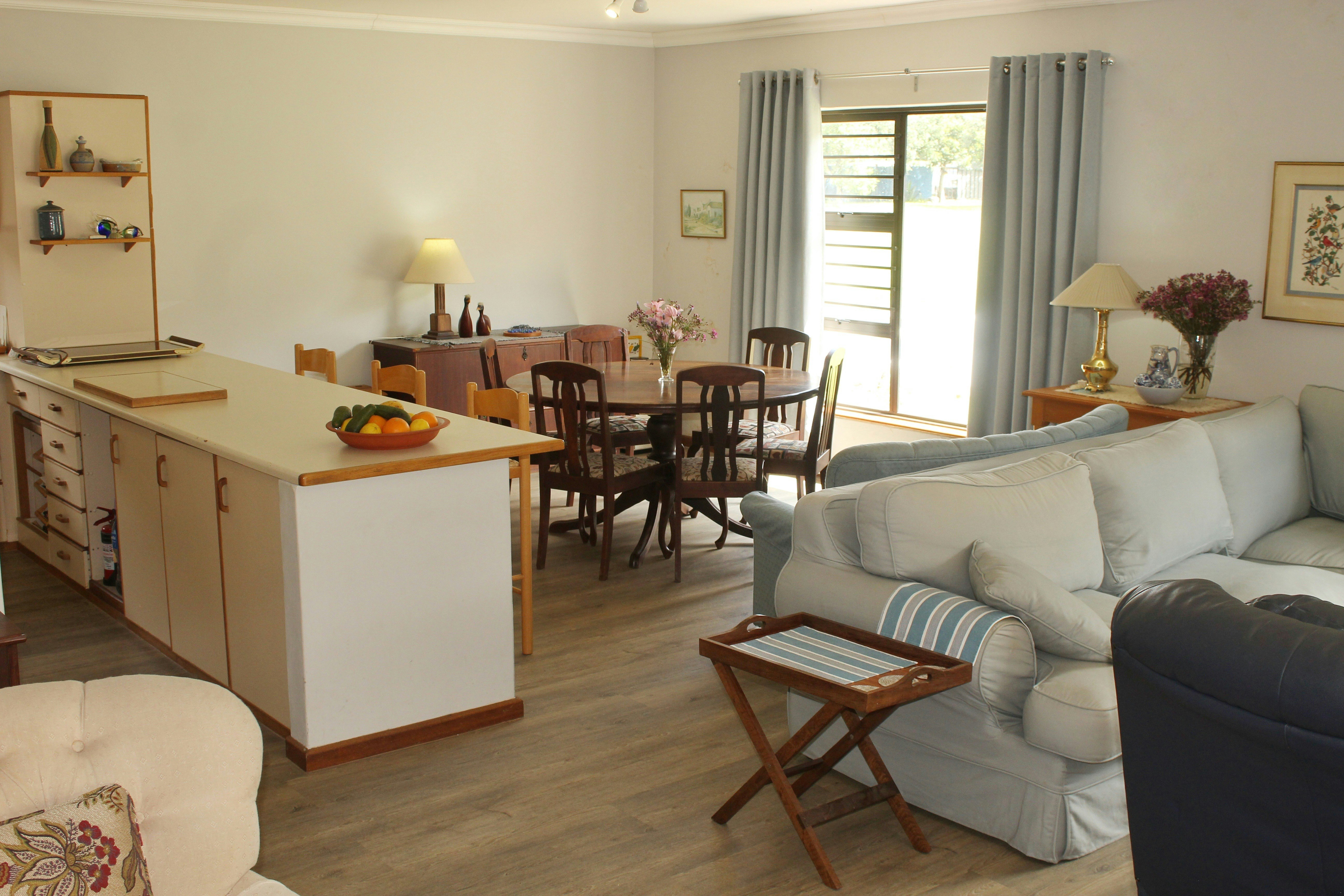 "Die kombuis is volledig toegerus vir selfsorg en sluit in 'n wasmasjien, skottelgoedwasser, tuimeldroër, stoof, oond, 2 yskas-vrieskaste, mikrogolfoond, lugbraaier, sowel as eetgerei en breekware. Die eetarea bied sitplek vir 8 mense, terwyl die sitkamer 'n gemaklike sitkamerstel en 'n TV met die volle keuse van DStv-kanale het. 'n Omsetter ondersteun die TV en DStv tydens beurtkrag, en daar is herlaaibare ligte in die kamers en leefarea. WiFi is beskikbaar.