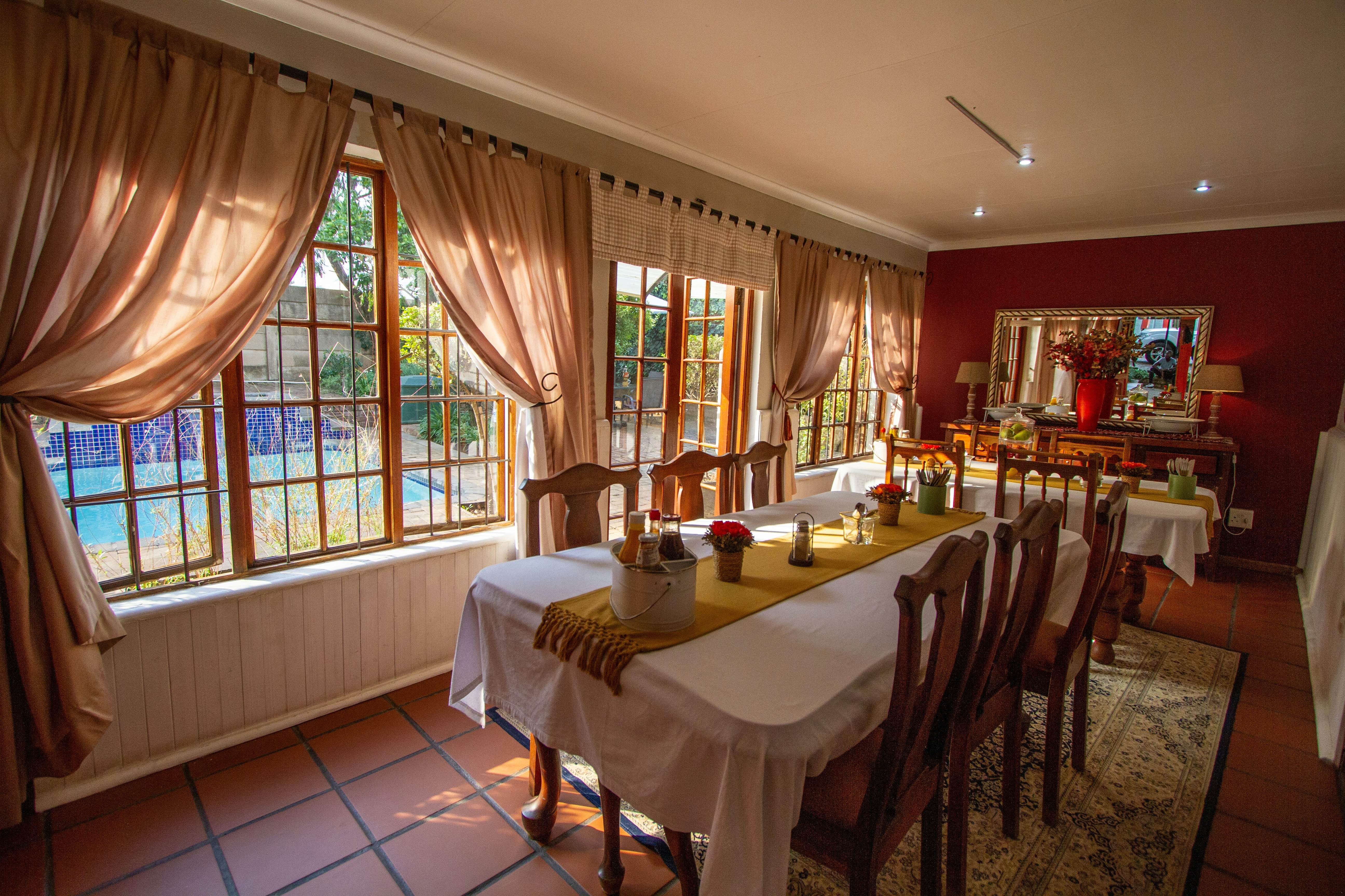 Lovely lush gardens and the service from Macdonald made our stay worth it. Macdonald at reception is one of the most amazing, friendly and helpful people I have ever met. Full marks to him. I would suggest the following things: 1. Built-in cupboards for more space. 2. The water pressure in the pipes needs a pressure release valve somewhere as the noise from the pipes keeps you awake all night. 3. The rooms are overpriced for what you get. 4. Security is a bit of a concern as we noticed that guests go out the gate in vdwesthuizen street and don't wait for the gate to close before they drive off.