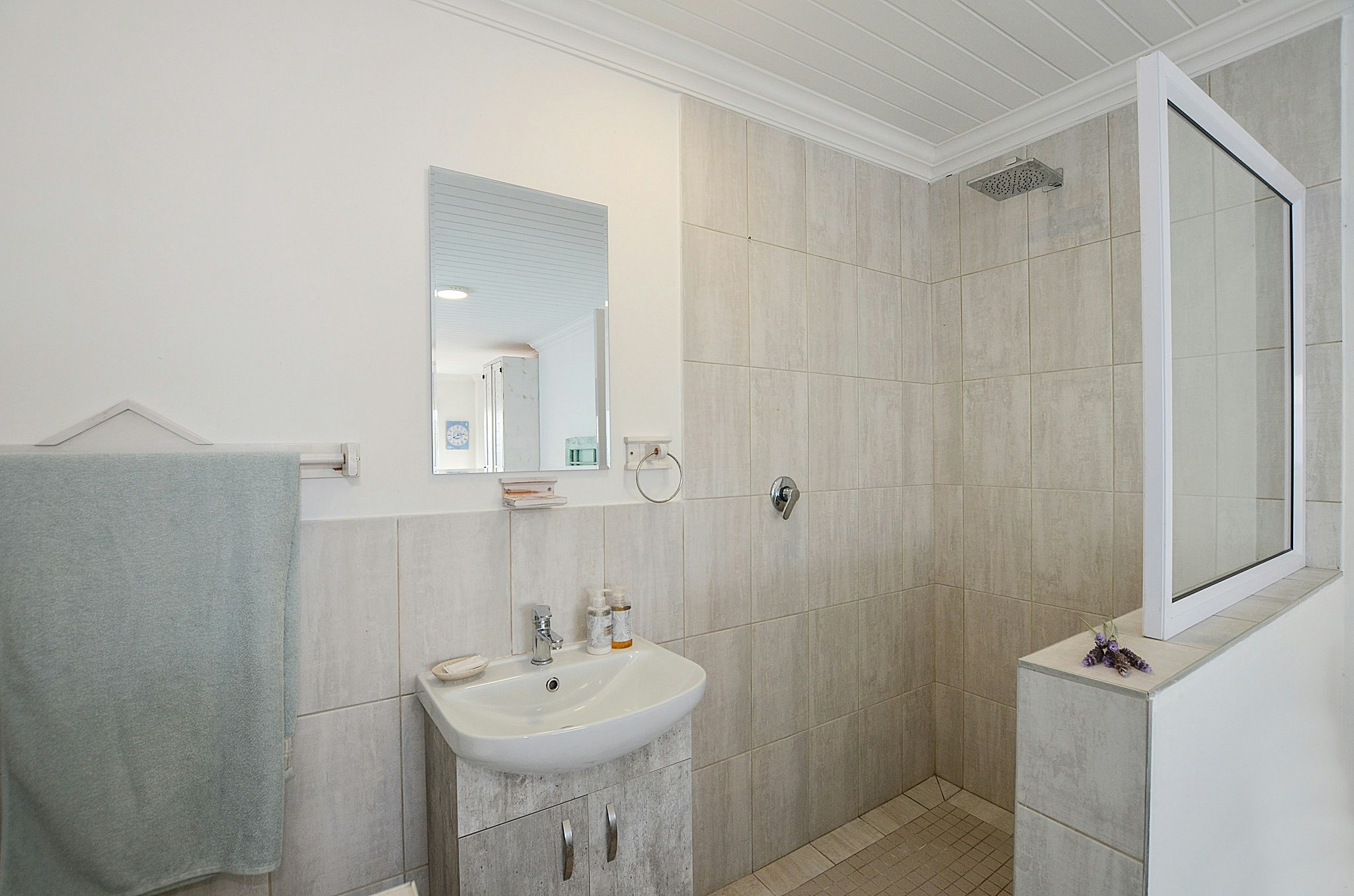 Hemelstoep offers views of the adjacent fynbos and the Atlantic Ocean in the distance. The unit comprises a queen-size bed with an electric blanket. The en-suite open-plan bathroom is fitted with a shower, toilet, and a small kitchenette with a coffee maker, microwave, fridge-freezer, kettle, toaster, and braai utensils. The apartment also offers Wi-Fi and a TV. There is secure parking available on the premises.