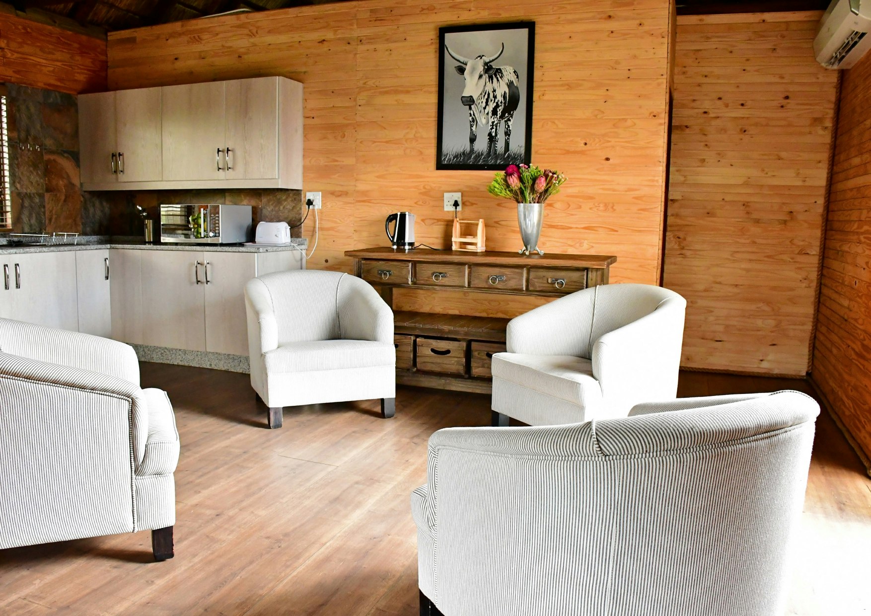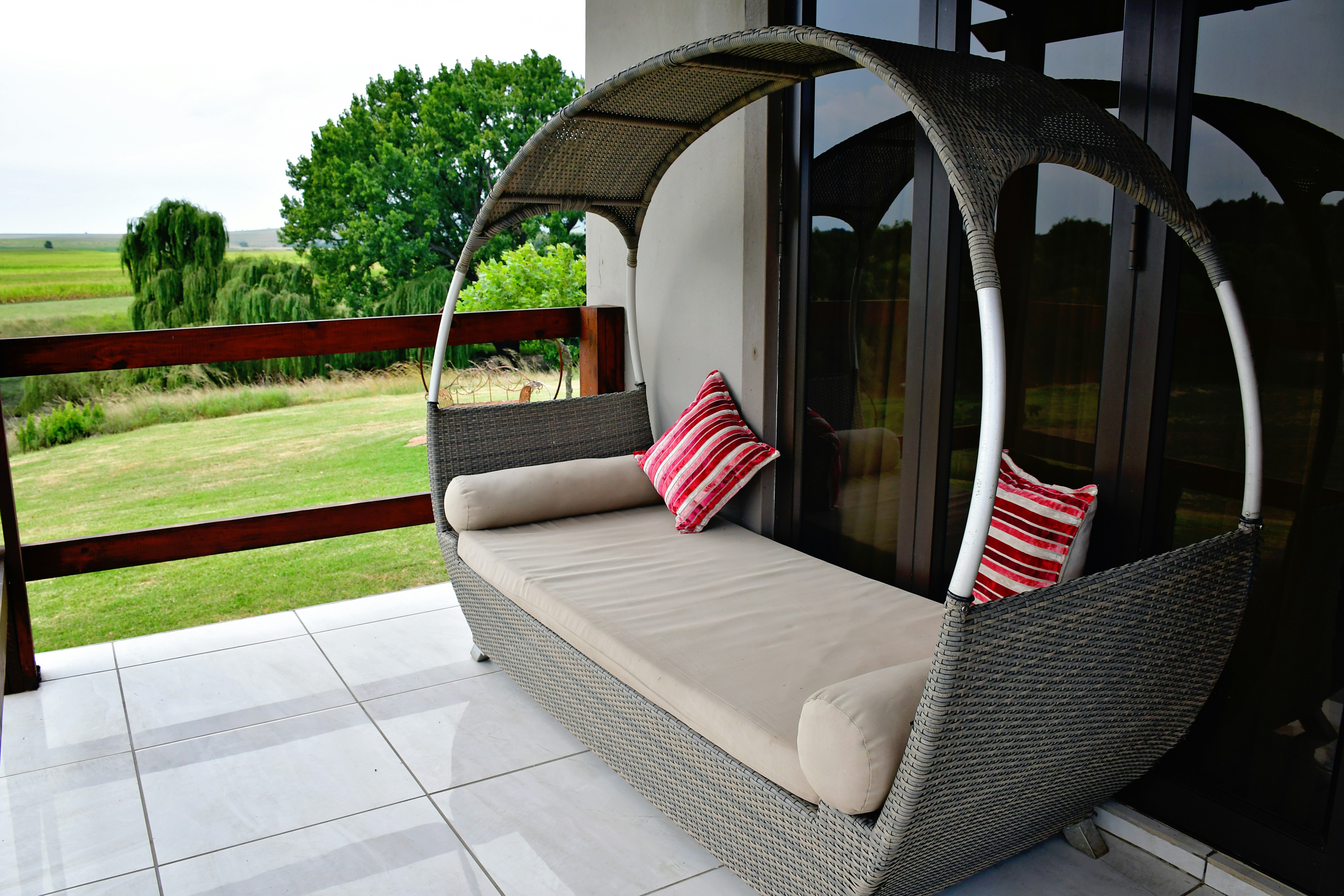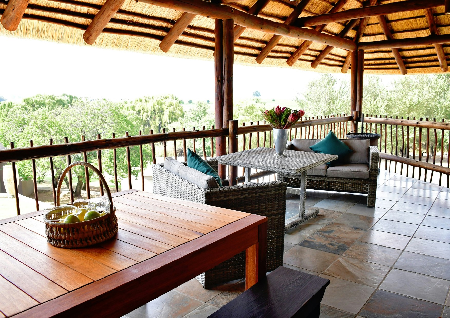 Henbase Lodge is an exclusive lodge offering comfortable overnight accommodation on Vaalkop farm located approximately 18 km from Morgenzon. The lodge boasts magnificent views of the river, mountains, and leafy surroundings, and it is ideal for the whole family or a group of friends.