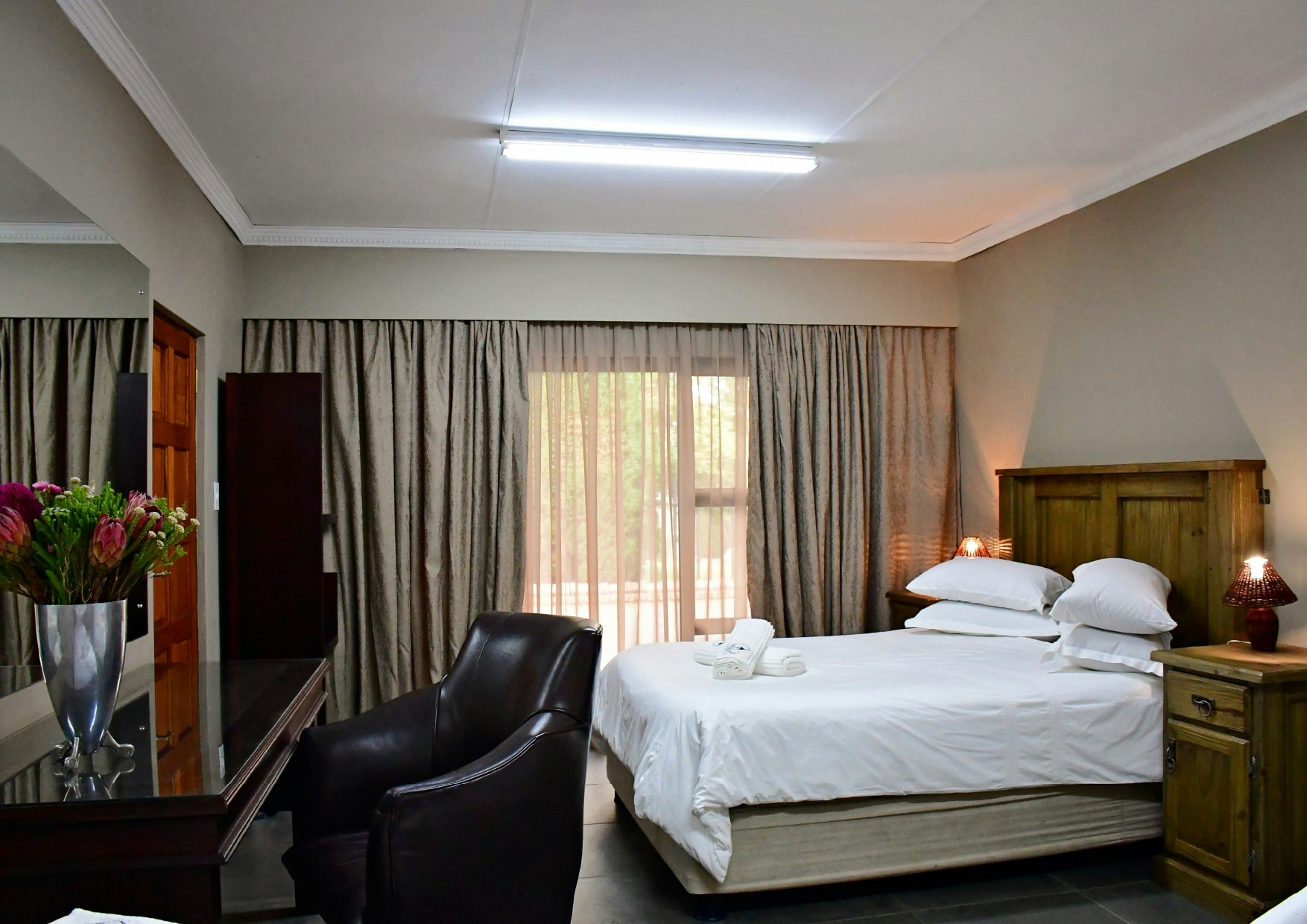 The lodge also boasts an on-site restaurant and a bar. With your vehicle securely parked, a peaceful night’s rest is at hand in Morgenzon.