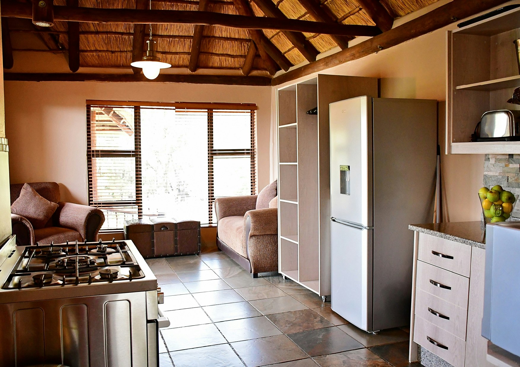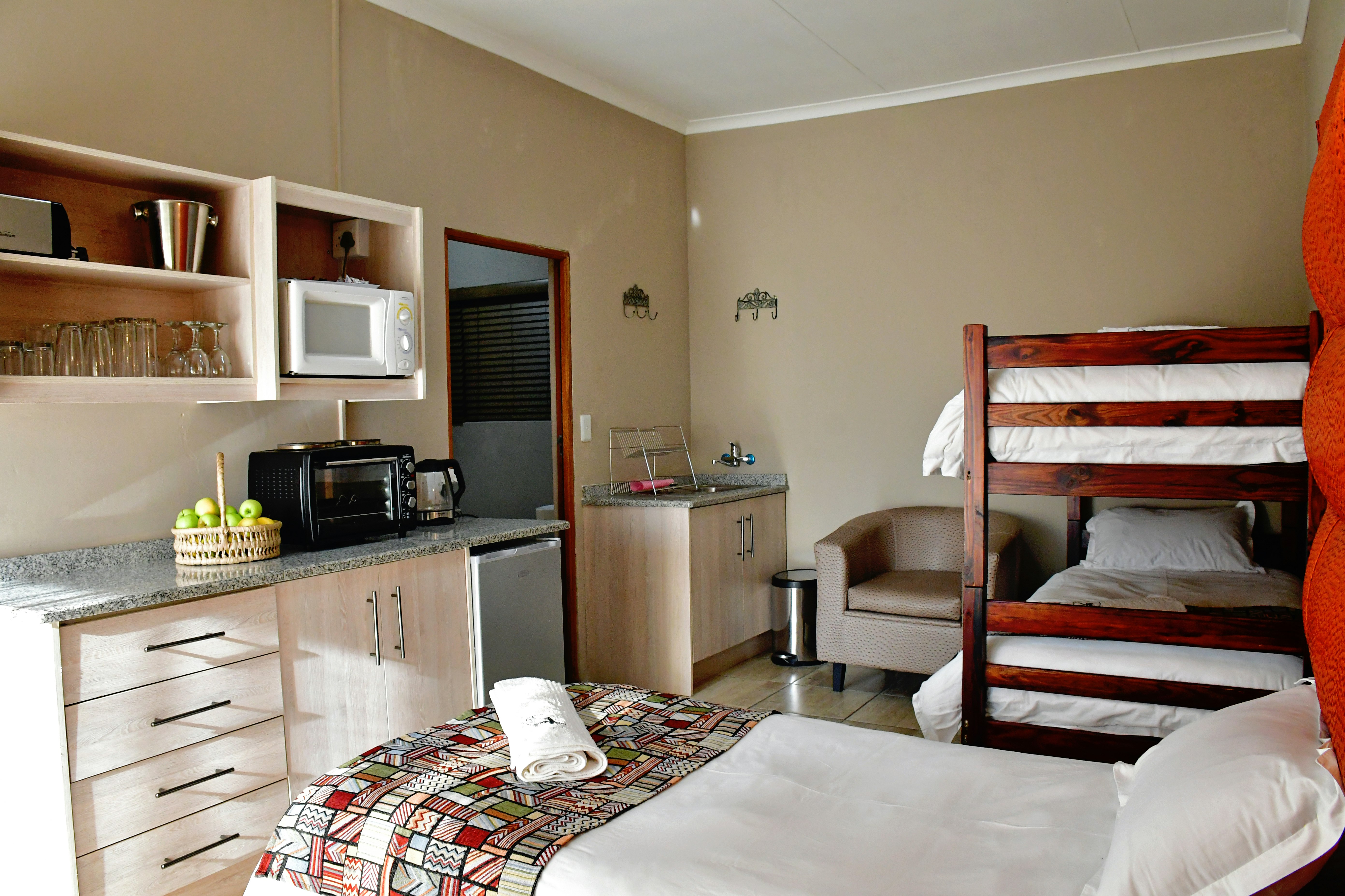The lodge provides self-catering, room-only, or camping accommodations to guests. Each self-catering unit has its own private entrance, an en-suite bathroom fitted with a bath or a shower, and patios with beautiful river views. The room-only accommodations include comfortable beds, a fridge-freezer, tea- and coffee-making facilities, and 2 comfortable couches. The campsites have communal bathrooms and are located on the river's edge in leafy surroundings.
