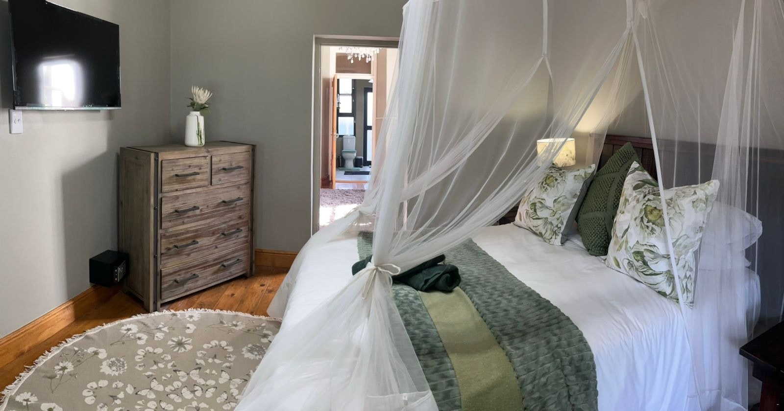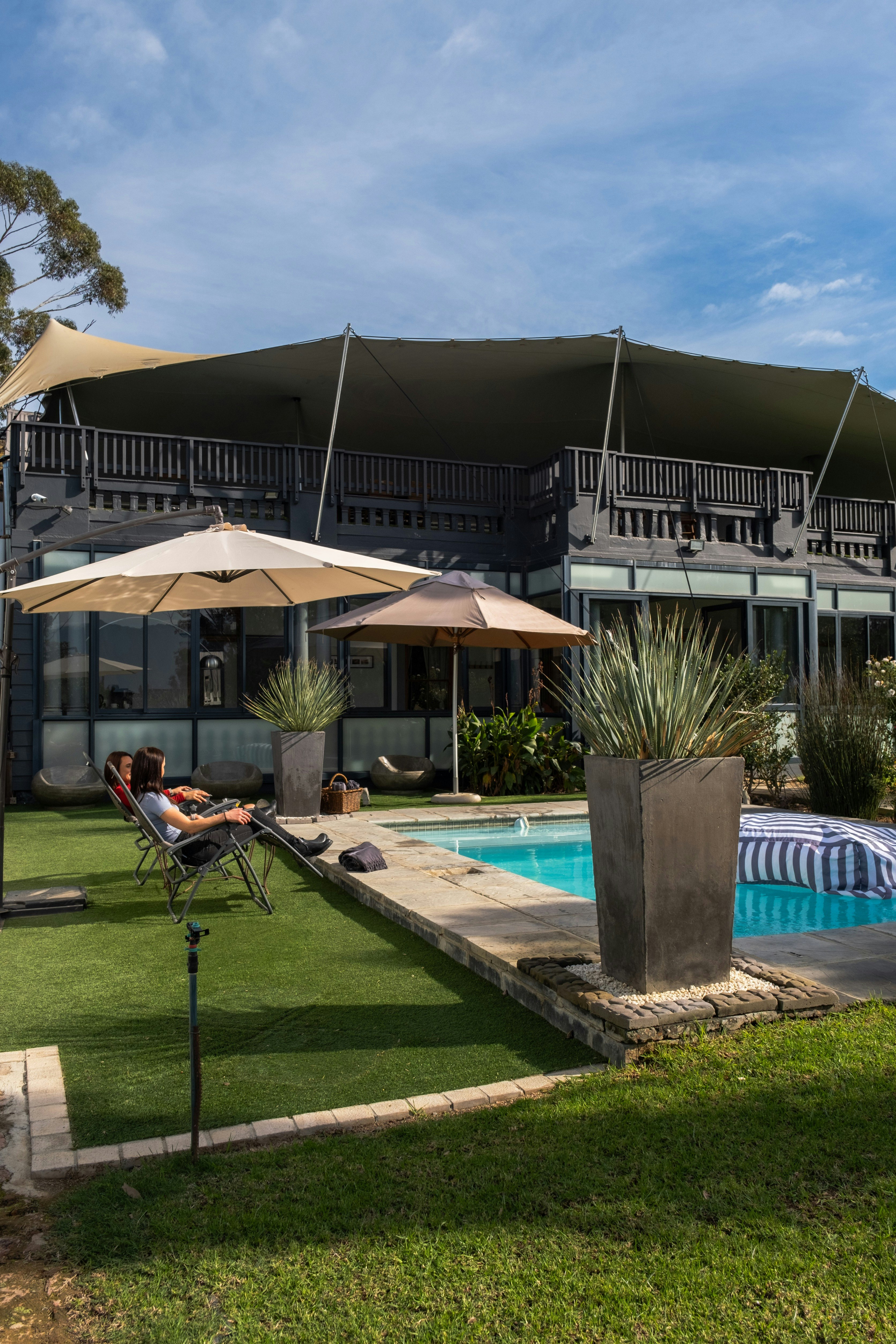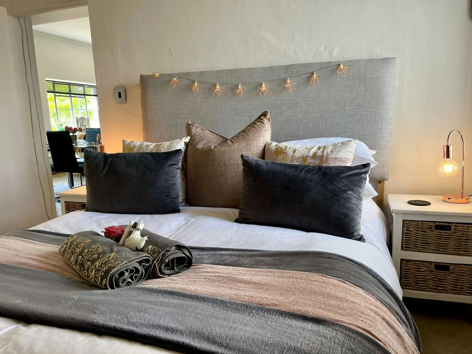 The guesthouse has 3 rooms, each with a private entrance. All rooms include comfortable beds, private bathrooms, linen, bath towels, tea- and coffee-making facilities, bar fridges, air conditioning, smart TVs, and free Wi-Fi. Two of the rooms have private courtyards with charcoal braai facilities. The Signature cottage is the only room with a wood-fired hot tub.