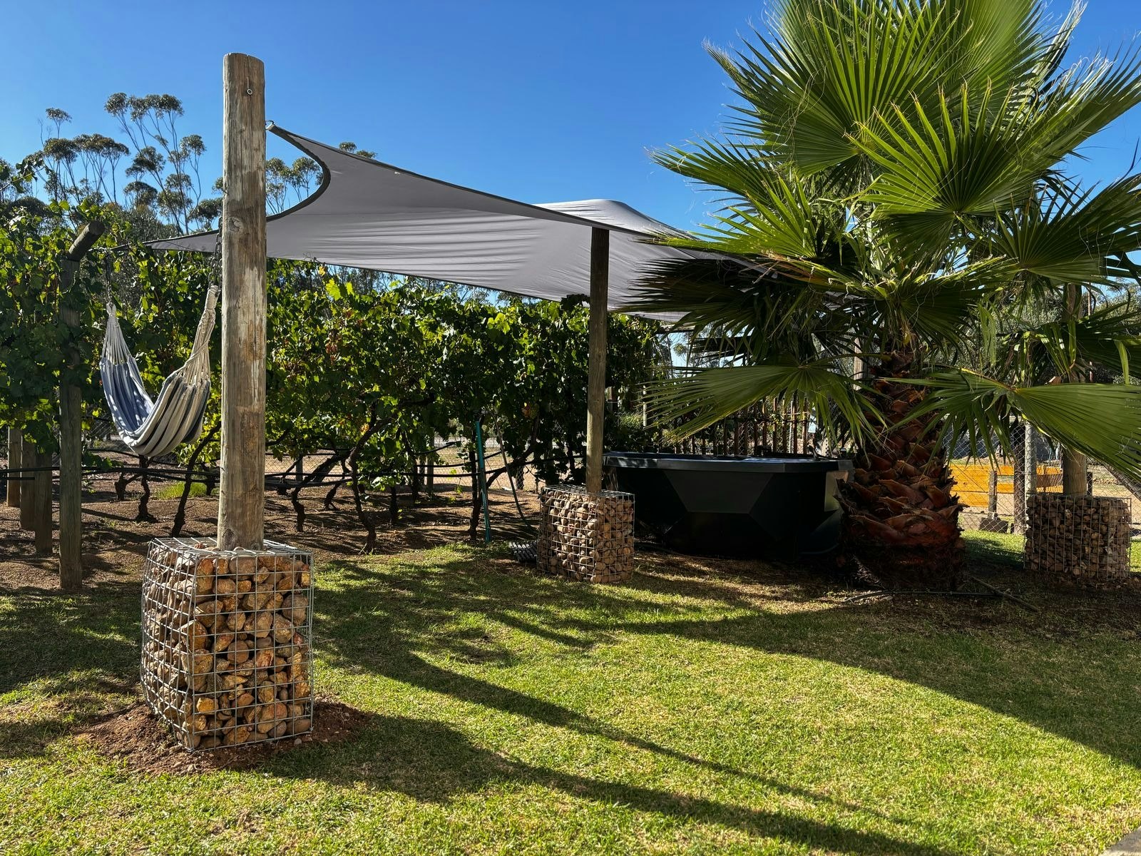 The Signature Cottage is separate from the main guest house and semi-detached to our farm cottage. This is a self-catering unit with a lounge, dining area, open-plan kitchen, one bedroom, and a bathroom with a shower. It includes a wood-fired hot tub and outdoor braai area overlooking a small vineyard.