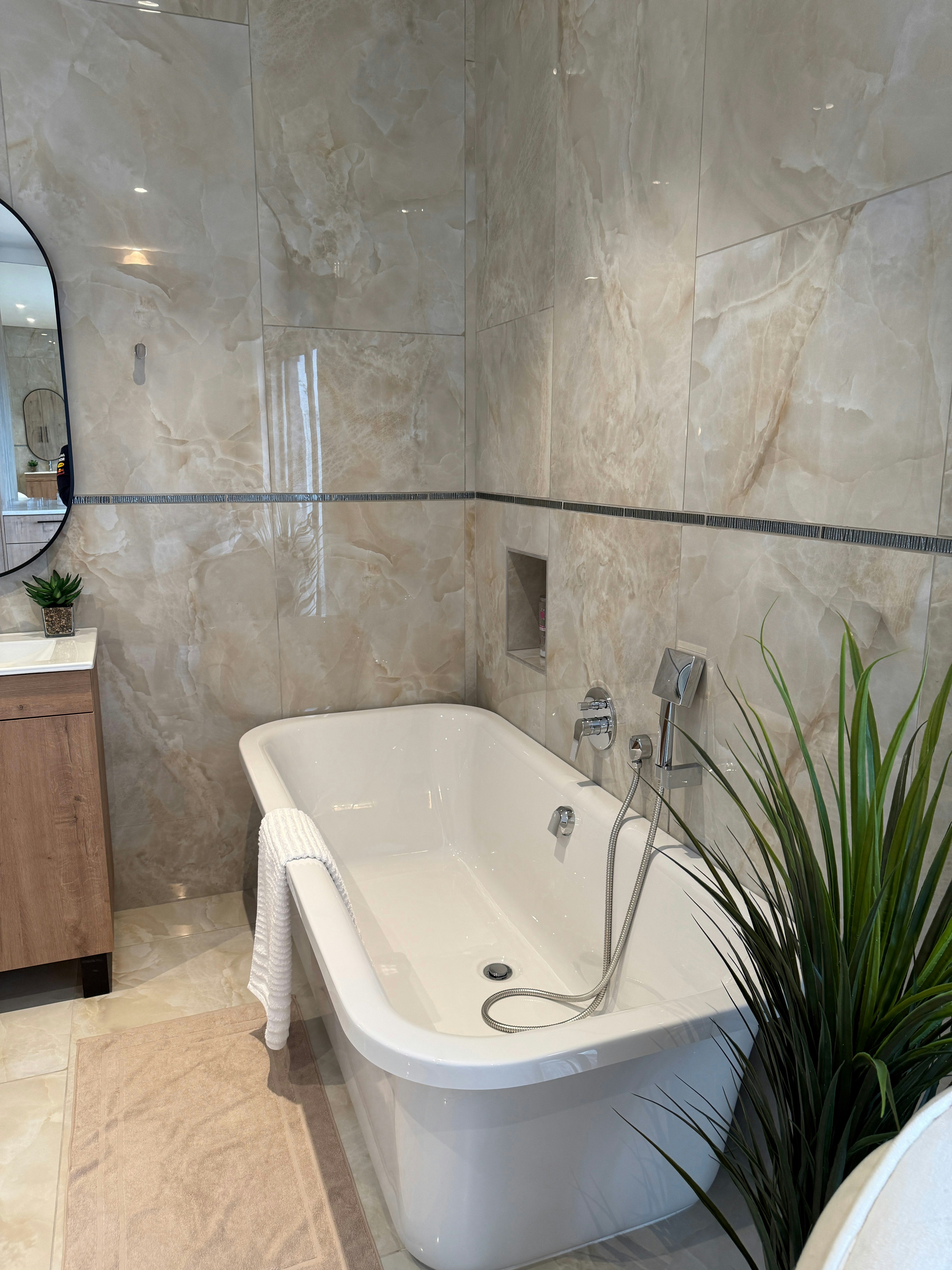 This beautiful property can accommodate up to 6 guests and comprises 3 bedrooms and 4 bathrooms. The main bedroom is furnished with a queen-size bed and features an en-suite bathroom fitted with a bath, shower, and toilet. The remaining 2 bedrooms each have a queen-size bed and en-suite bathrooms with a shower and toilet. An additional guest toilet is accessible from the common area for added convenience. All linen is provided; however, guests are required to bring their own towels.
