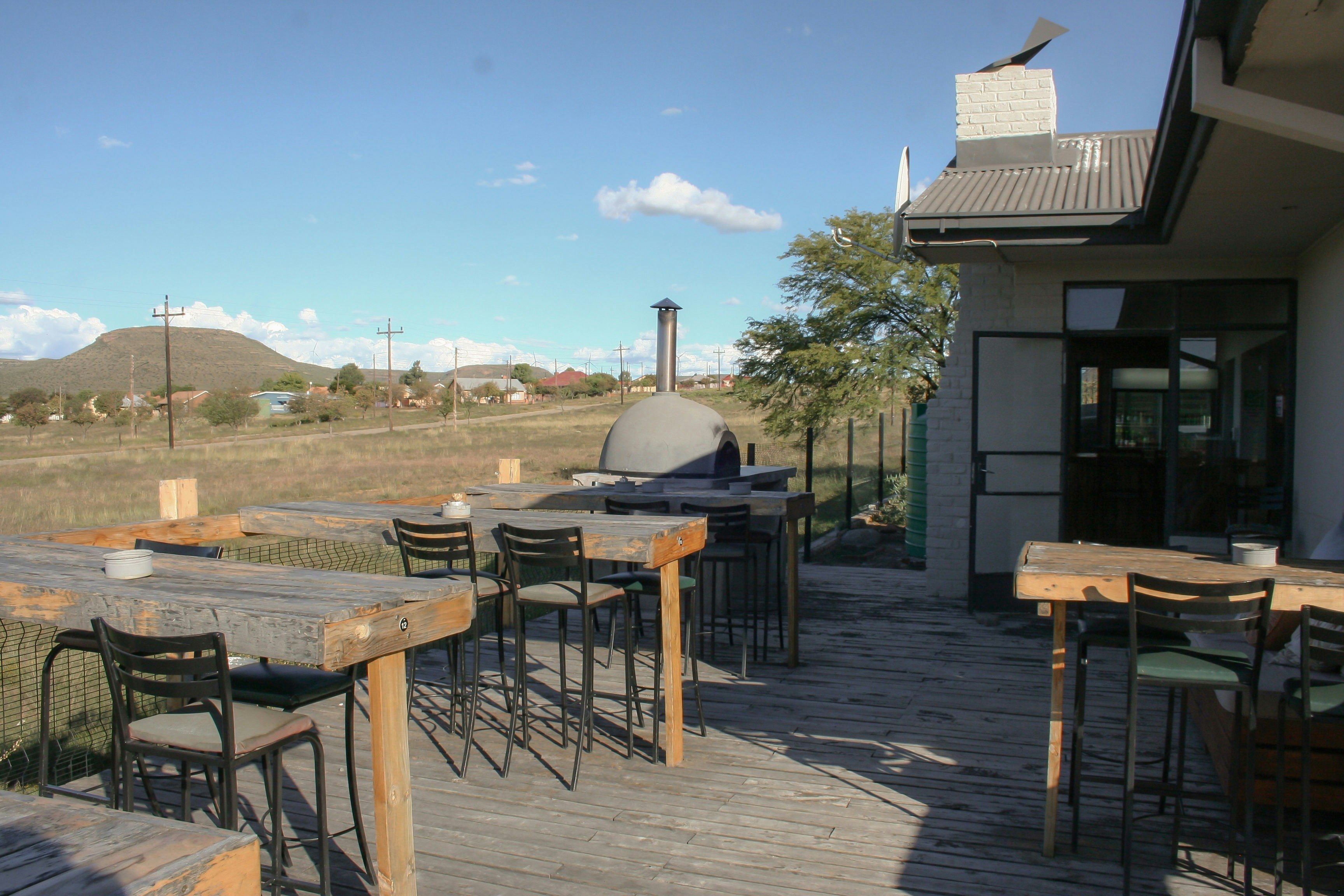 Outside, the property features a beautiful wooden deck with tables and chairs, perfect for dinner or breakfast overlooking the Karoo, as well as a pool table for guests to enjoy during their stay.