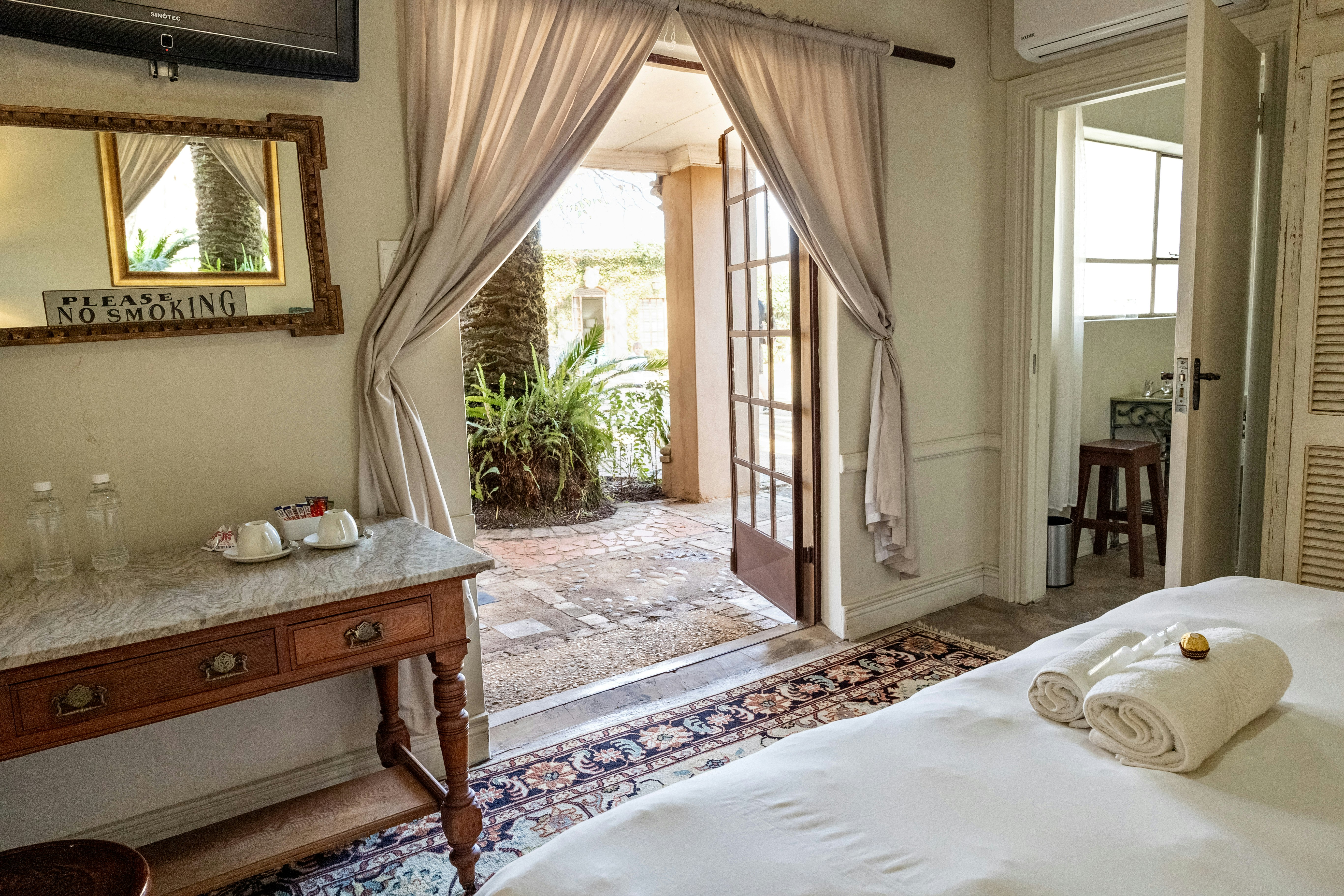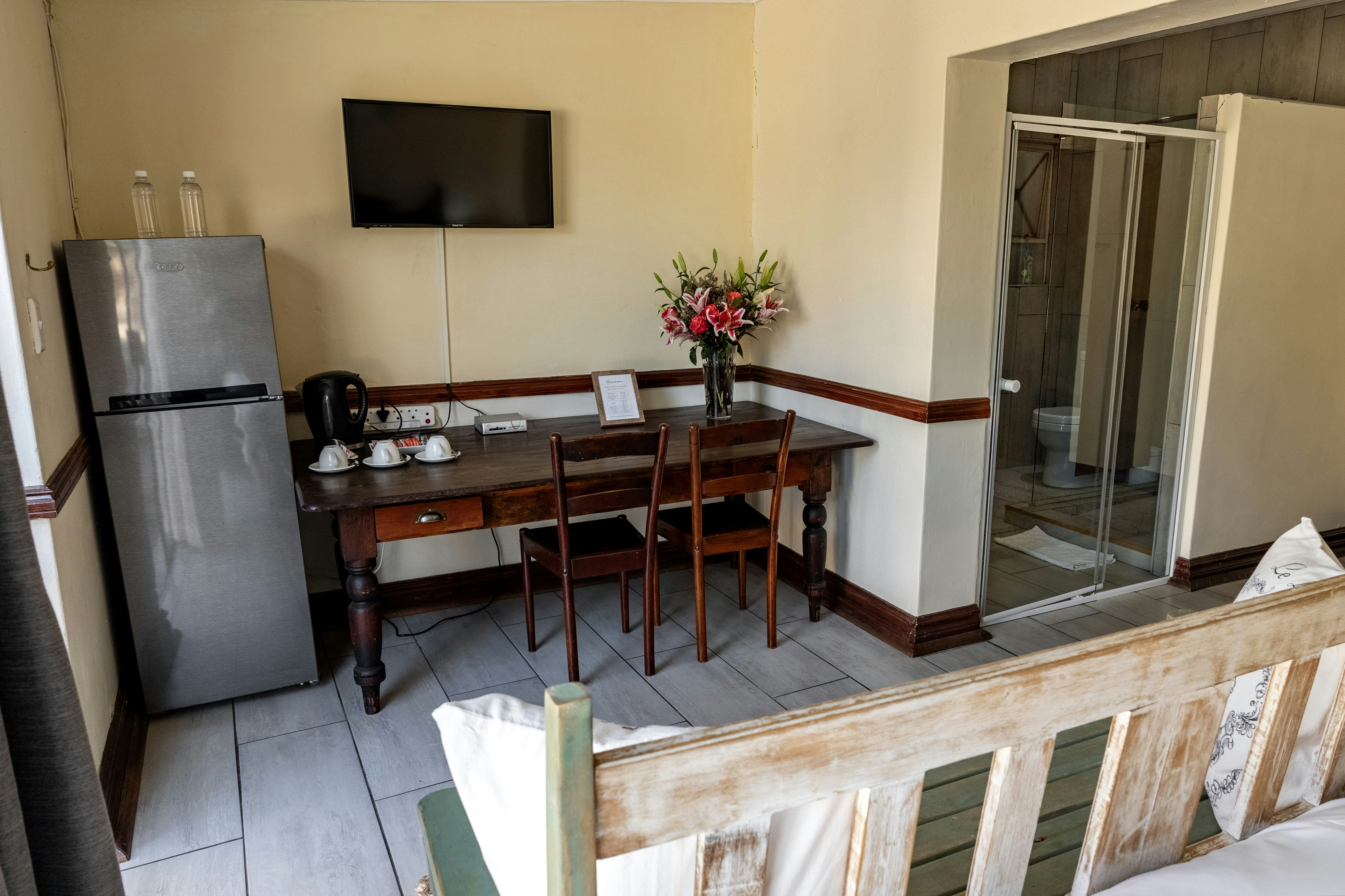 Verblyf word in 8 smaakvol gemeubileerde gastekamers gebied. Elke kamer het ’n en suite-badkamer en beskik oor tee- en koffiemaakgeriewe en ’n TV met sekere DStv-kanale. Gaste kan voor die kaggel in die gemeenskaplike area ontspan, sport of ’n fliek kyk terwyl hulle ’n drankie by die kontantkroeg geniet, of langs die swembad in die son baai in ons rustige tuin.