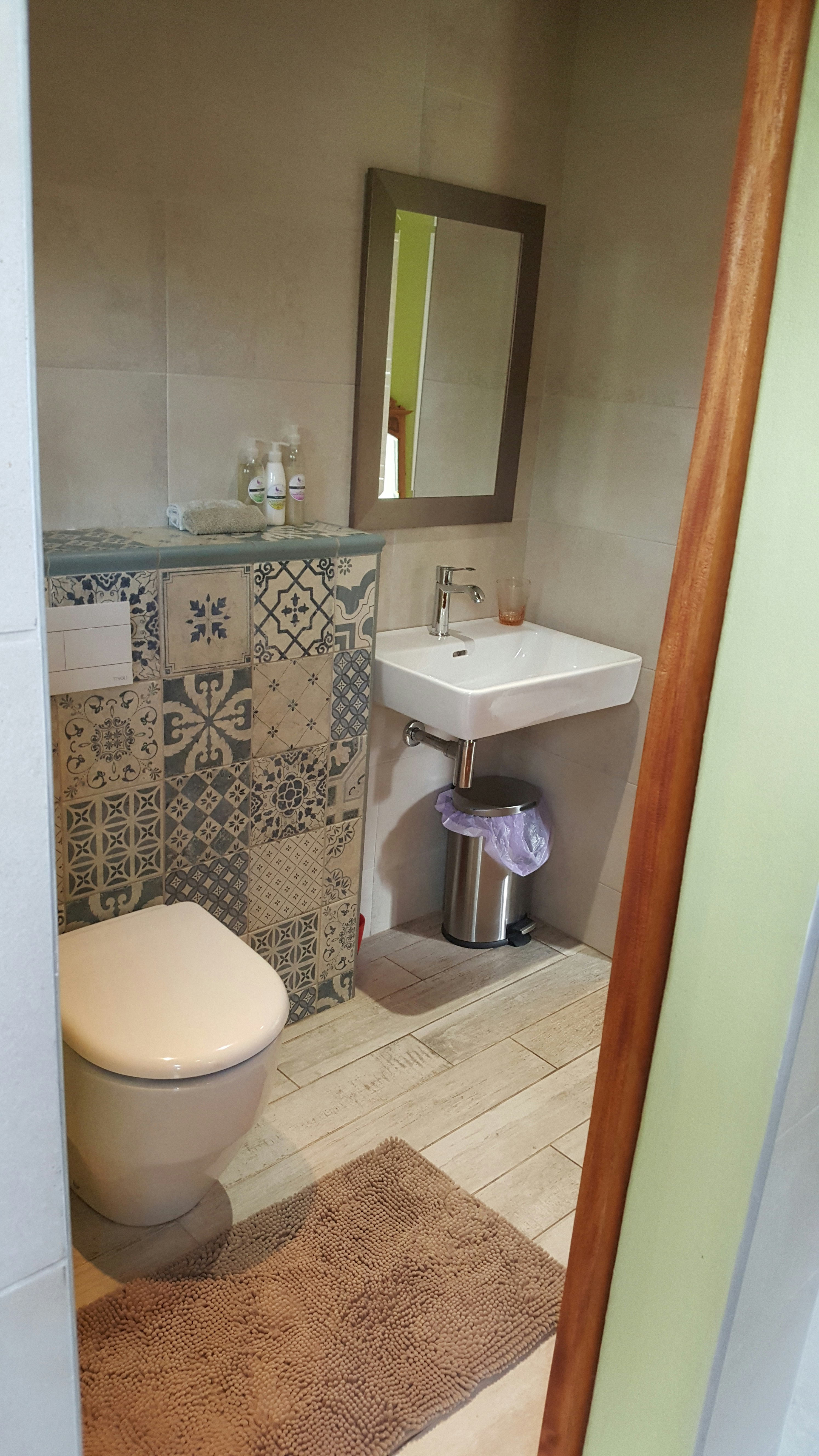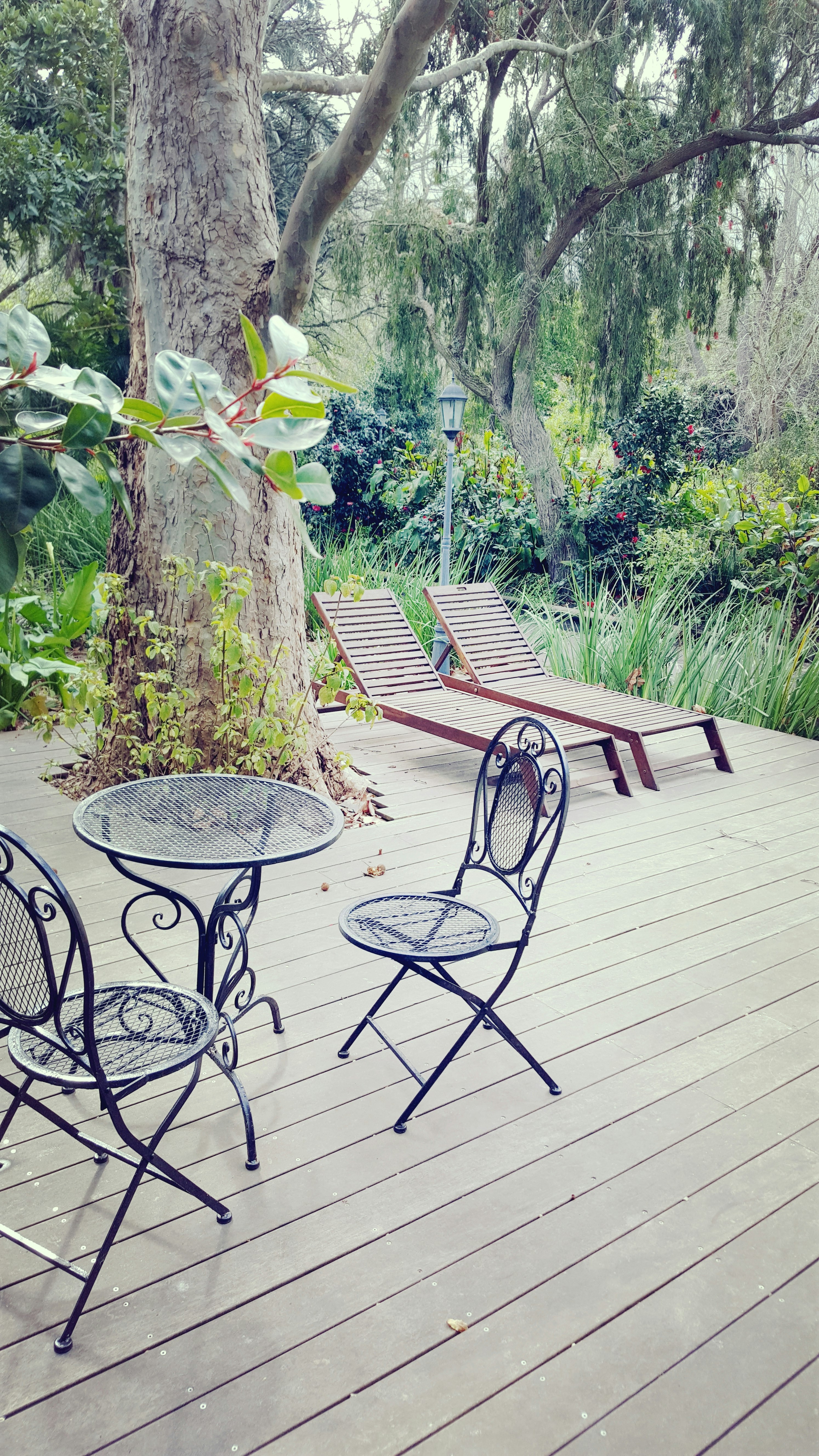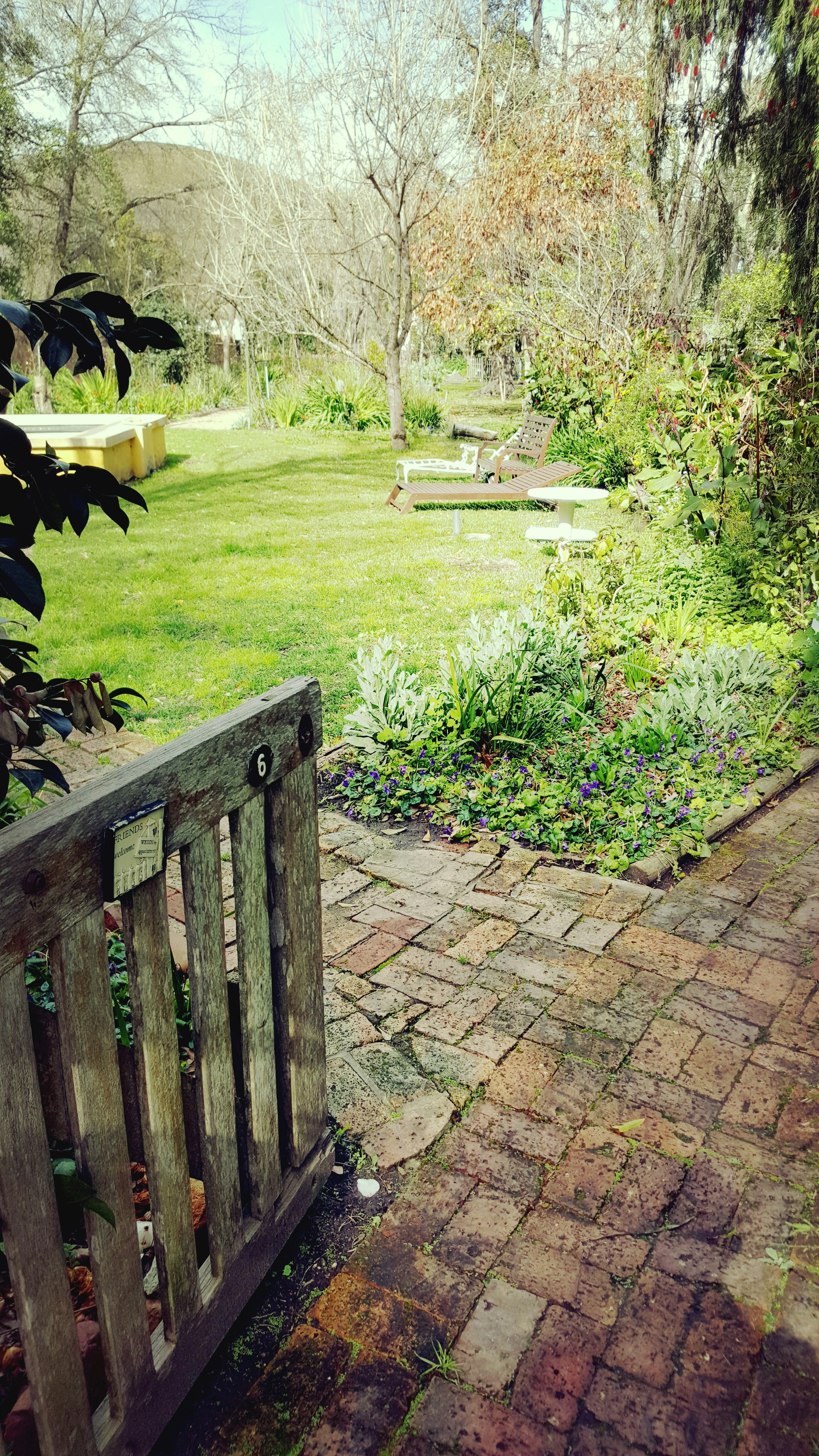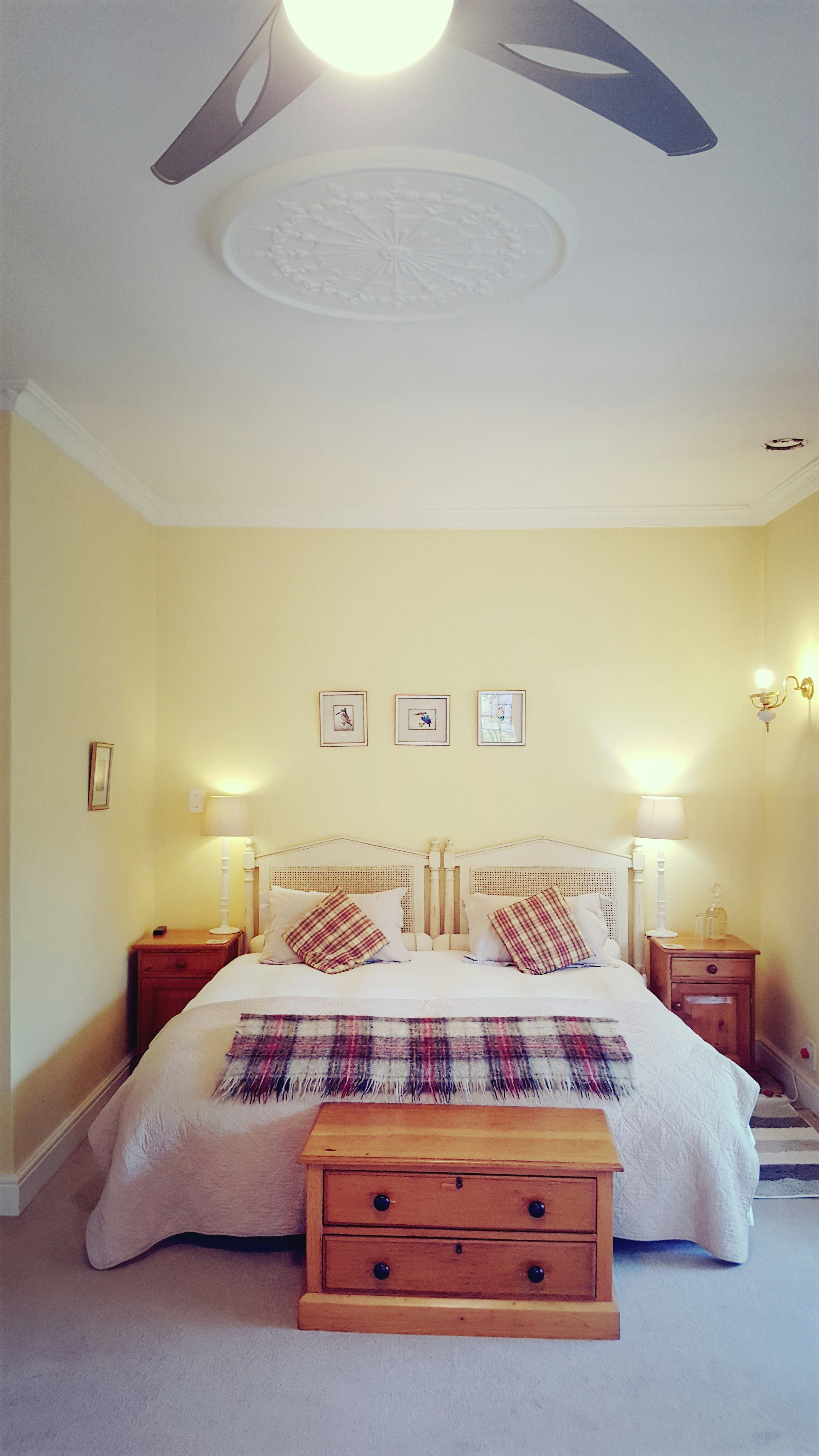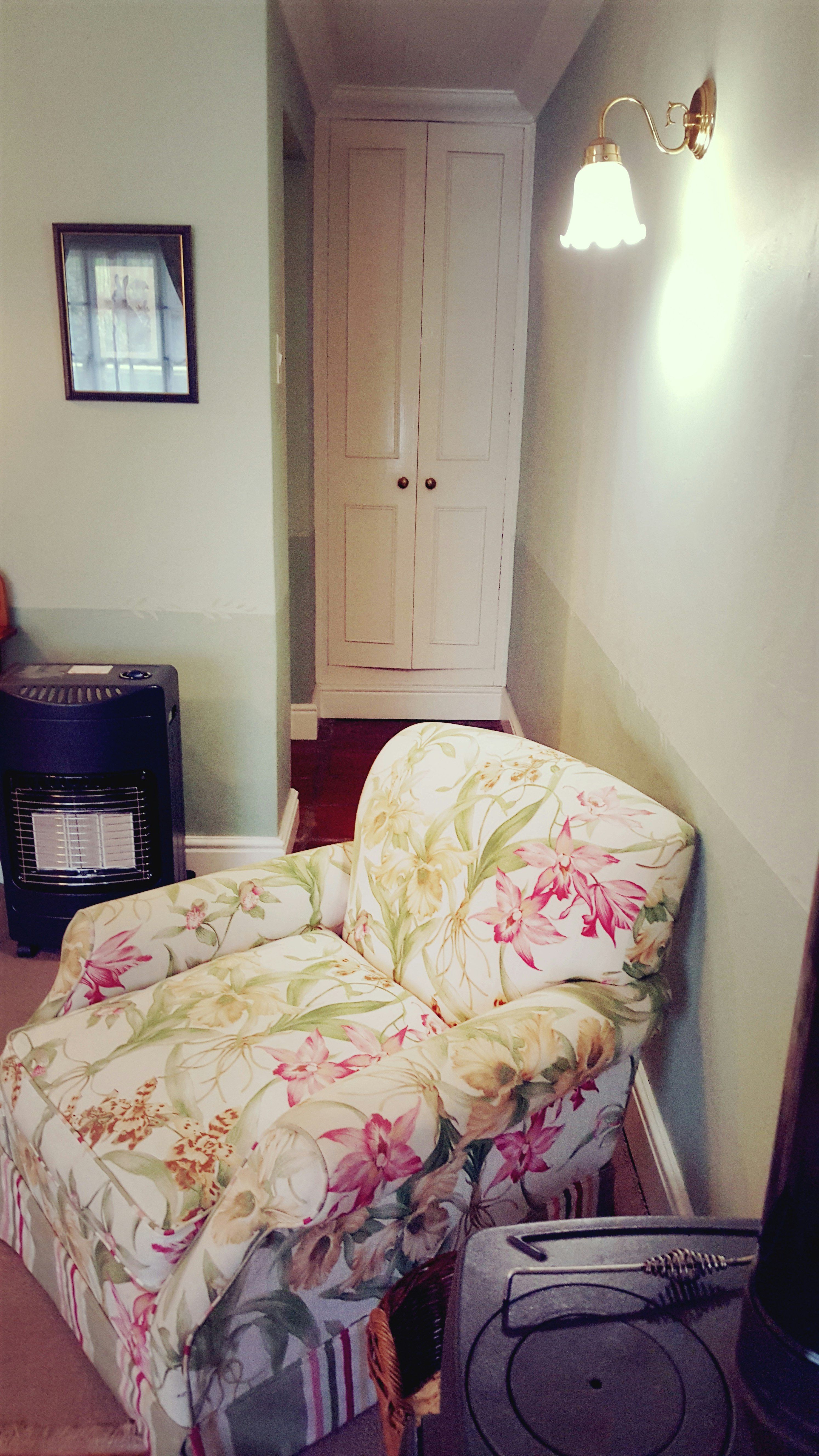 Lily is a large room that contains an extra-length king-size bed that can be converted to 2 single, satellite TV, armchairs, and a bookshelf around fireplace plus a lovely seated bay window area in sitting area. The en-suite bathroom contains a bath only with hand-shower. The room features a wood burning fireplace, heaters and fan, tea- and coffee-making facilities and little fridge in the room. Lily has a private verandah looking out over the woodland and flower gardens.