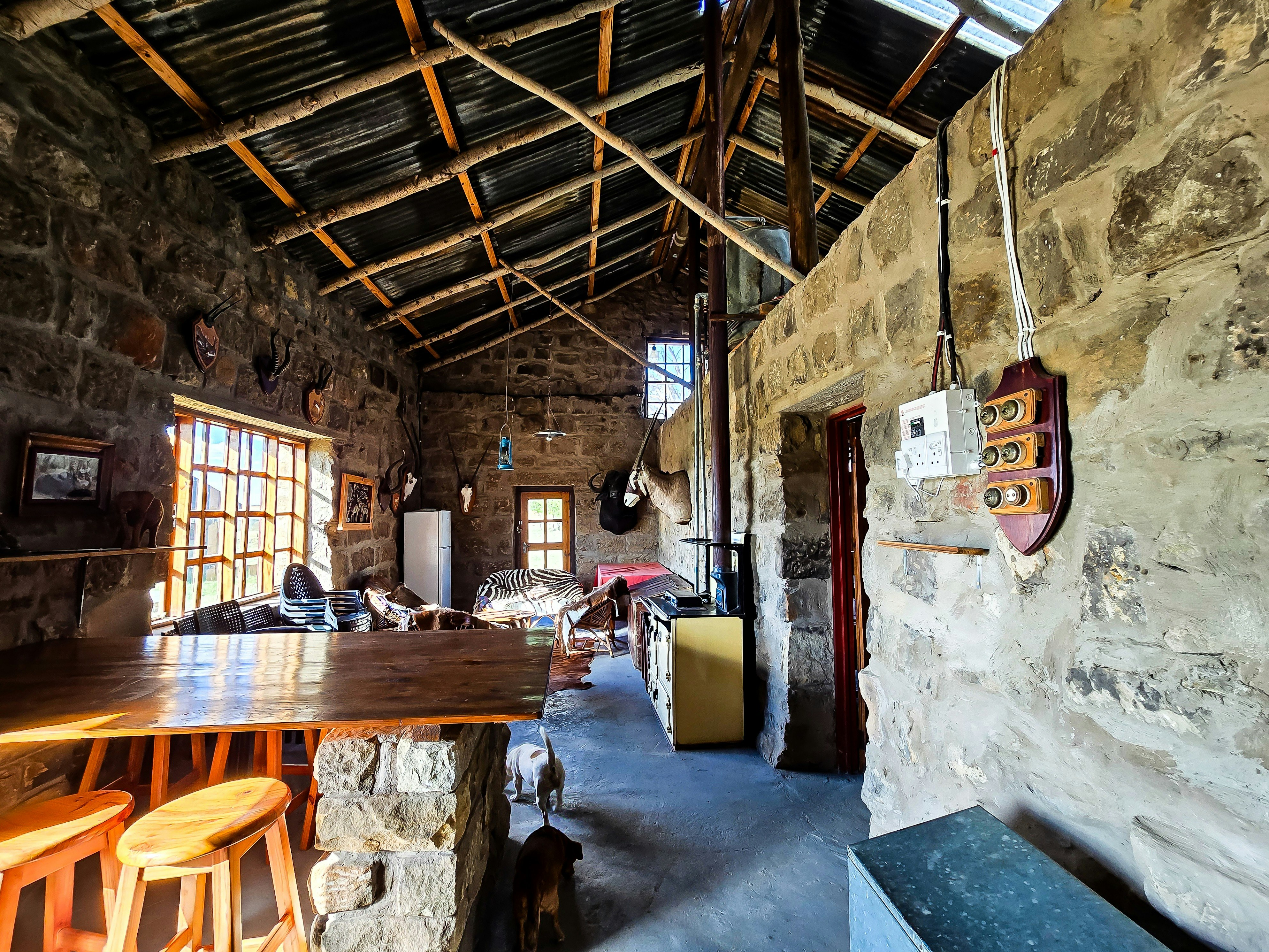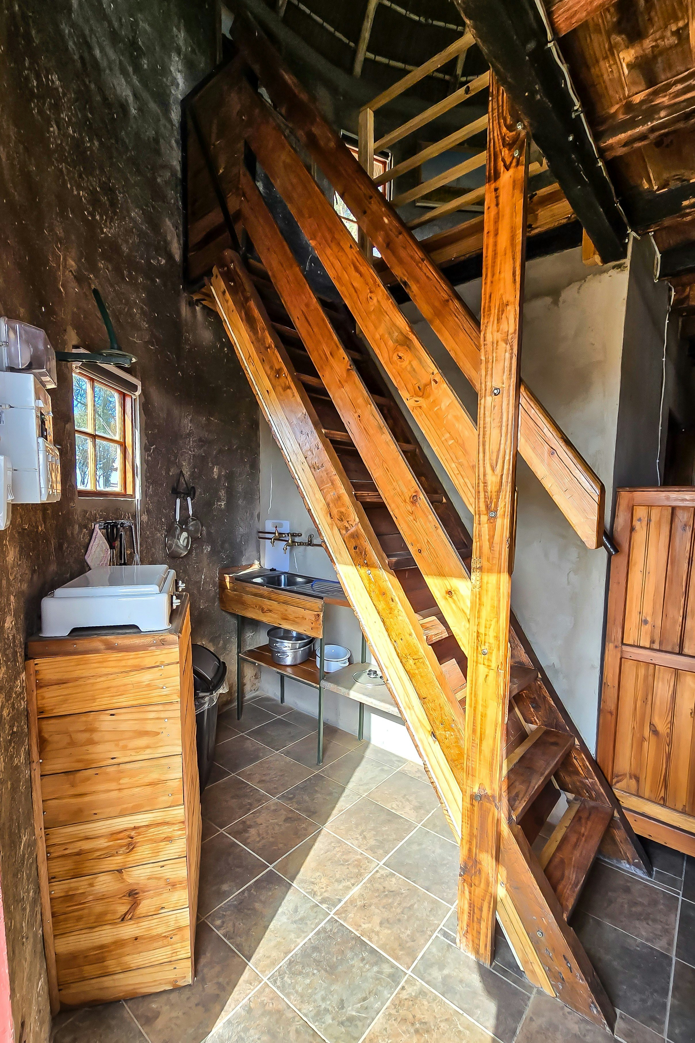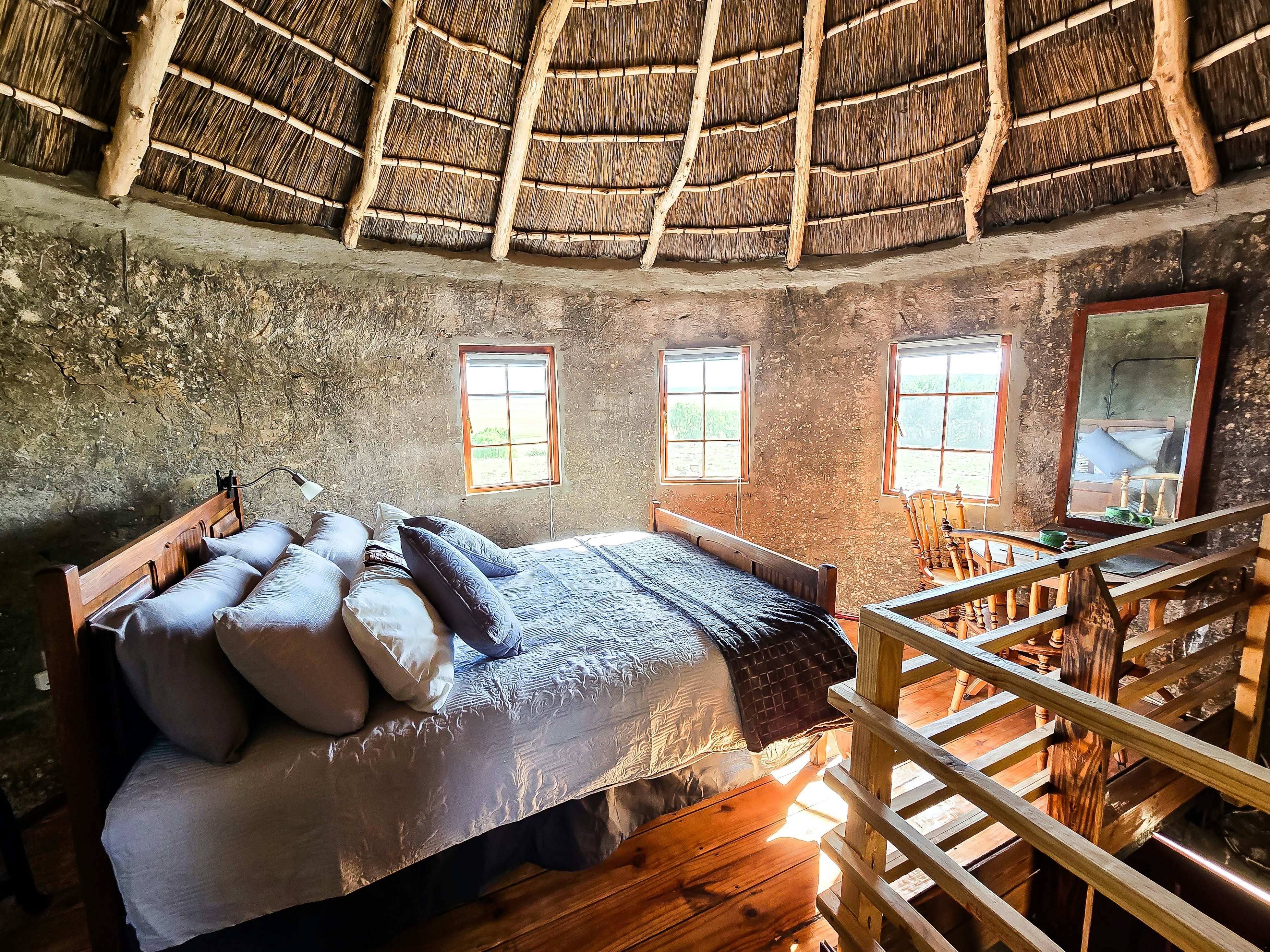 Hillbilly House is a self-catering 2-level silo located just 100 meters from the main property, providing accommodation for a couple. Goedehoop is a self-catering house built from the ruins of a nearly century-old dairy and storage complex. Sandstone was carefully split and shaped to reconstruct the building on the original foundations, combining historic charm with modern amenities.