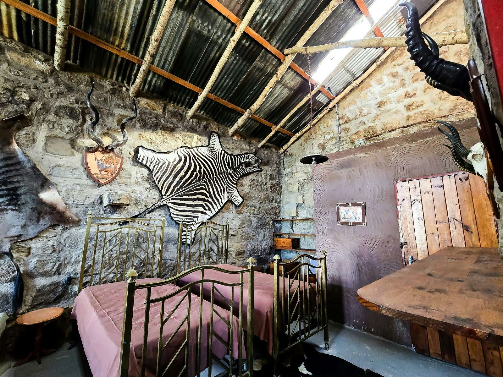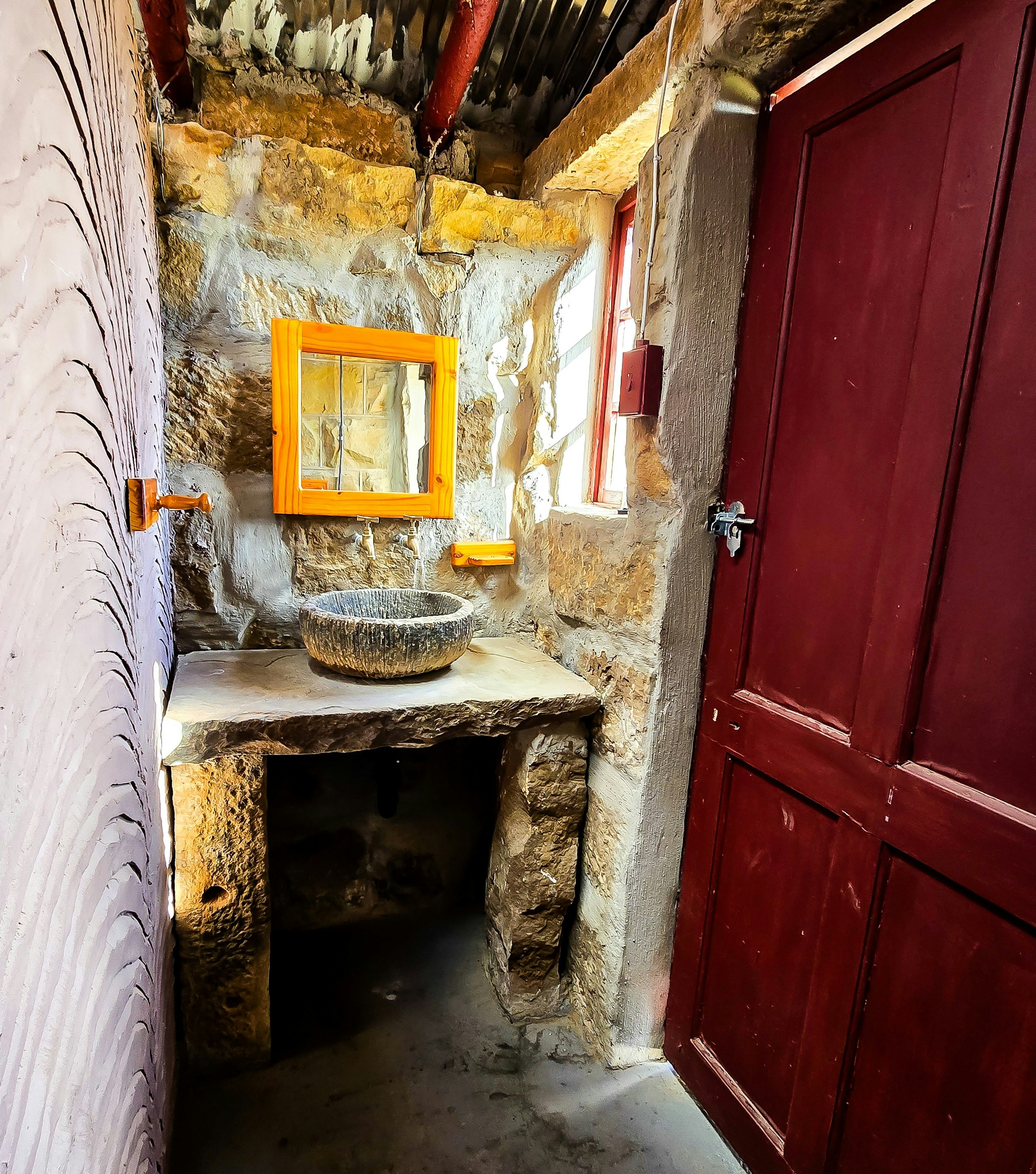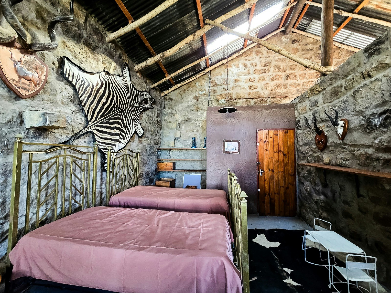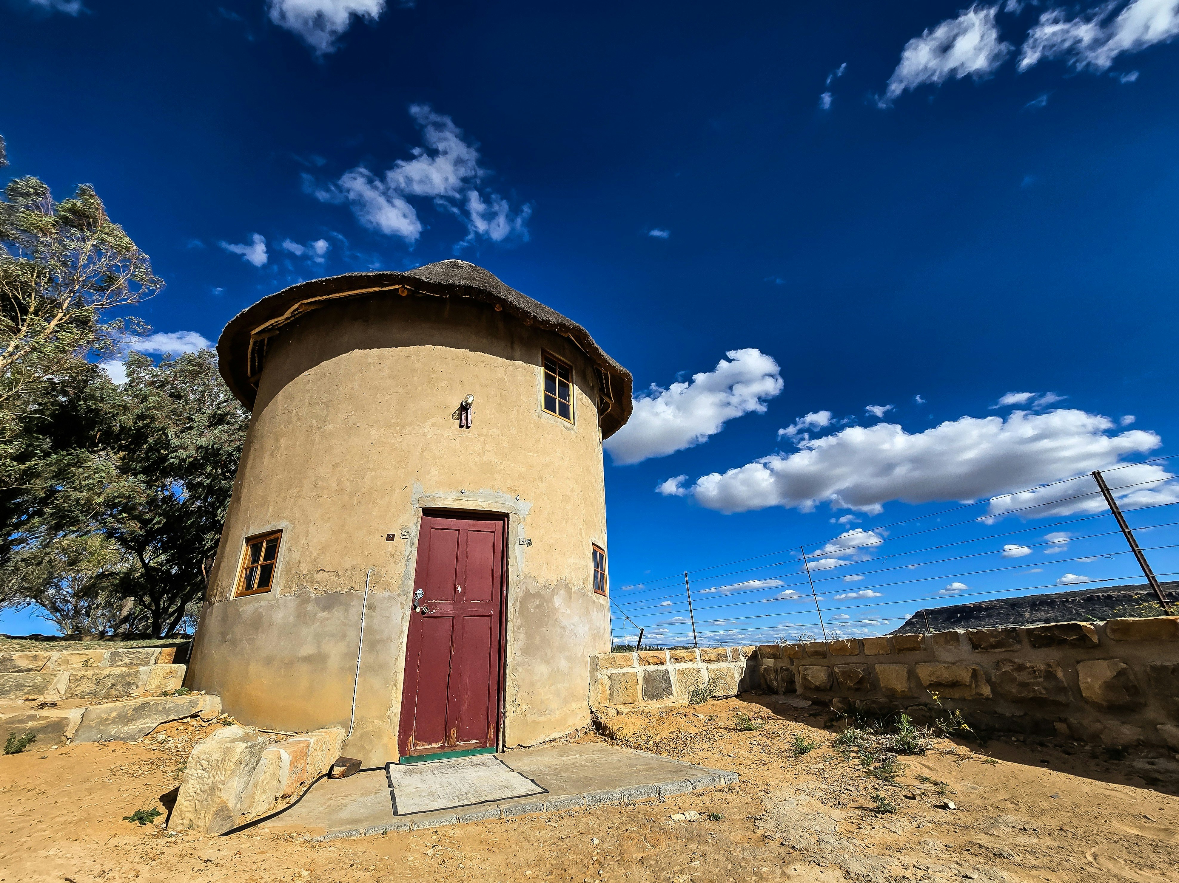 Hillbilly House is a self-catering 2-level silo located just 100 meters from the main property, providing accommodation for a couple. Goedehoop is a self-catering house built from the ruins of a nearly century-old dairy and storage complex. Sandstone was carefully split and shaped to reconstruct the building on the original foundations, combining historic charm with modern amenities.