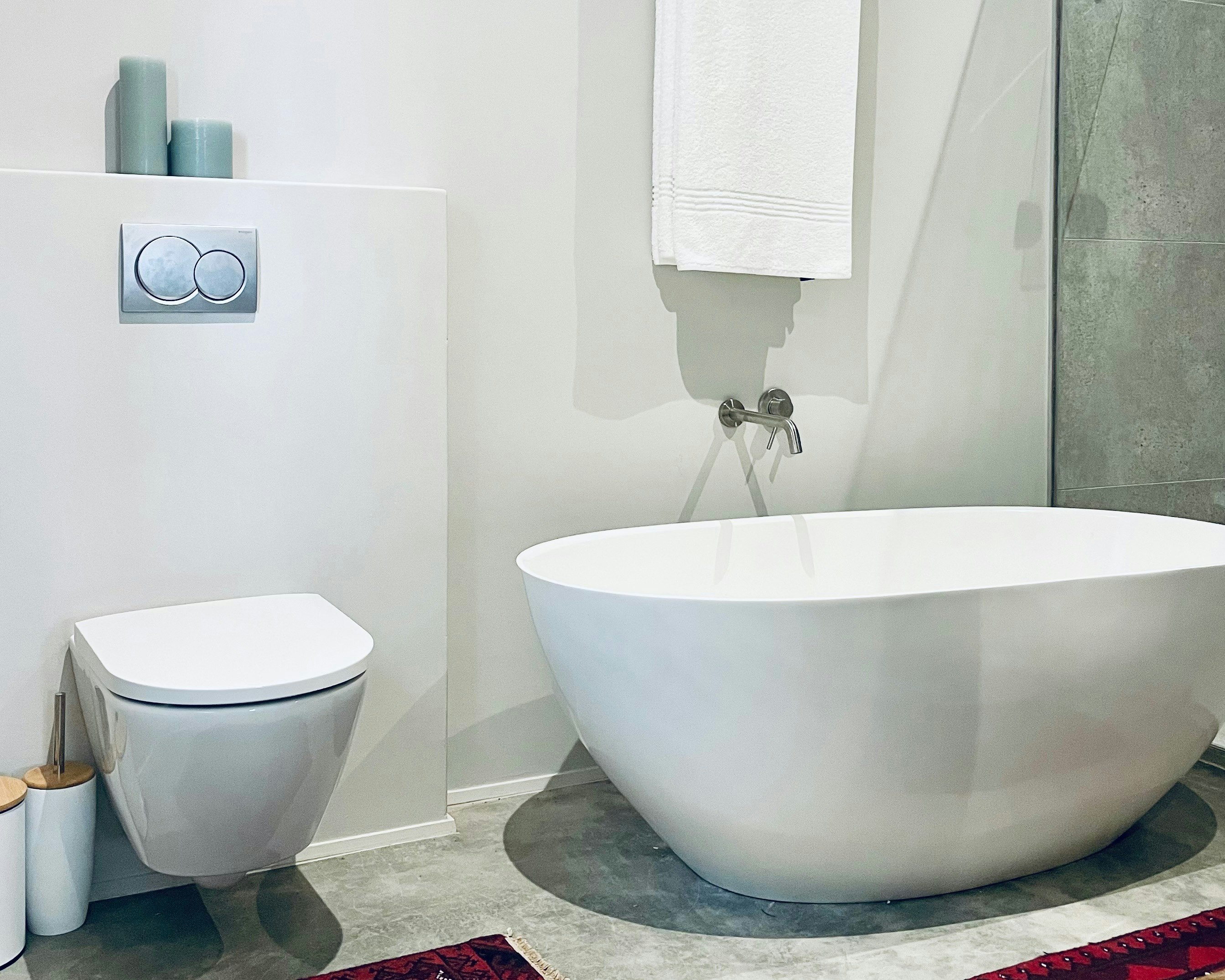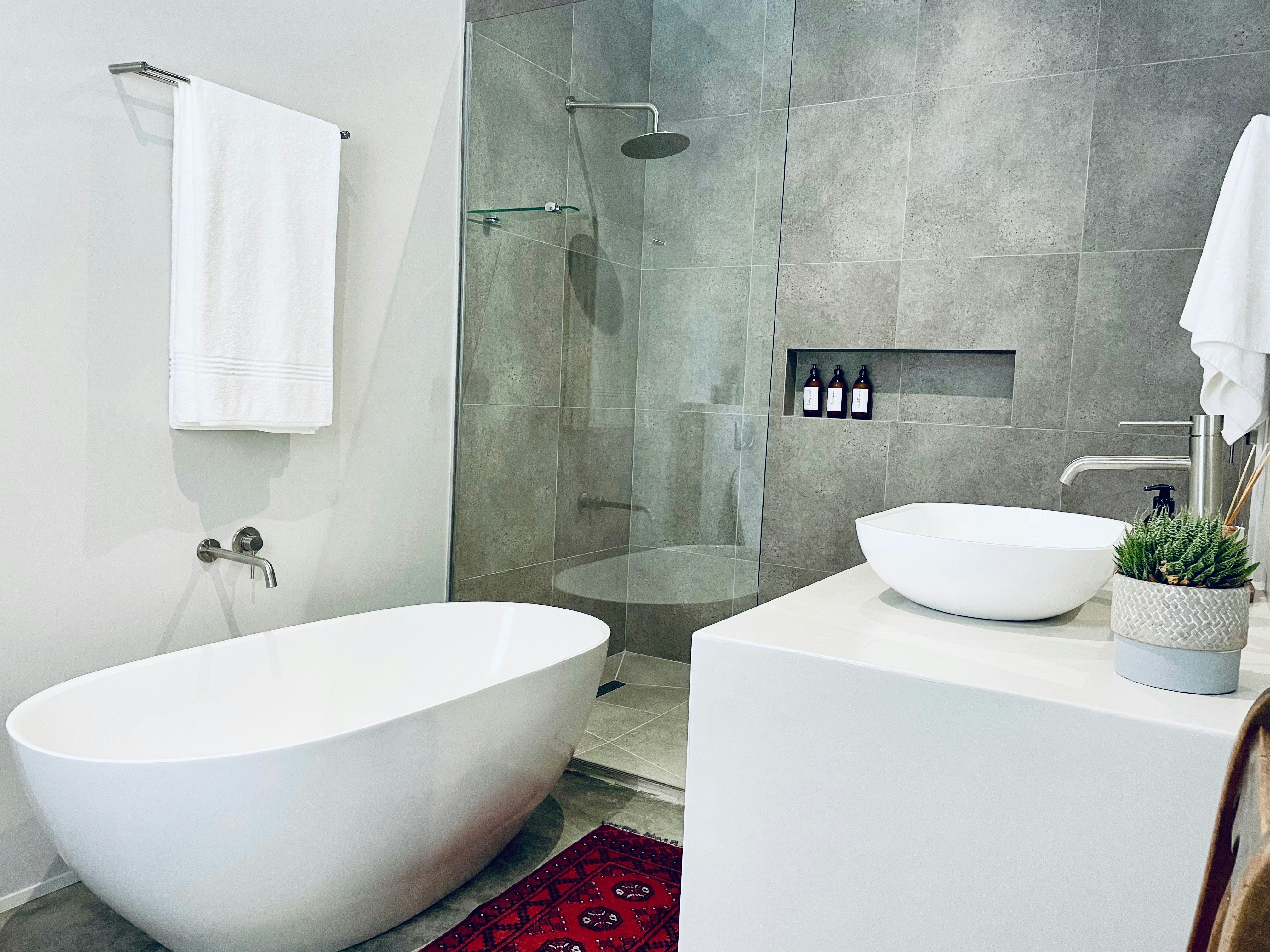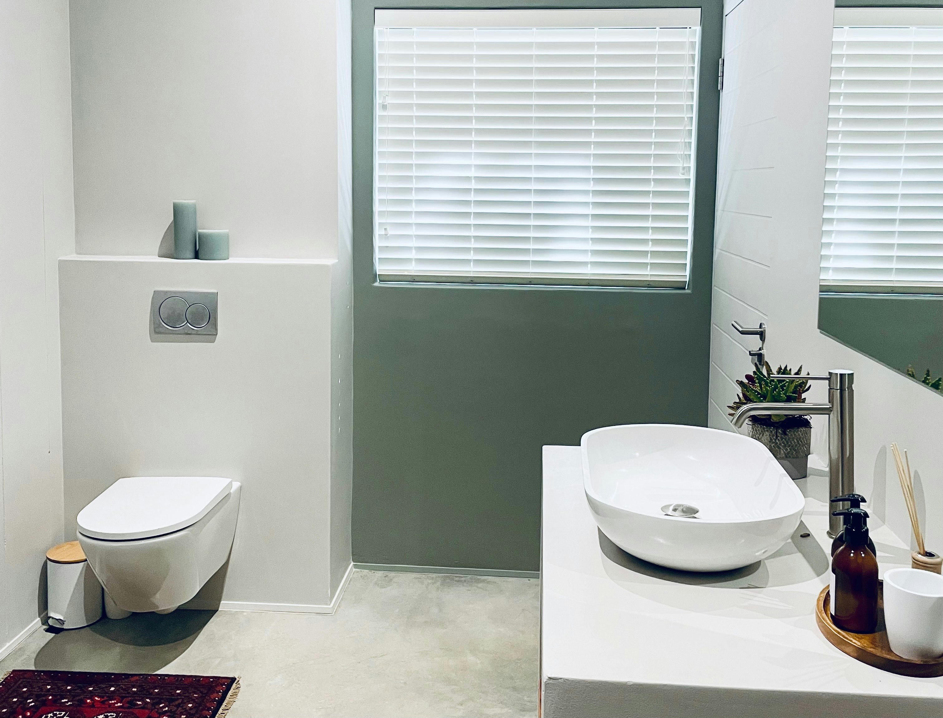 The house comprises 2 bedrooms and comfortably accommodates 4 guests at a time. The first bedroom has a king-size bed and an en-suite bathroom with a bath and shower. The second bedroom has 2 single beds and an en-suite bathroom with a shower. A guest toilet is available as well.