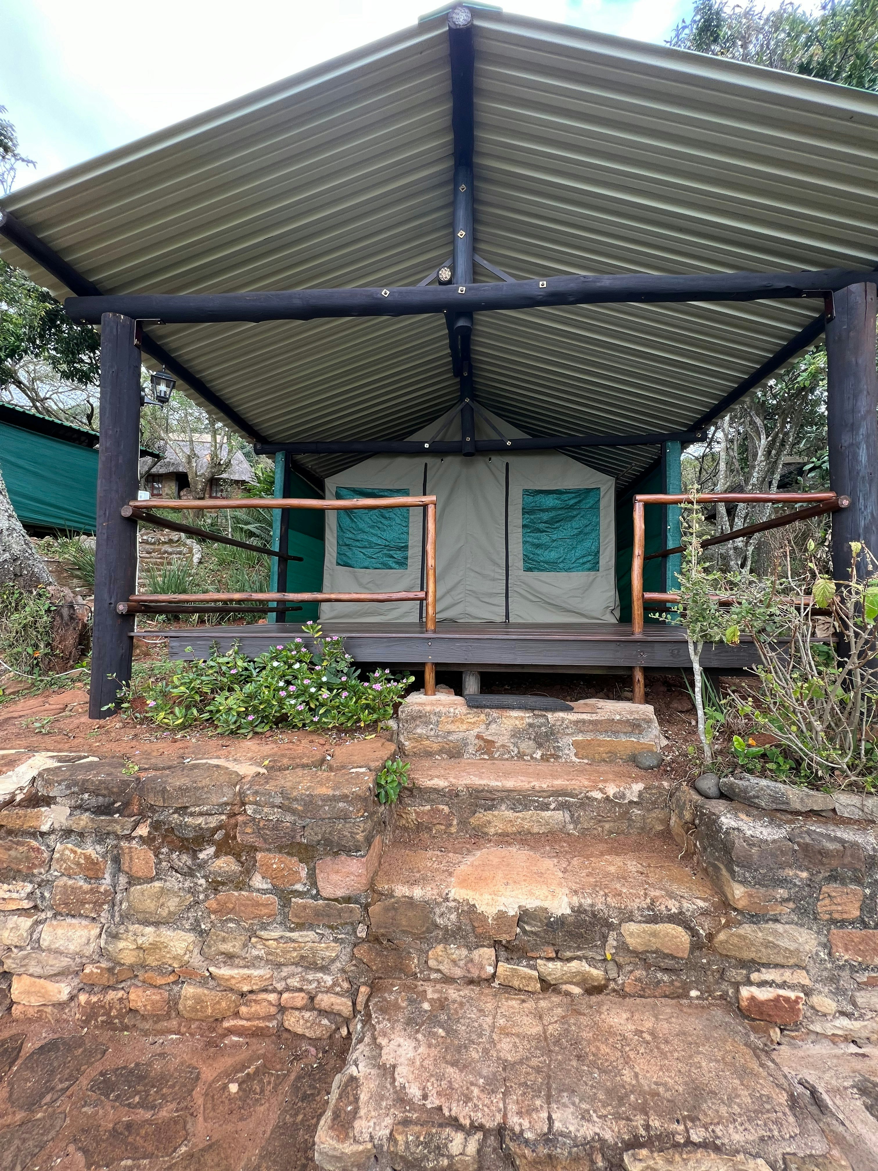 The authentic self-catering tented camp can accommodate up to 10 guests and comprises 5 tents that can each accommodate 2 guests and boast beautiful vistas over the Lebombo Foothills and Zululand Plains. Each tent is furnished with twin beds, a dressing table, ample cupboard space, and opens to a veranda with outdoor seating. They share the use of a separate ablution block fitted with a shower, basin, and toilet.