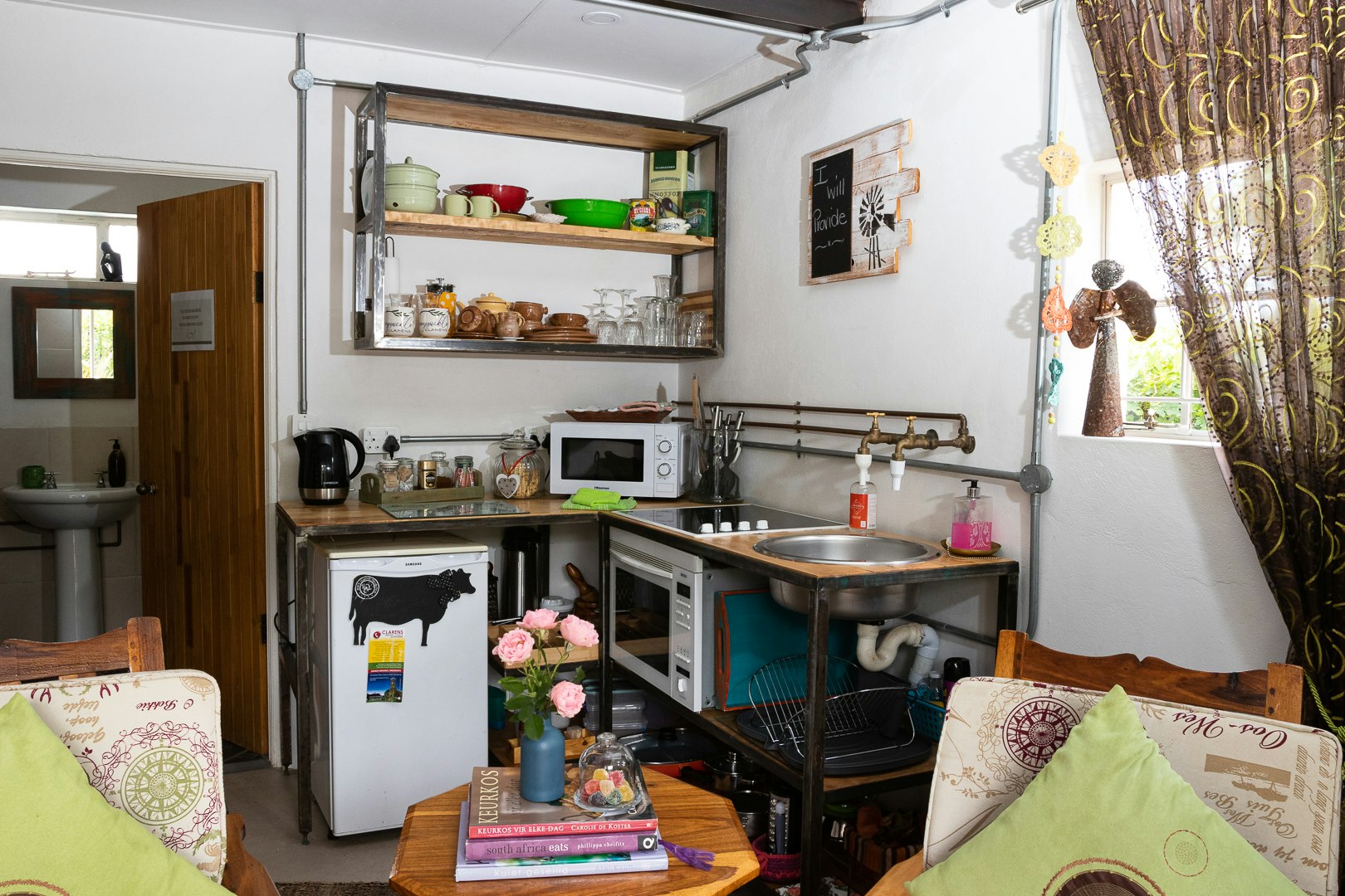 The Workshop is a self-catering unit with a rustic feel. This modern triple-storey unit has an open-plan living area, a fully-equipped kitchen and a bathroom with a large walk-in shower. The bedroom has a double bed and a beautiful mountain view.