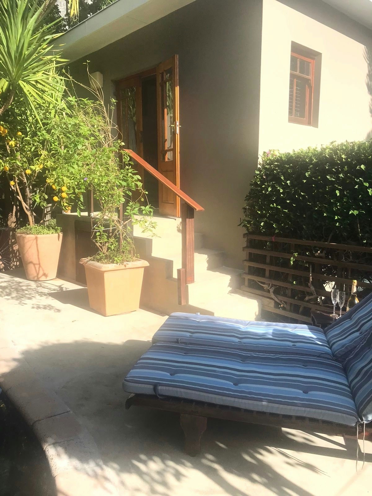 Unit 1 is the larger of the 2 units and features a spacious terrace with an 8-seater table and chairs, where guests can enjoy a gas braai and enjoy views of Lion's Head. Behind unit 1, lies the swimming pool, which guests are welcome to make use of. Unit 2 features a private courtyard with a portable braai facility, and stairs leading to the swimming pool.