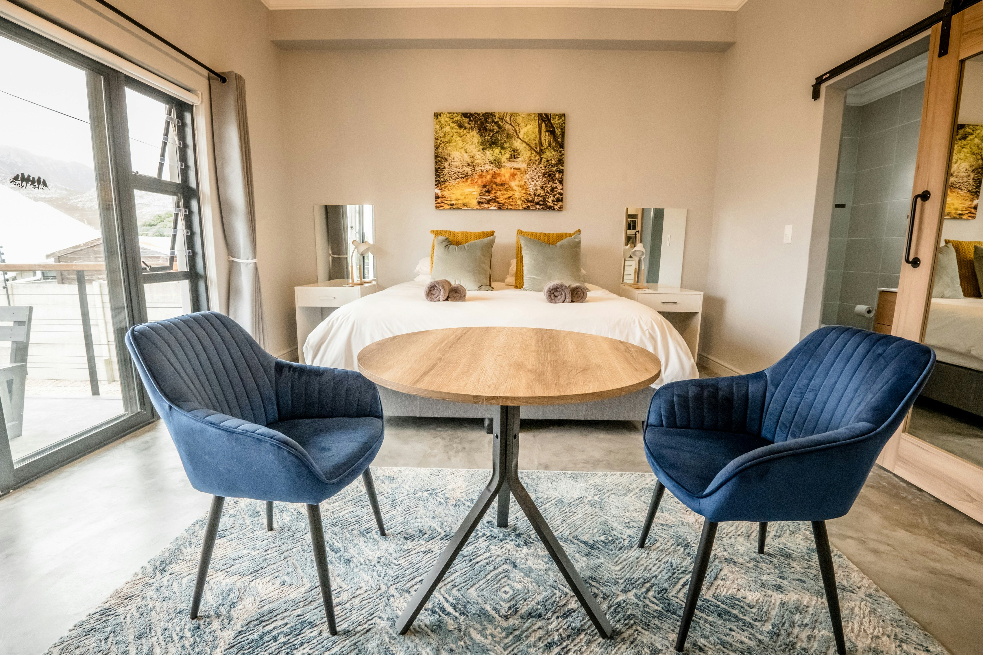 Each unit accommodates 2 guests with a king-size bed (convertible to 2 single beds on request) and features an en-suite bathroom with a shower, toilet, and basin. Guests can also enjoy beautiful mountain views from the property. For peace of mind, the premises are secured with a 24-hour electric fence designed to keep baboons out. Feeding wildlife is strictly prohibited. Secure parking is available on-site, right in front of the house.