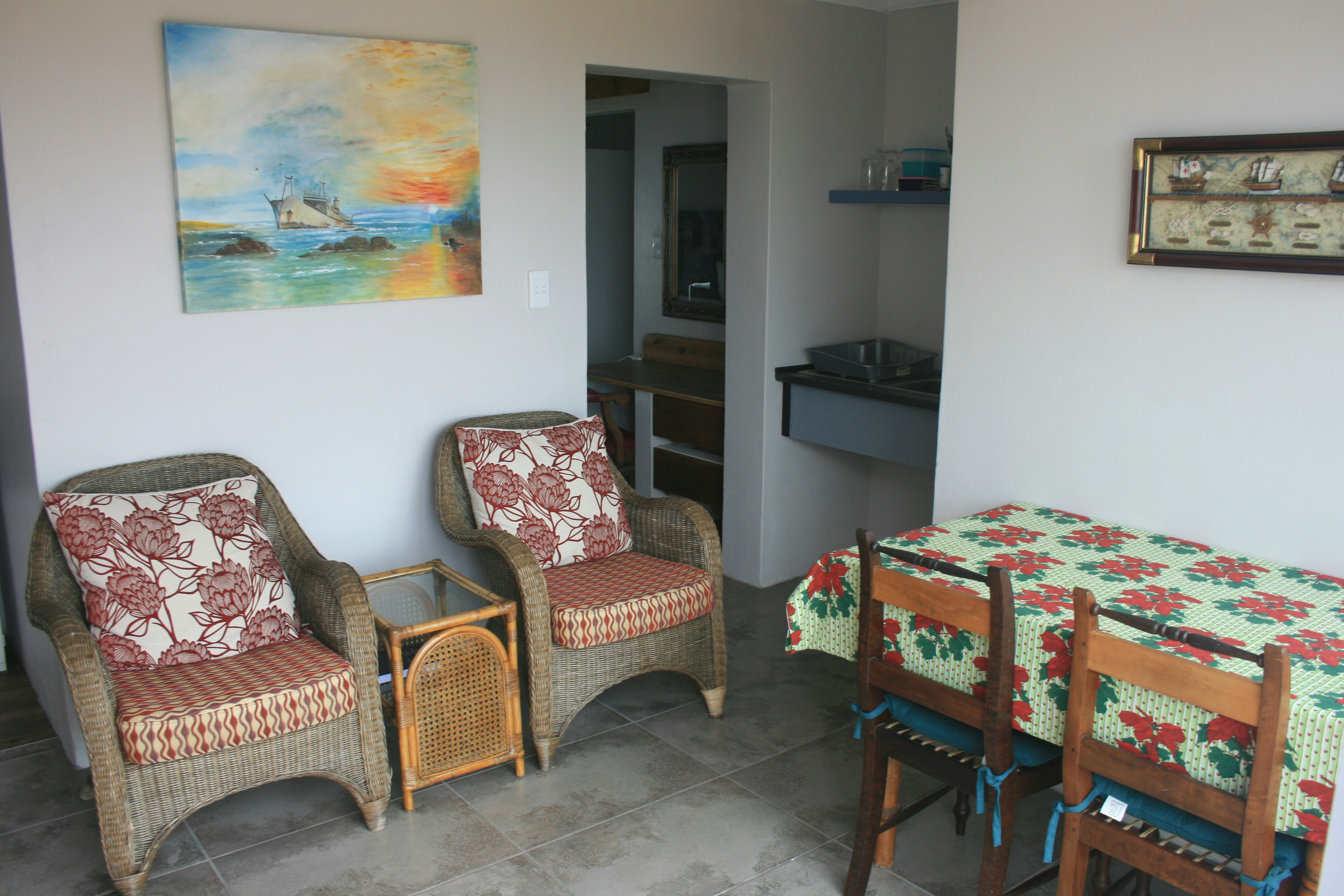 Guests have their own kitchenette which is equipped with a bar fridge, microwave, cutlery and crockery as well as tea- and coffee-making facilities. Through the sliding doors, there is a lovely patio where guests can enjoy some fresh air while admiring the stunning ocean views. Braai facilities are in front of the patio.