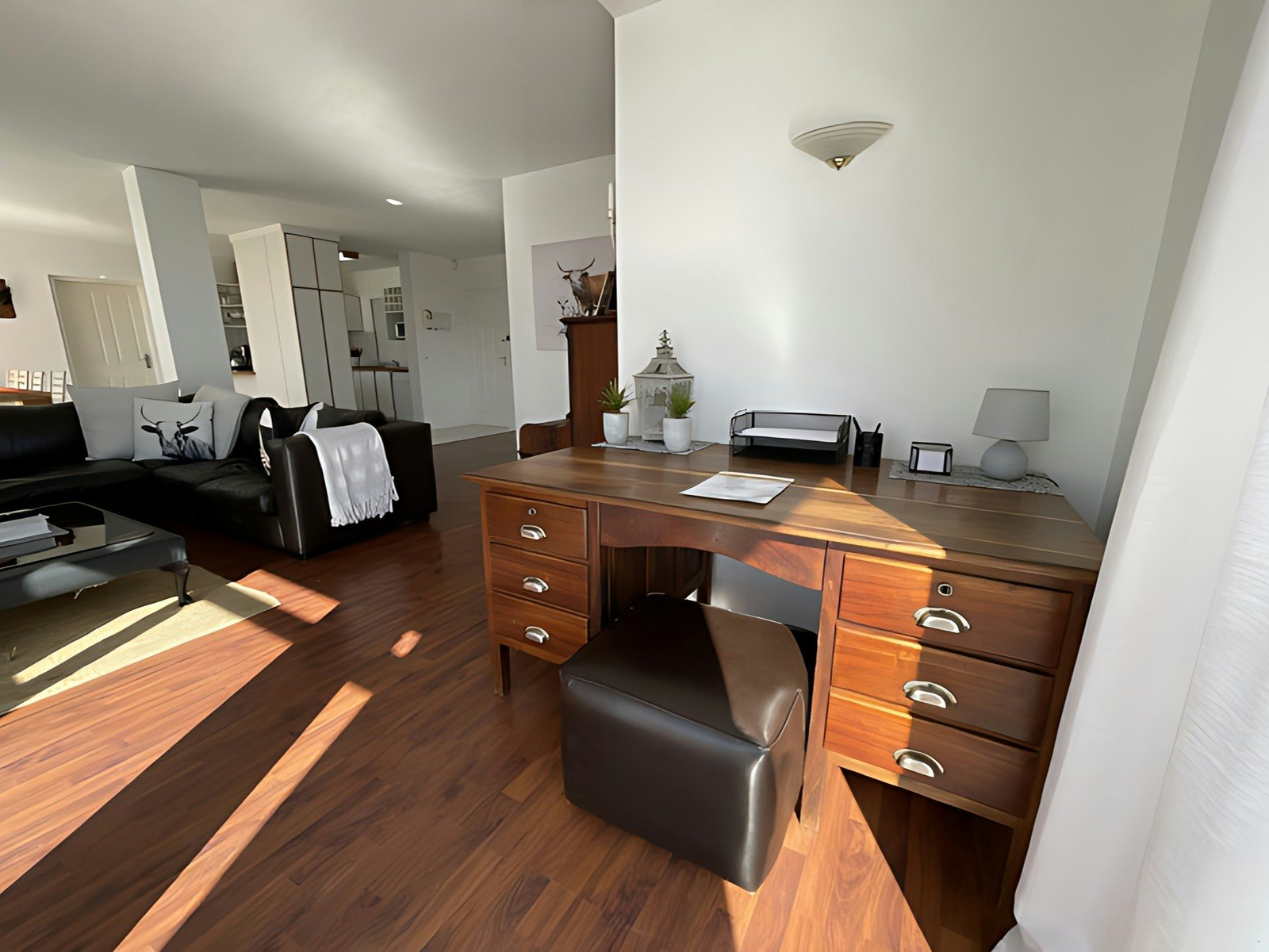 Die kombuis is met 'n yskas-vrieskas, stoof, oond, mikrogolfoond, skottelgoedwasser, eetgerei, breekware en tee- en koffiemaakgeriewe toegerus. Die oopplan-leefarea het 'n groot gemaklike rusbank, 'n TV, lugversorging, 'n lessenaar, klavier en 'n etenstafel. WiFi is ook beskikbaar.