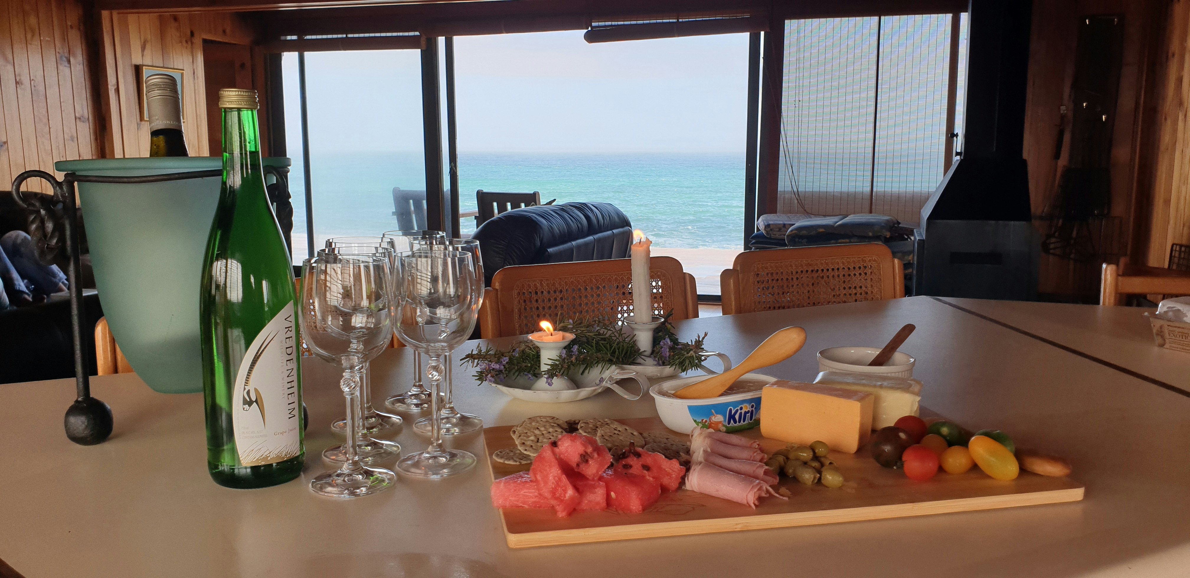 Die kombuis is toegerus met 'n yskas-vrieskas, stoof, oond, mikrogolf, eetgerei, breekware en tee- en koffiemaakgeriewe, en beskik oor 'n wasmasjien en tuimeldroër vir gaste se gerief. Dit strek tot by die eetarea waar gaste hul maaltye kan geniet. Die aangrensende sitkamer is ingerig met gemaklike sitplek en beskik oor 'n knus kaggel. Komplimentêr is beskikbaar.
