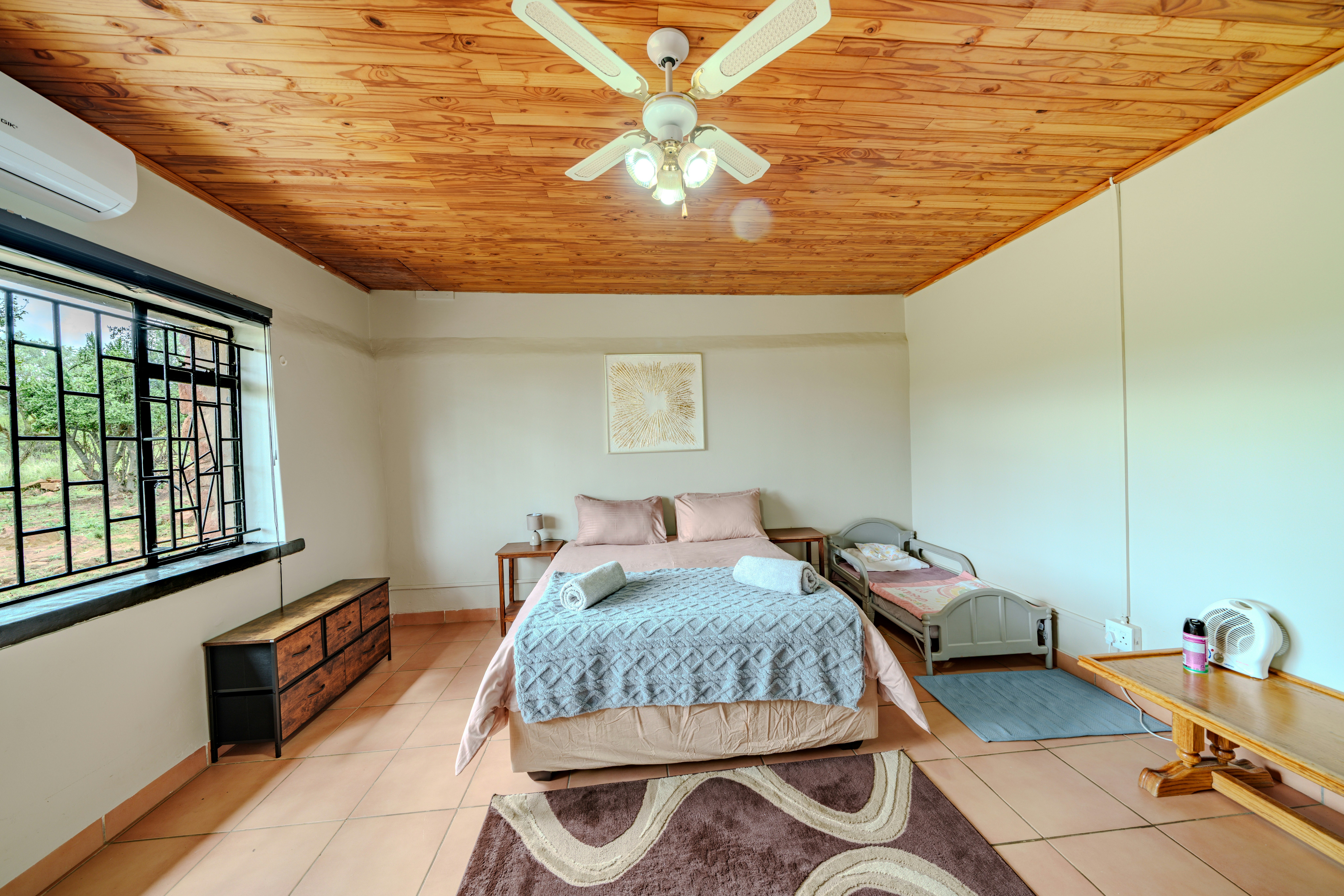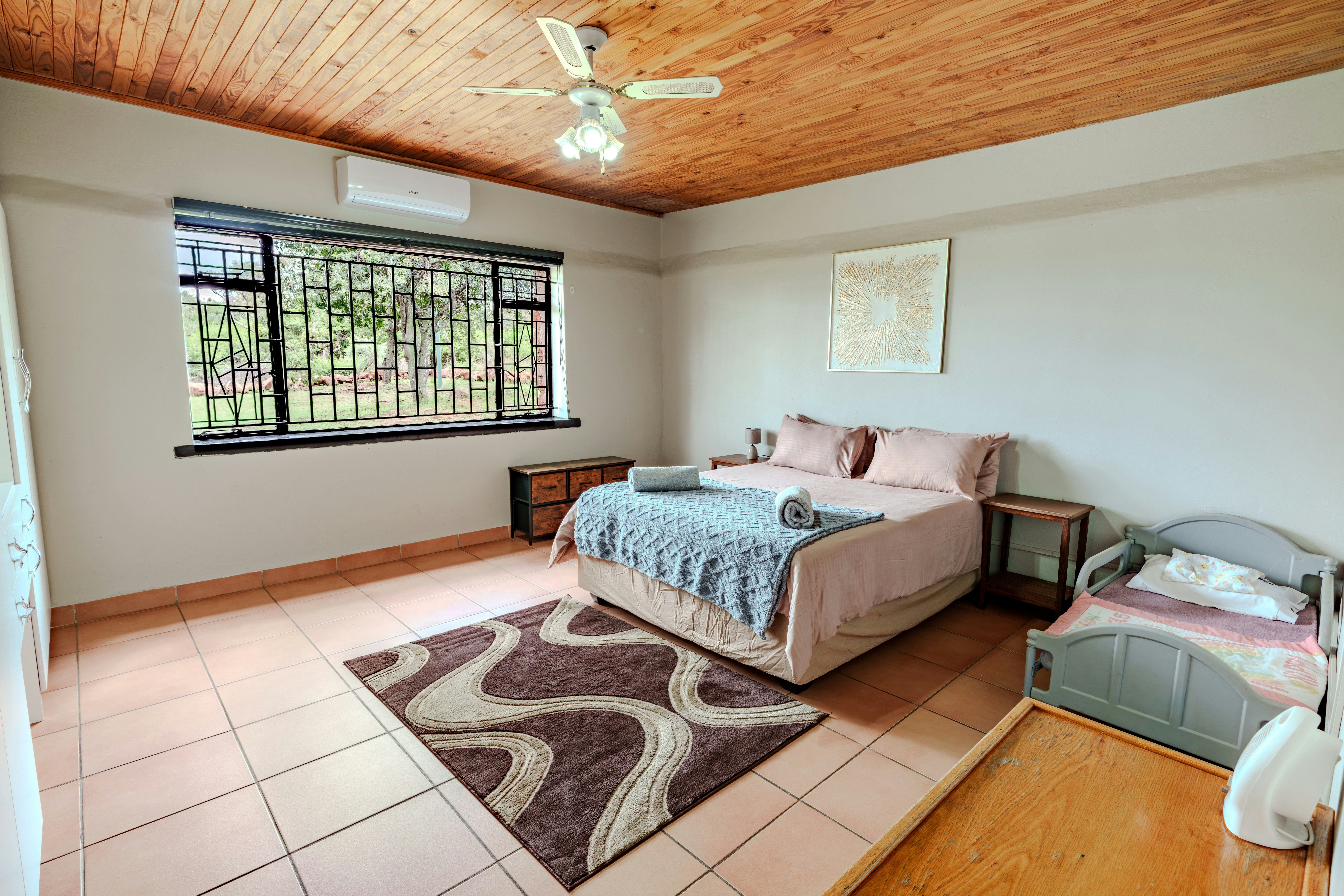 Nature lovers can explore the Dinokeng Game Reserve, home to the Big Five, just a short drive away. For golf enthusiasts, Cullinan Golf Club and Pebble Rock Golf Village are located within 32 km of the ranch. Other nearby activities include quad biking, hiking, bird-watching, and guided bush walks.