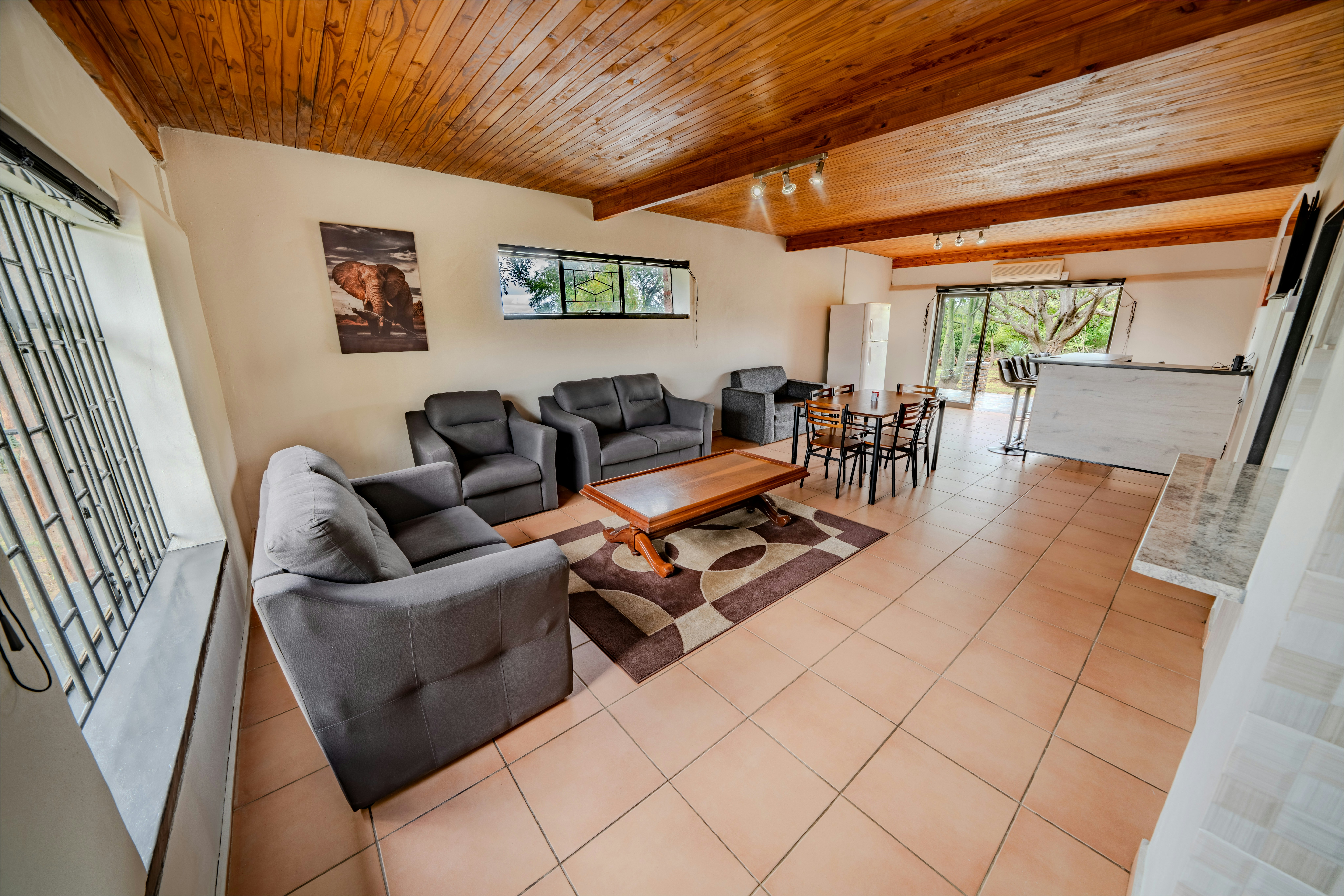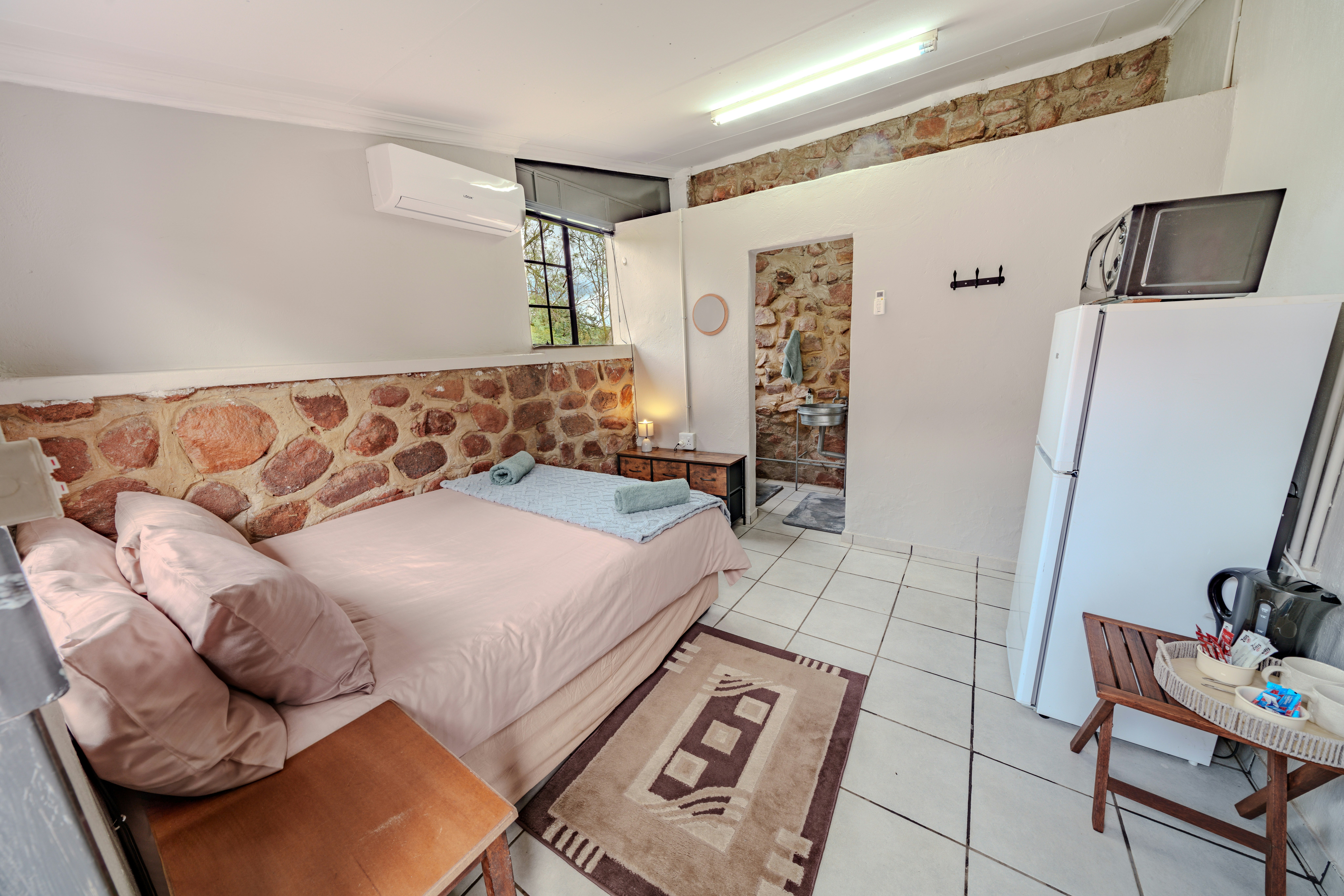 The first option is The Kwartel House, a standalone home, while Kiewiet consists of three separate chalets in one area, perfect for a vacation that provides both comfort and privacy. Each chalet includes a private, small, basic kitchenette. Additionally, guests staying in the chalets have access to Kiewiet’s shared lounge, kitchen, and entertainment area, located adjacent to the chalets.